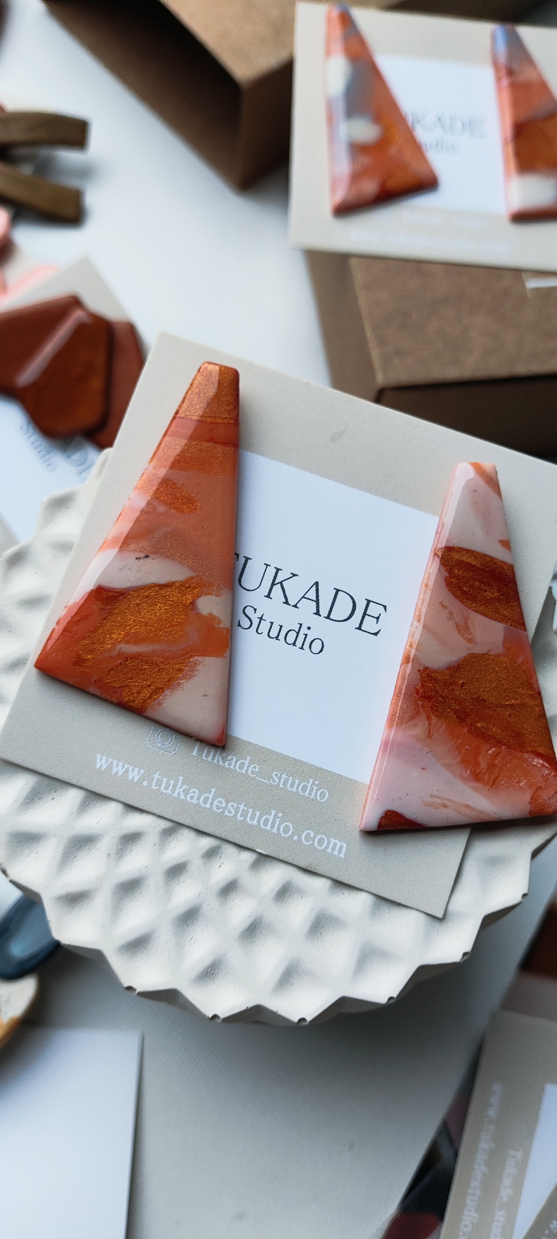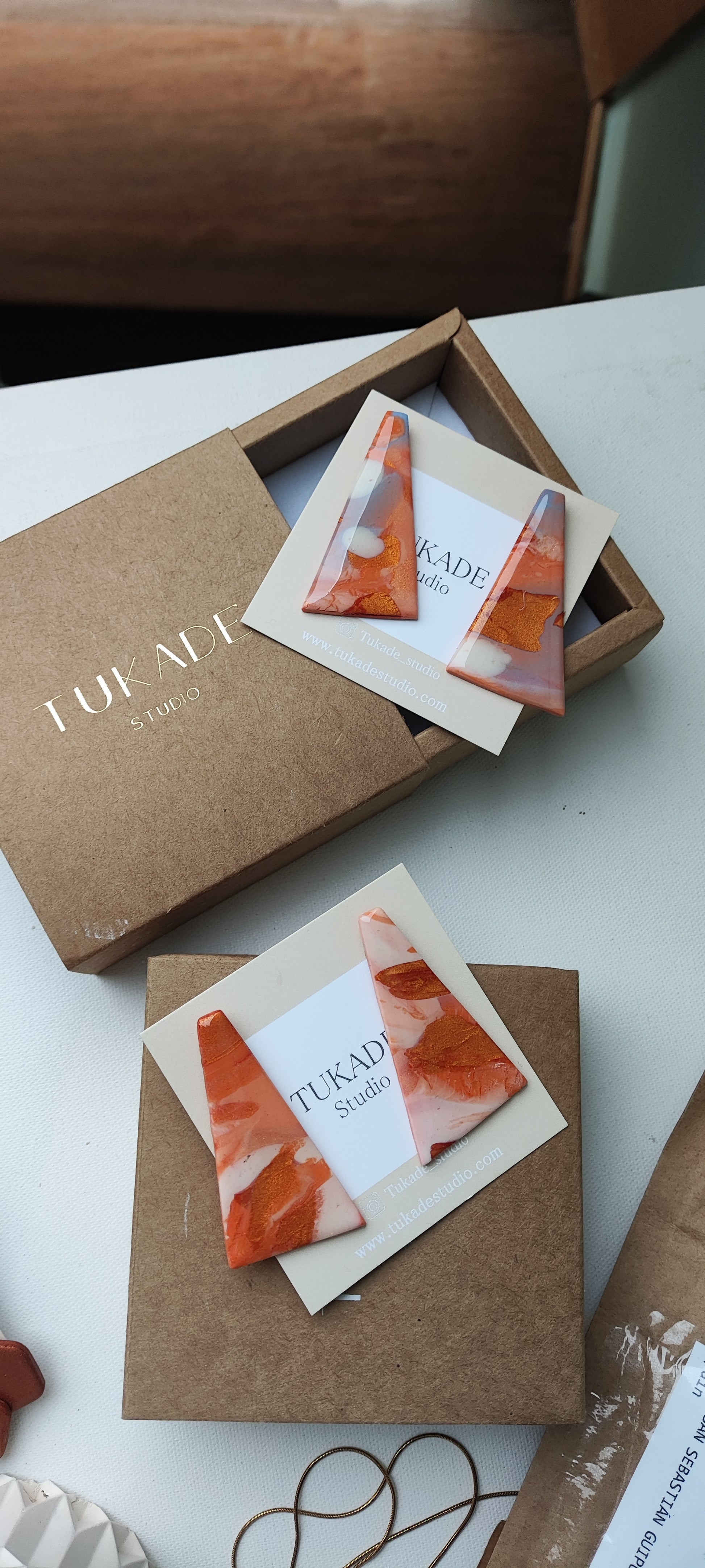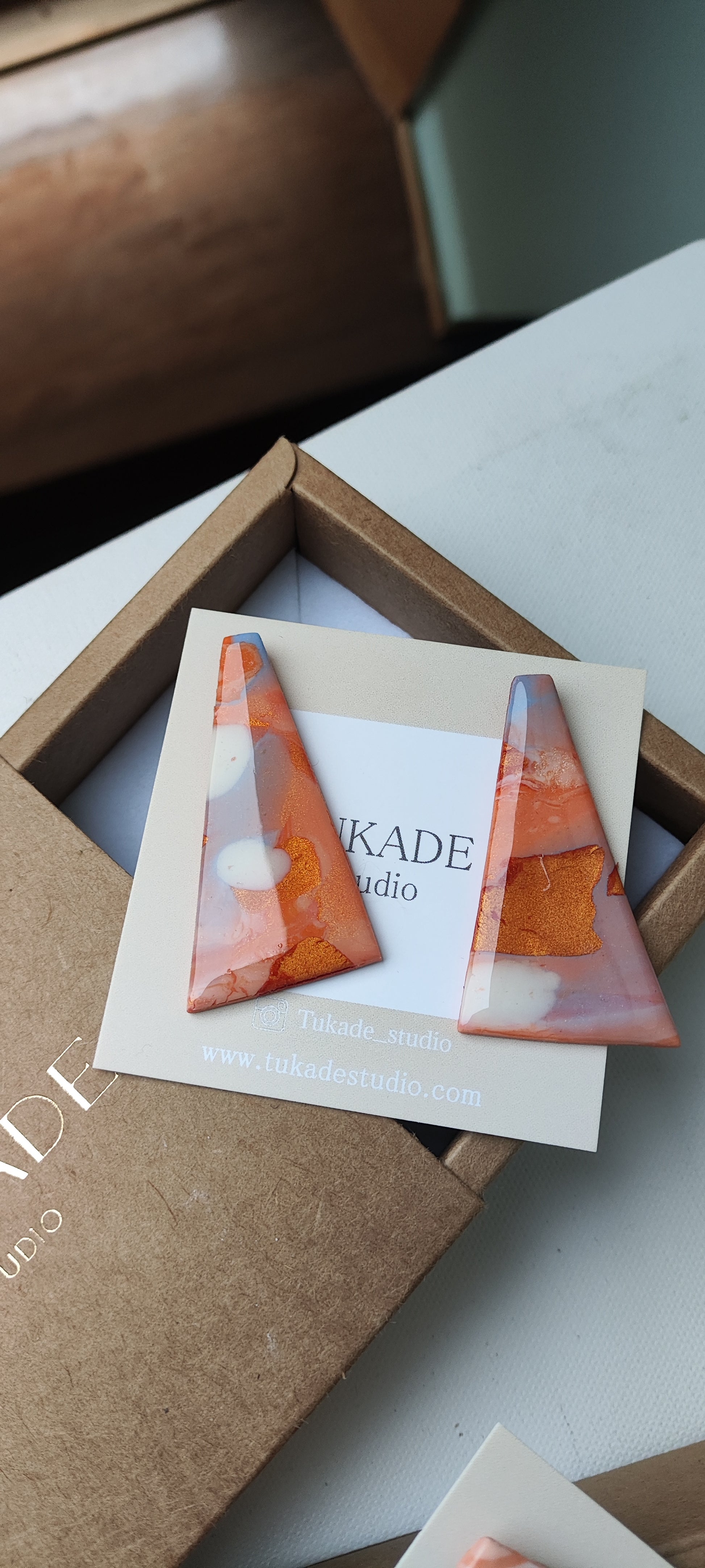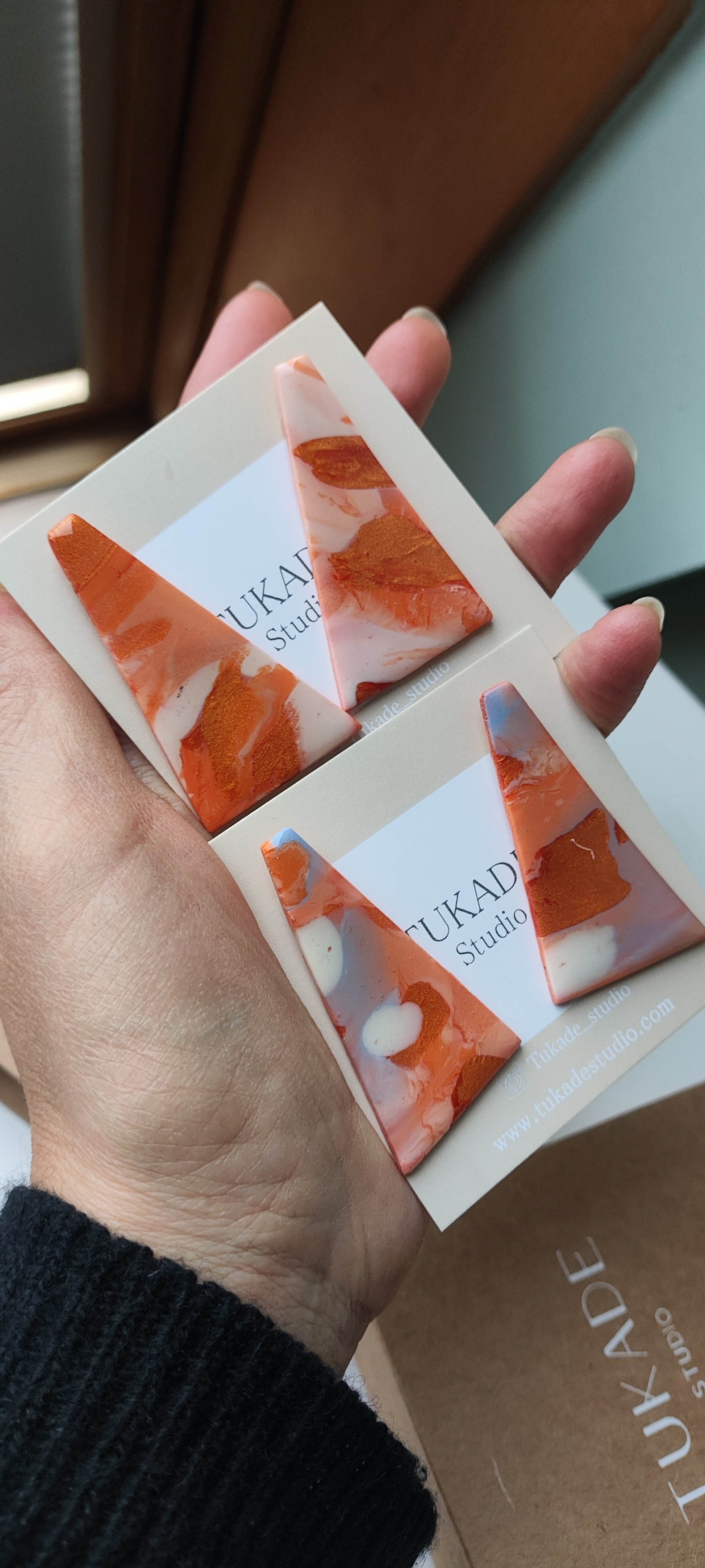 Pendientes minimalistas CANDIDA en forma geométrica irregular, mezcla de colores y acabado brillo en resina. Cada par es único e irrepetible.