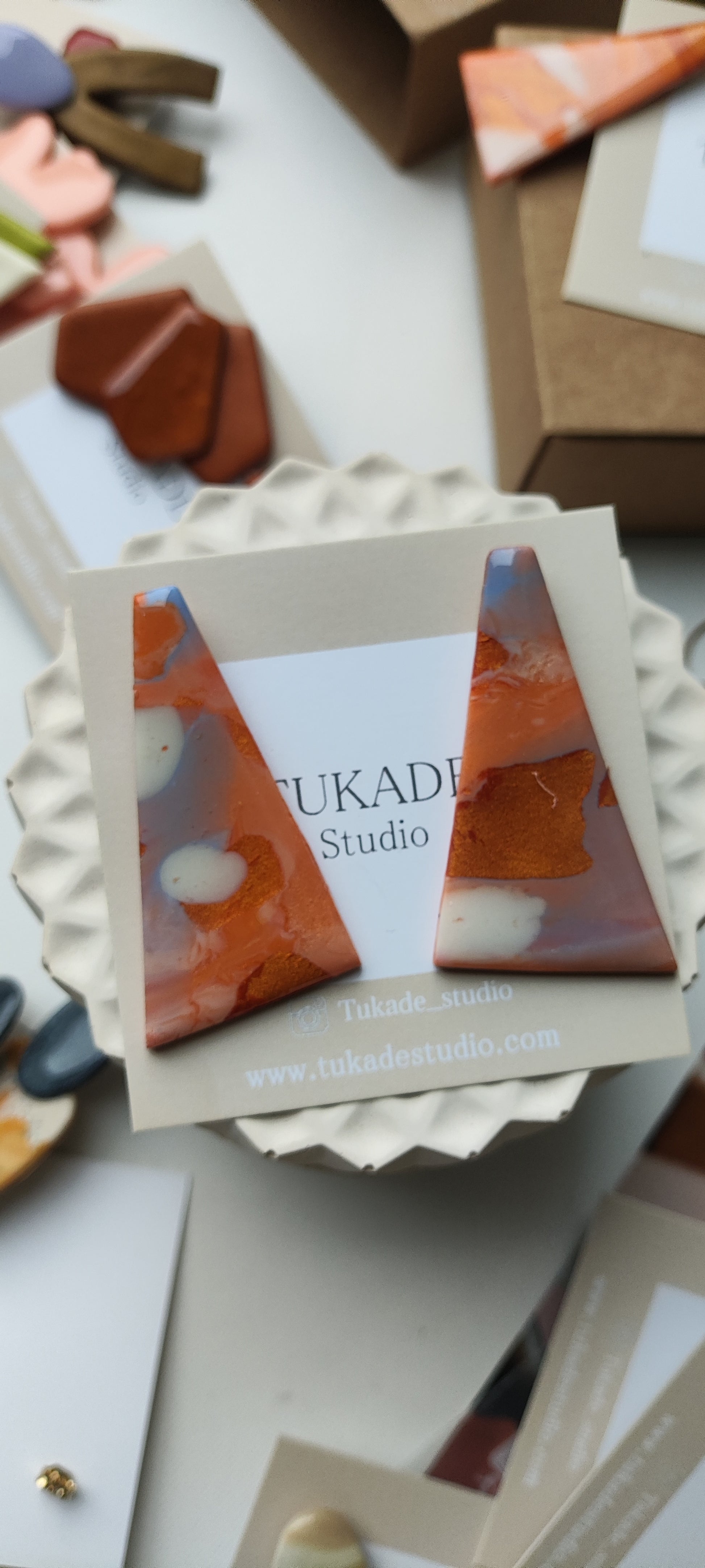 Cada par de pendientes está realizado a mano con mucho cuidado y cariño, con todo su proceso desde el modelado, corte, varios horneados, lijado y pulido.