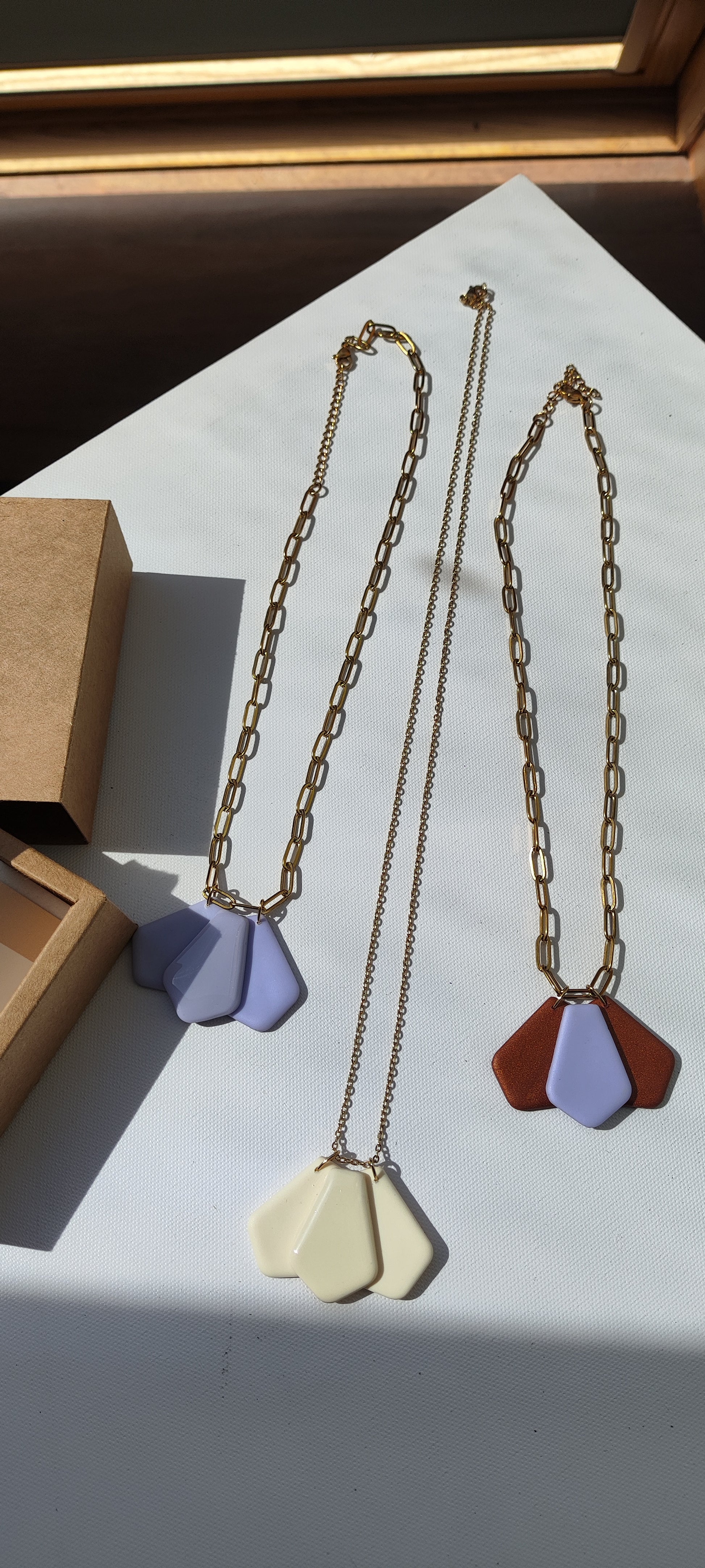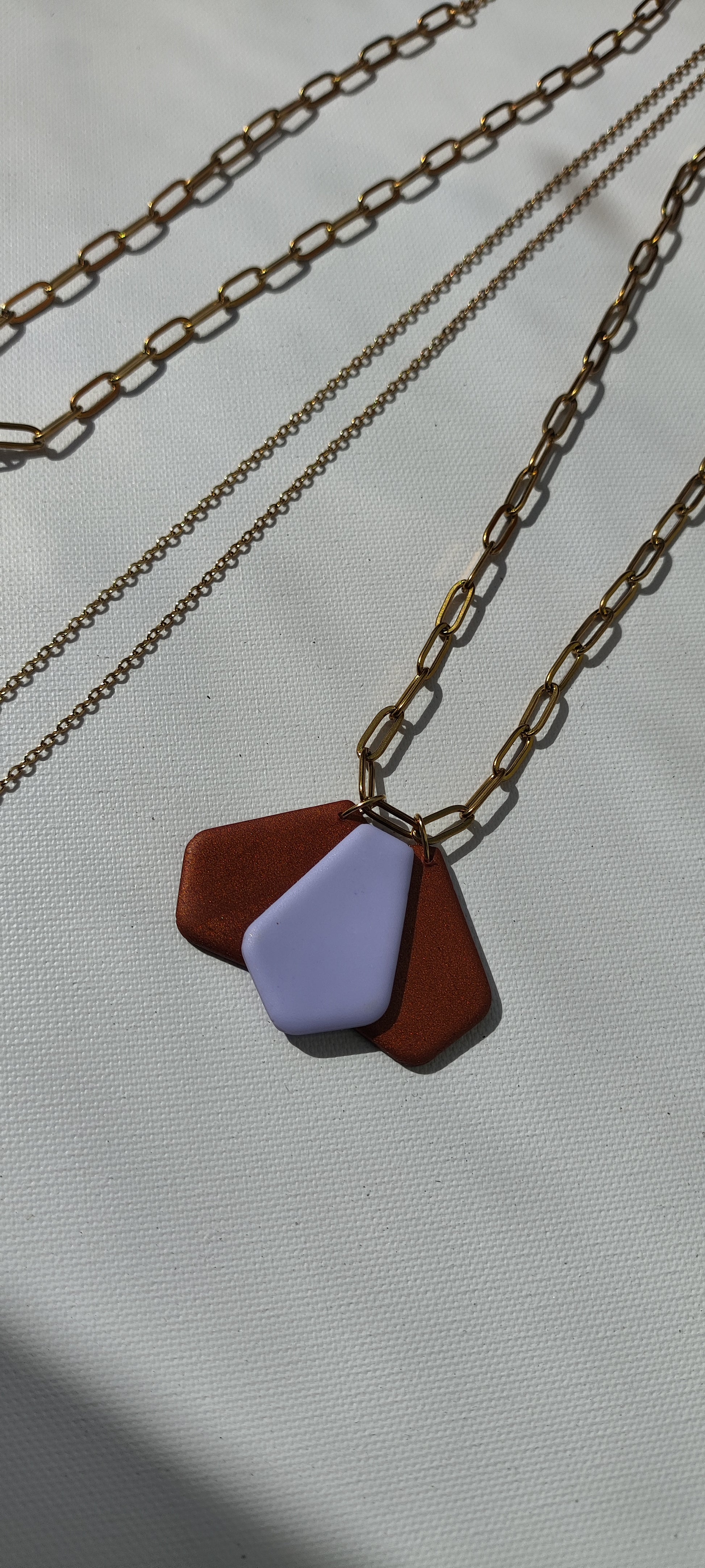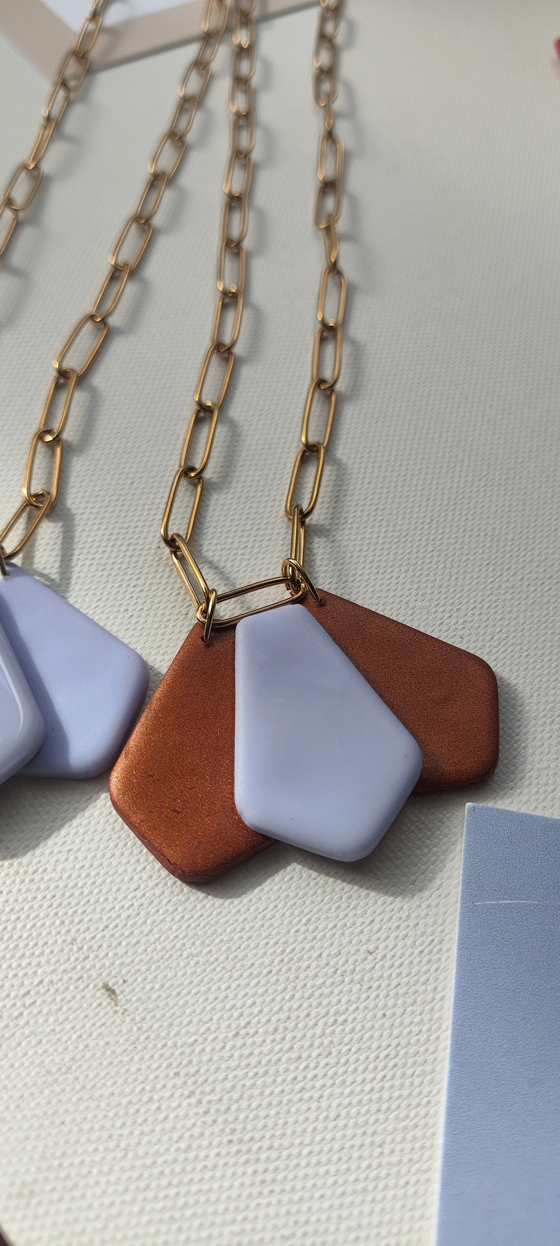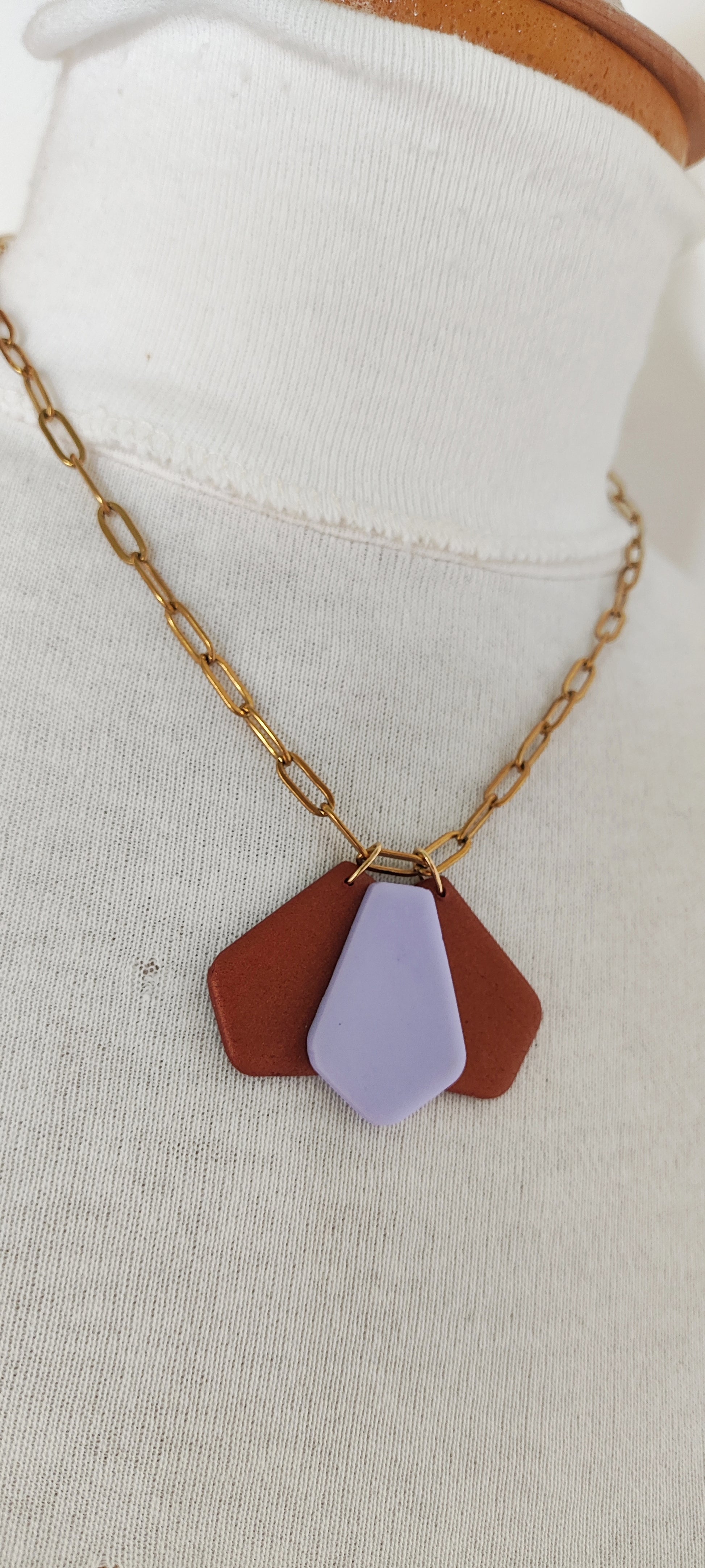 Collar-gargantilla con cadena ajustable de eslabones de acero inoxidable con baño de oro y maxi colgante Tukade MATILDA realizado en arcilla polimérica.