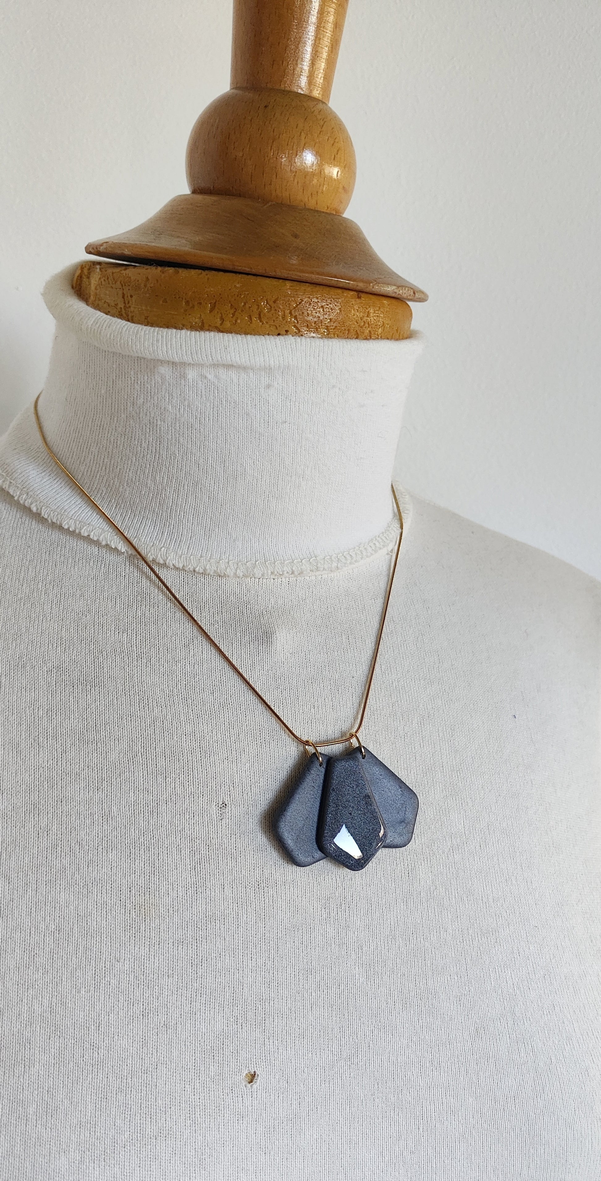 Collar-gargantilla con cadena ajustable fina tipo rulo de acero inoxidable con baño de oro y maxi colgante Tukade MATILDA realizado en arcilla polimérica y con el pétalo superior acabado en brillo resina.