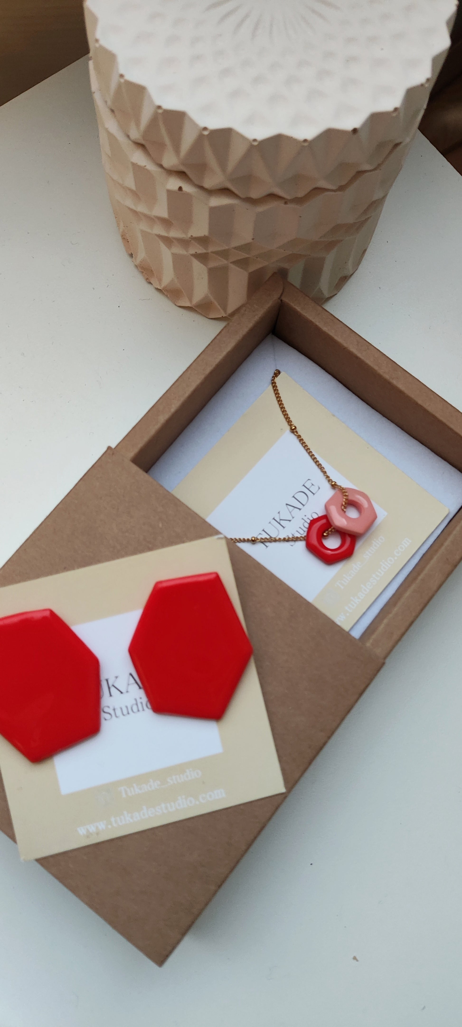 Cada par de pendientes está realizado a mano con mucho cuidado y cariño, con todo su proceso desde el modelado, corte, varios horneados, lijado y pulido.