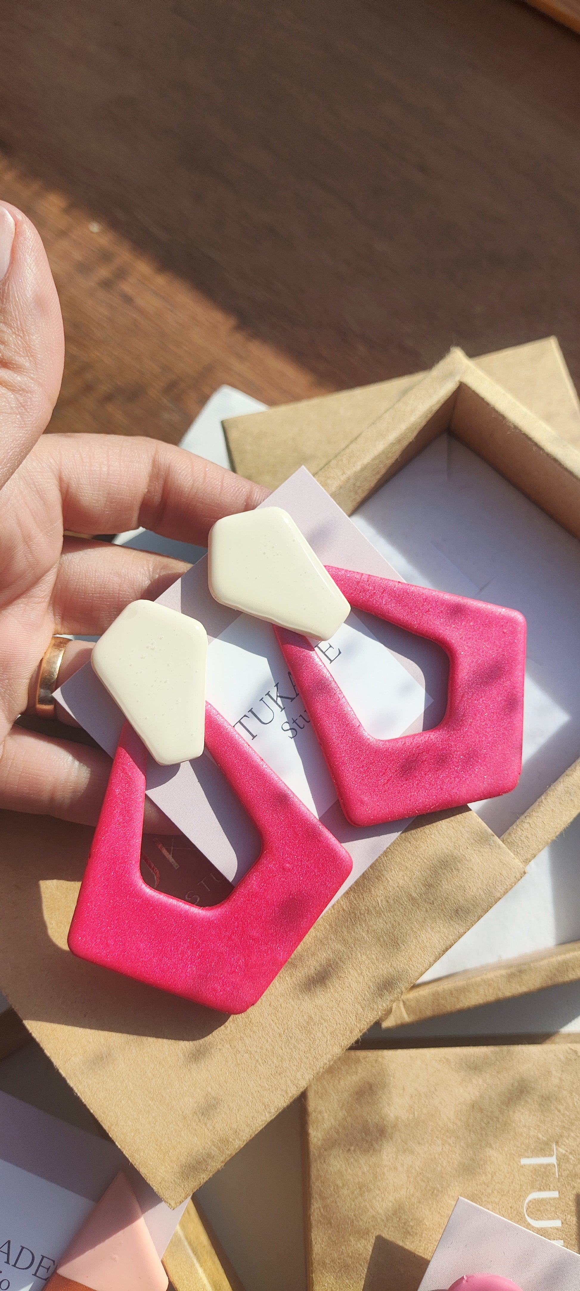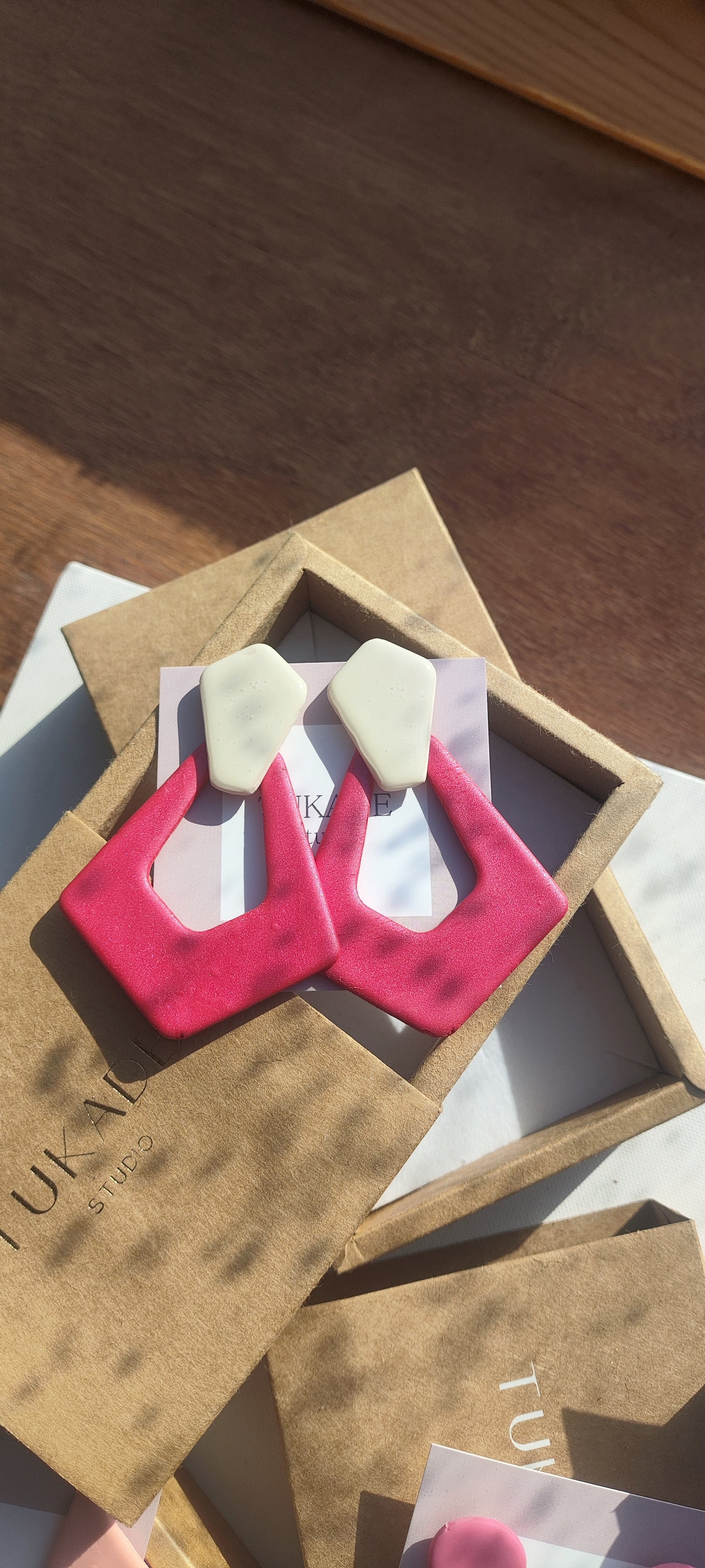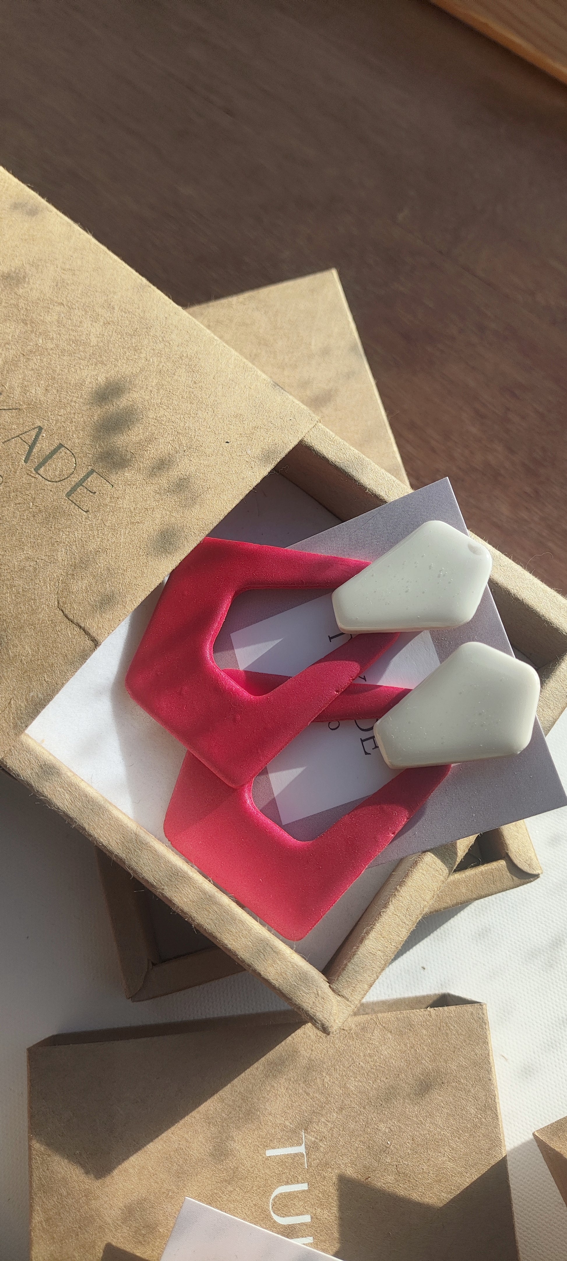 Cada par de pendientes está realizado a mano con mucho cuidado y cariño, con todo su proceso desde el modelado, corte, varios horneados, lijado y pulido.