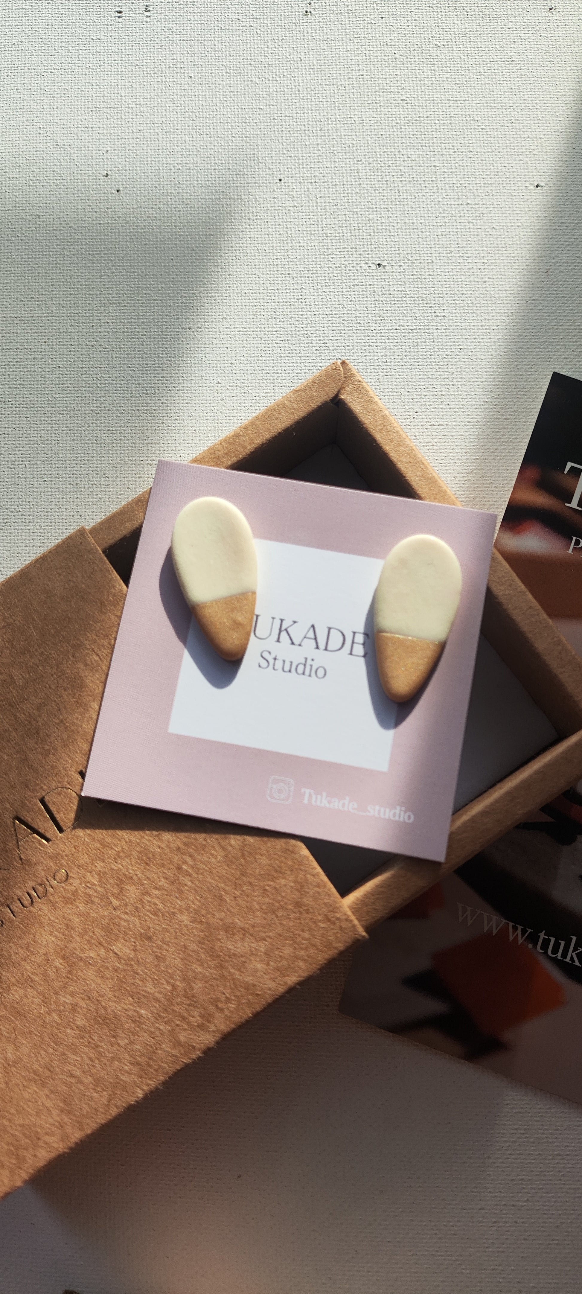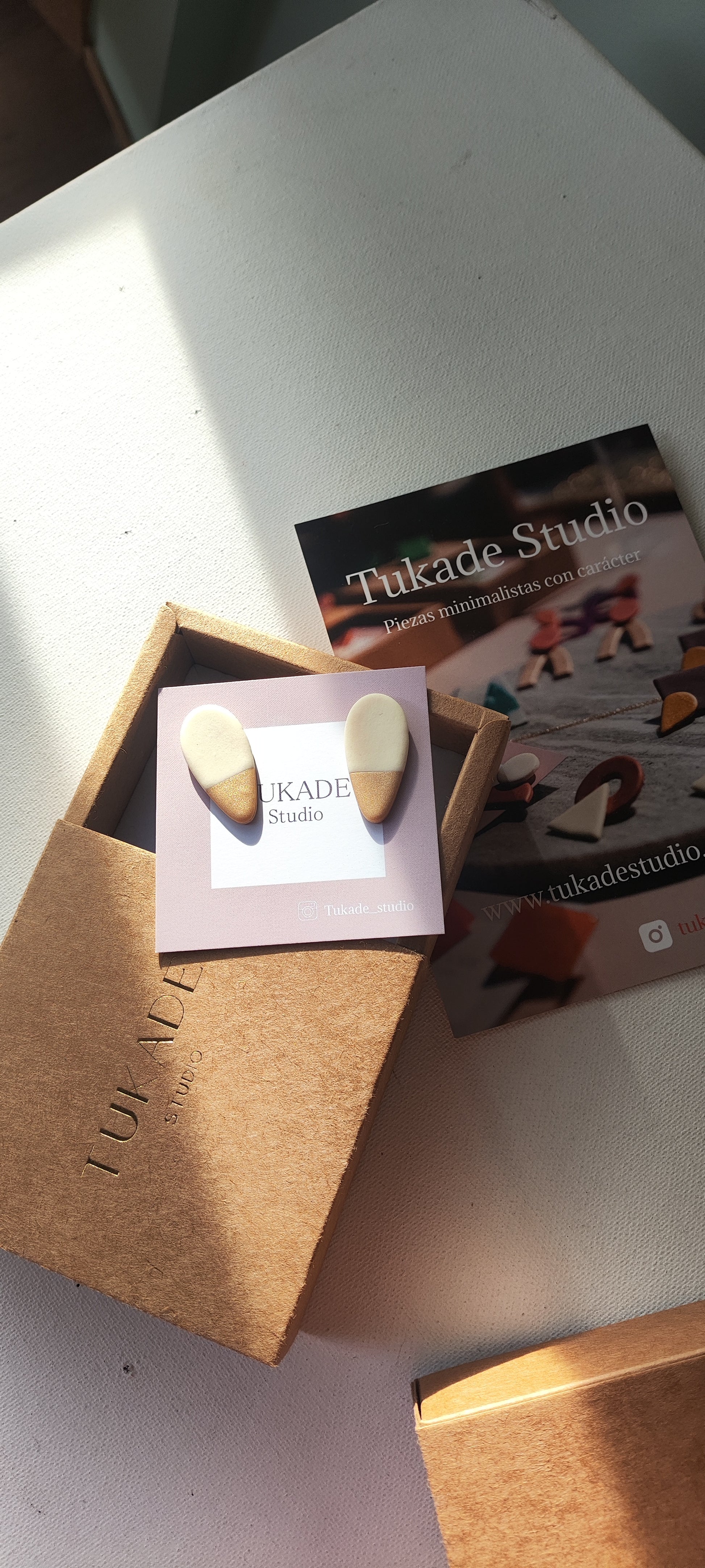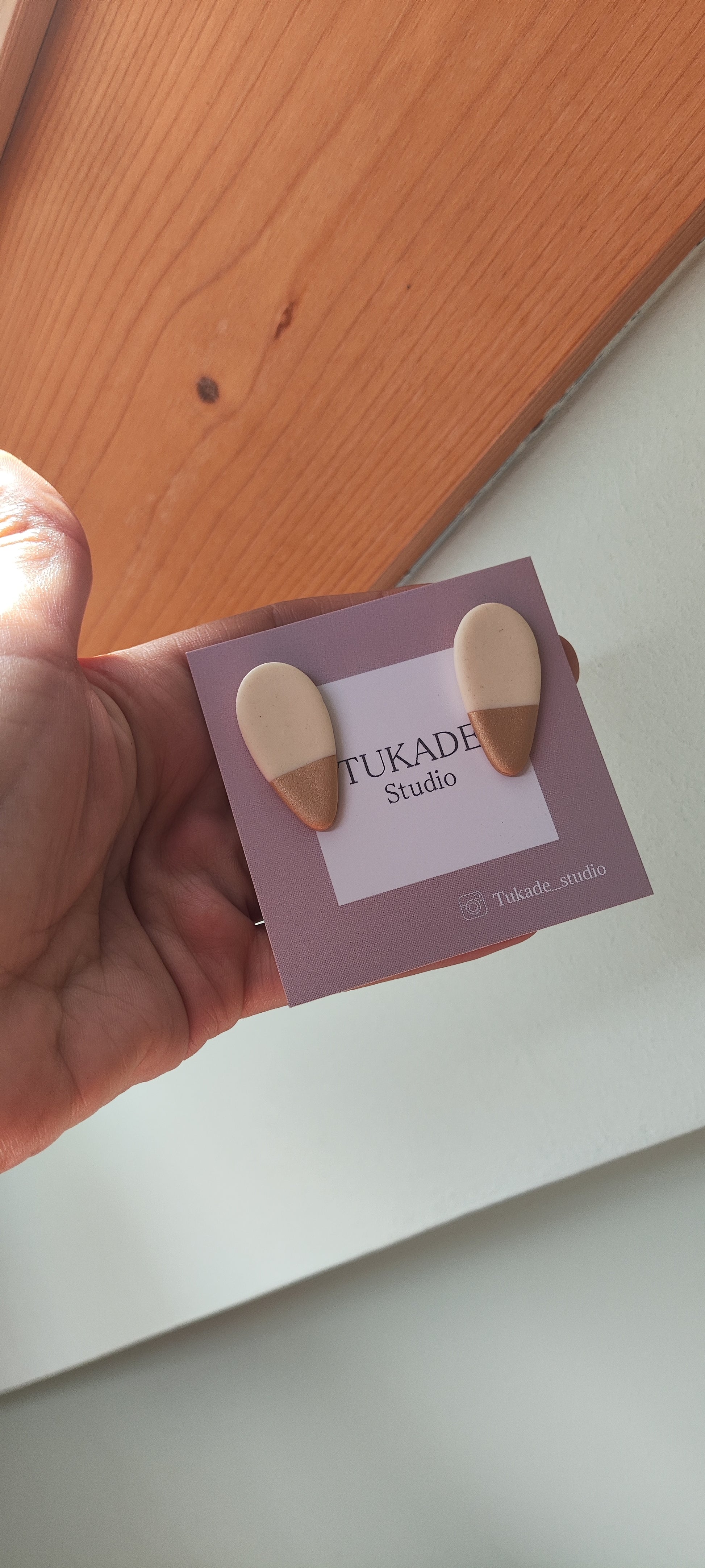 Pendientes minimalistas CUCA en forma de lágrima y en color crudo y champán metalizado.