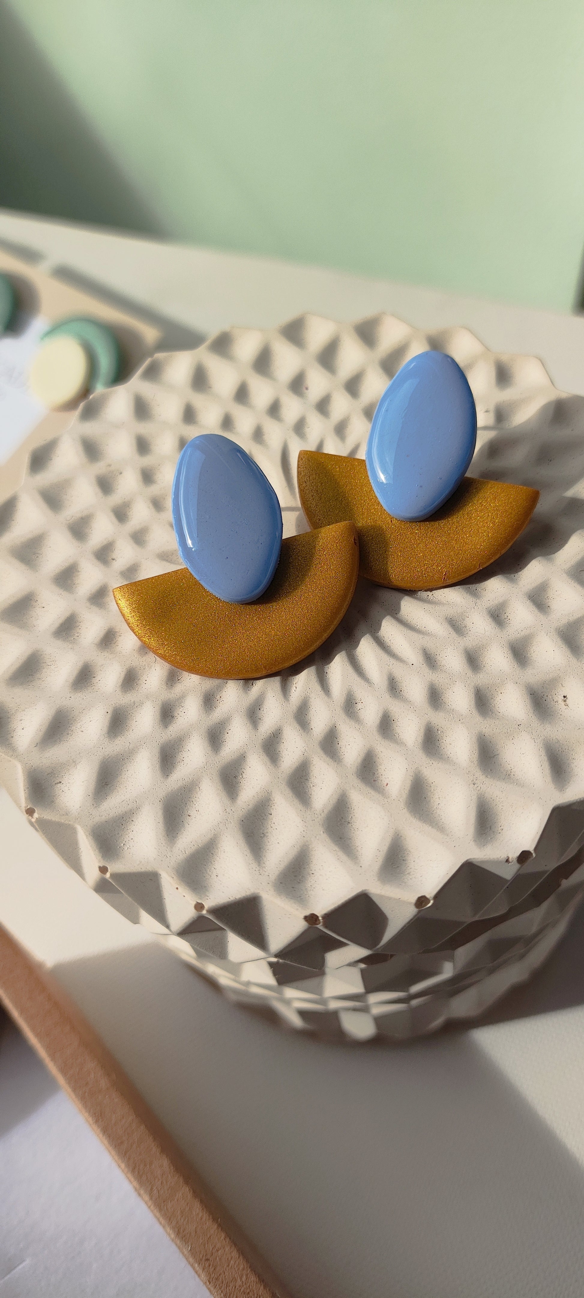 Preciosos pendientes DOROTEA en forma de media luna y óvalo en acabado brillo en resina.