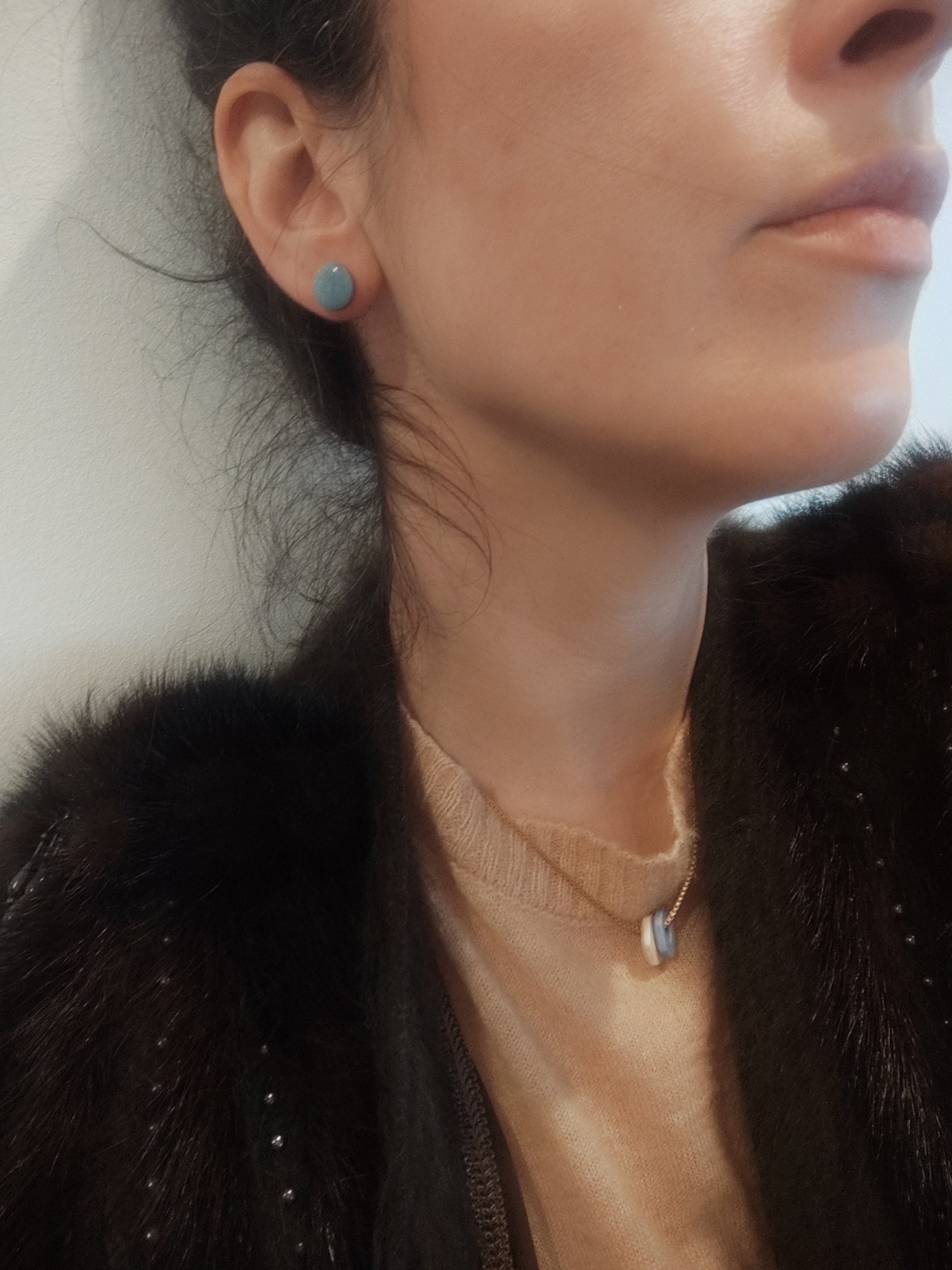 Pendientes minimalistas mini JUANITA en forma de círculo y acabado brillo en resina.