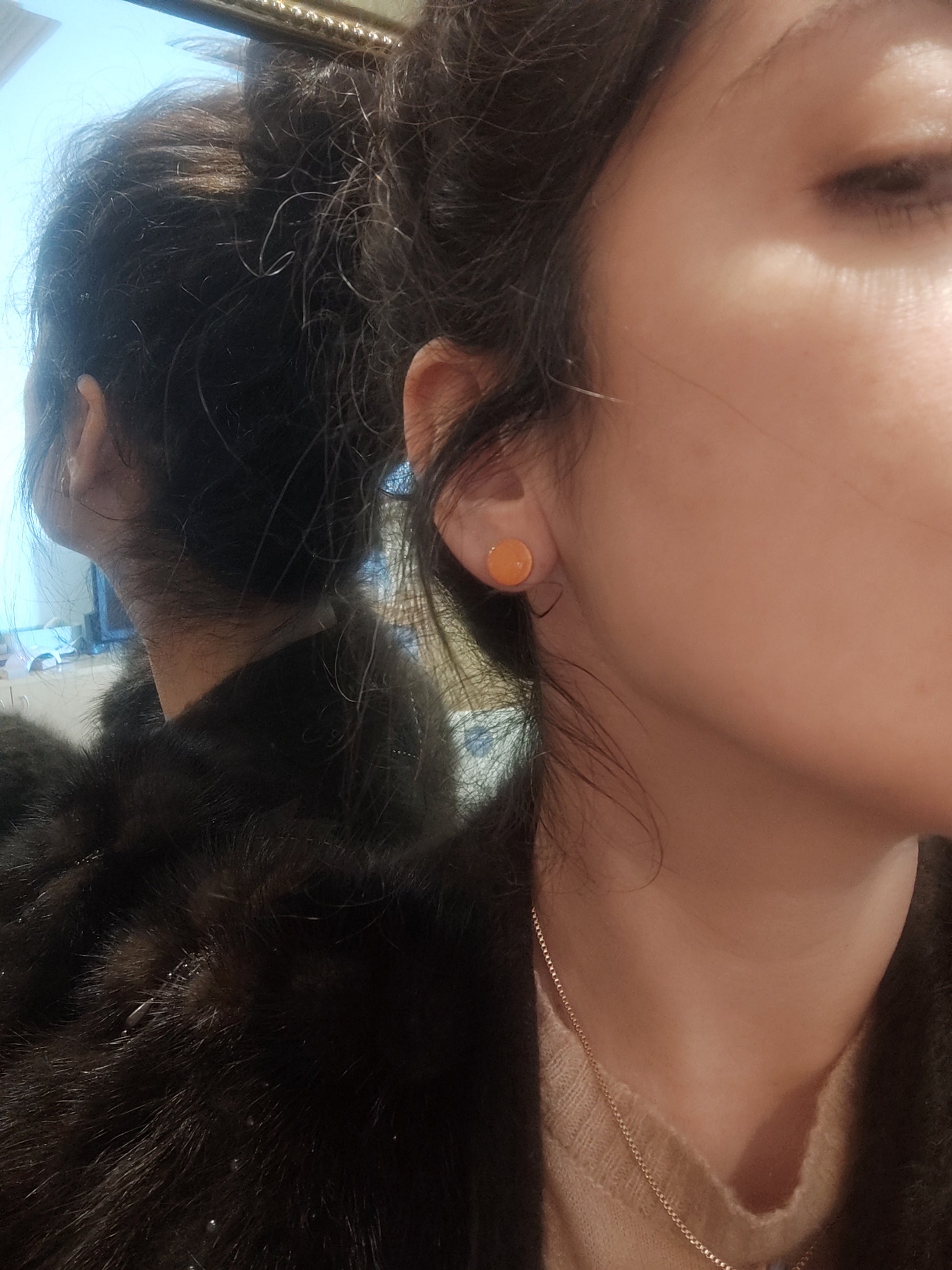 Pendientes minimalistas mini JUANITA en forma de círculo y acabado brillo en resina.