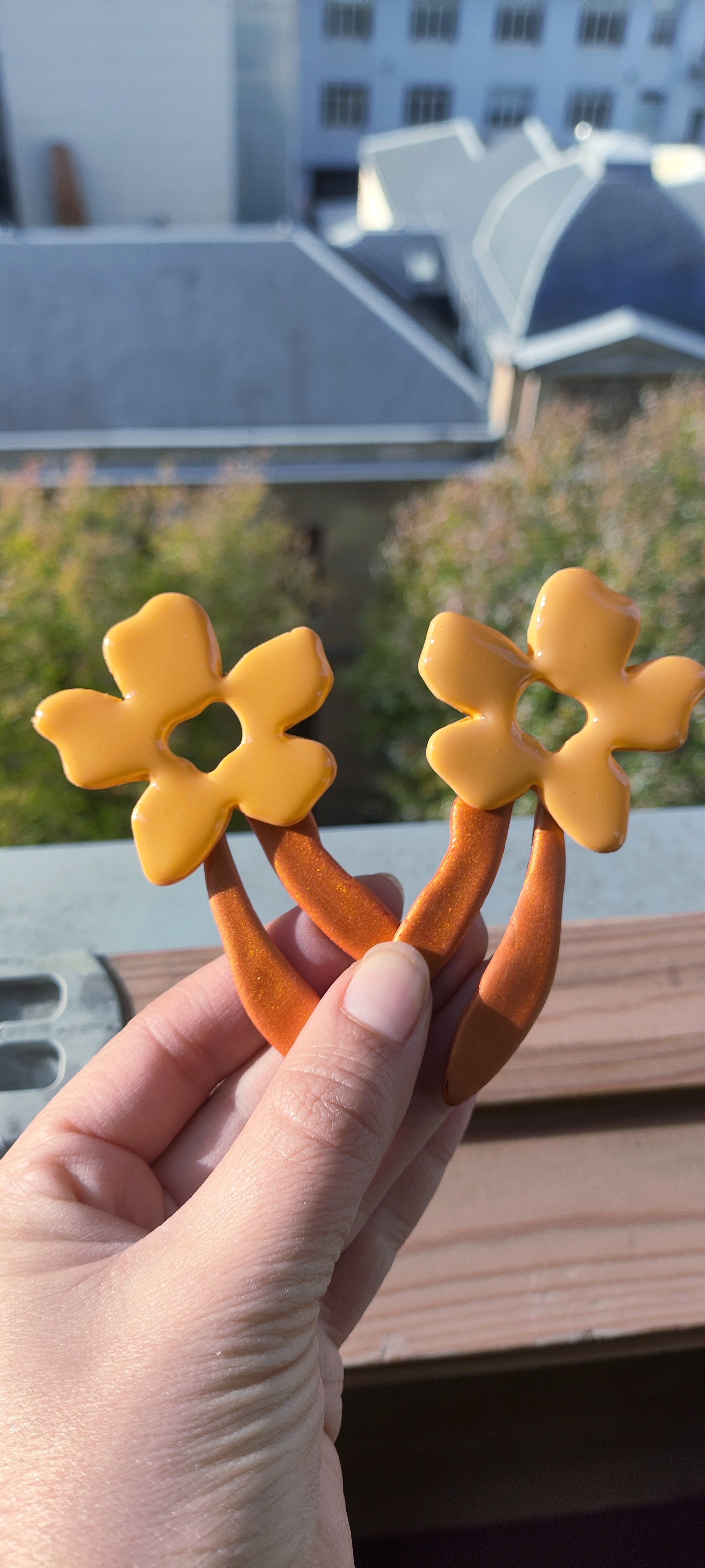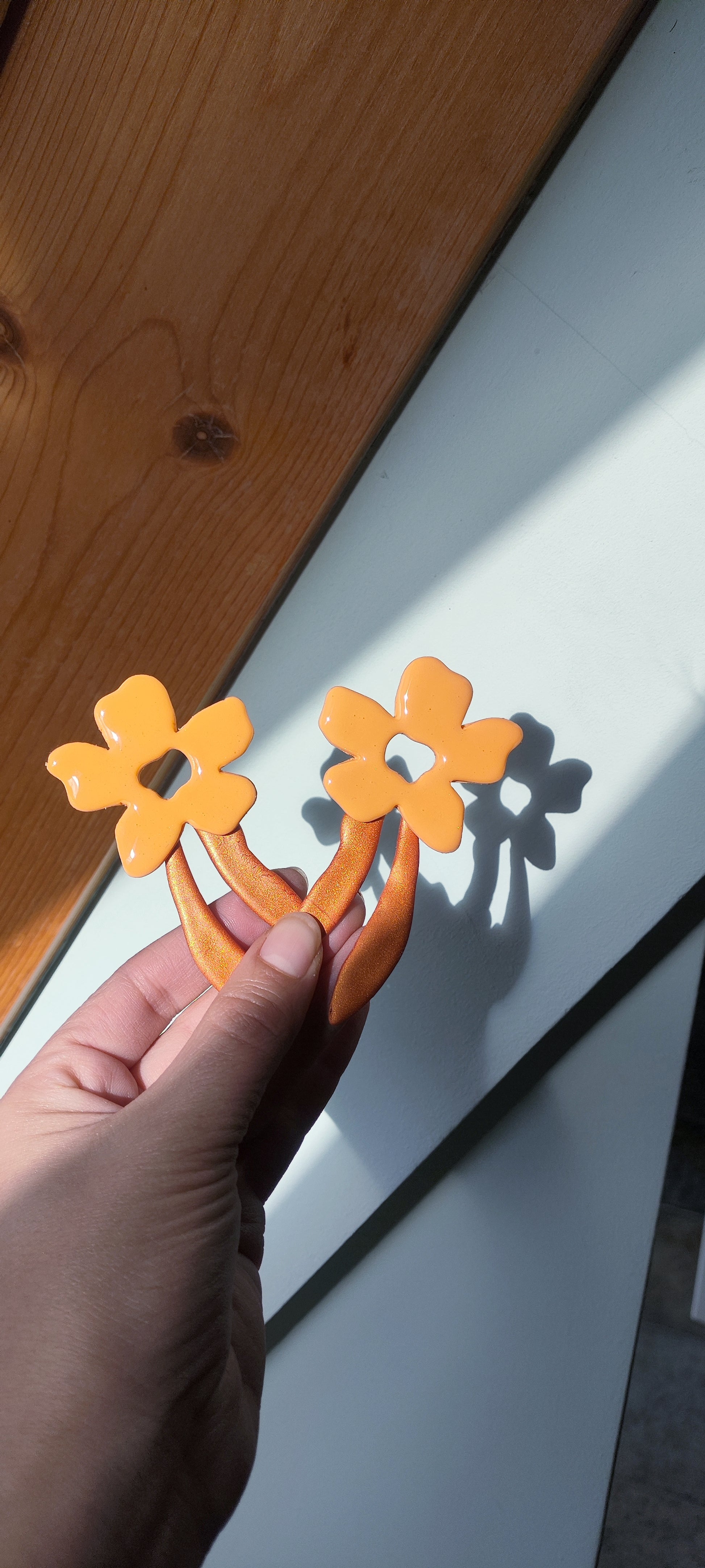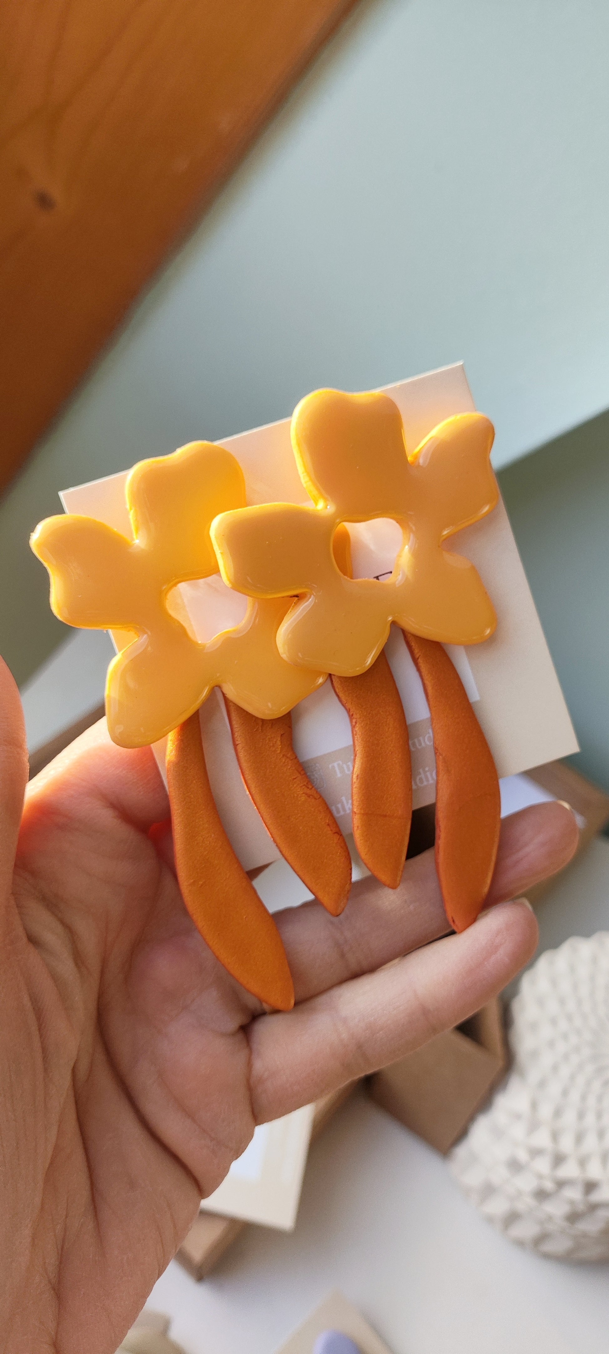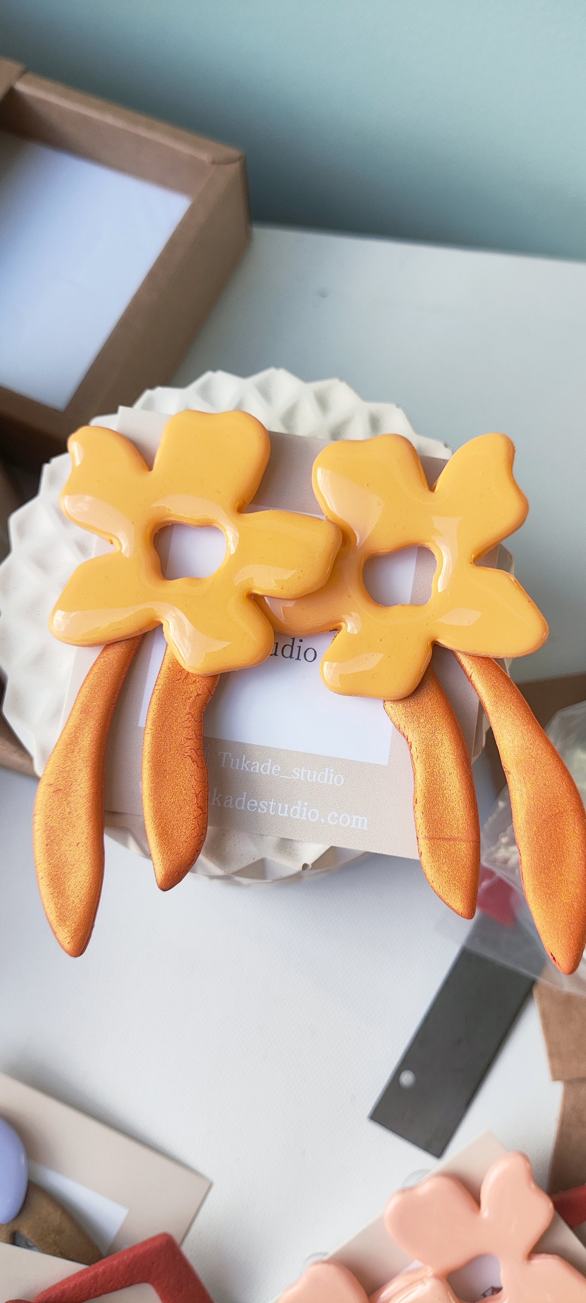 Cada par de pendientes está realizado a mano con mucho cuidado y cariño, con todo su proceso desde el modelado, corte, varios horneados, lijado y pulido.