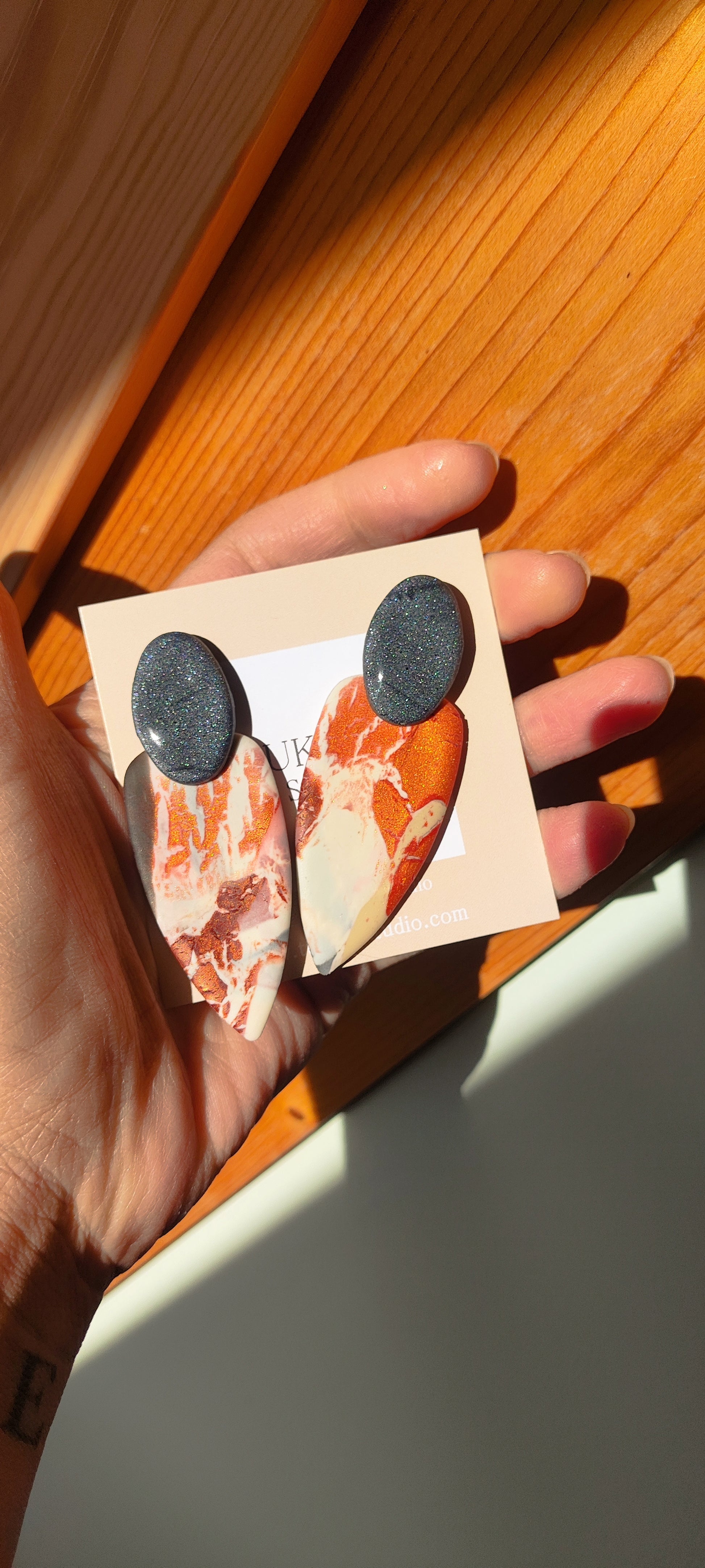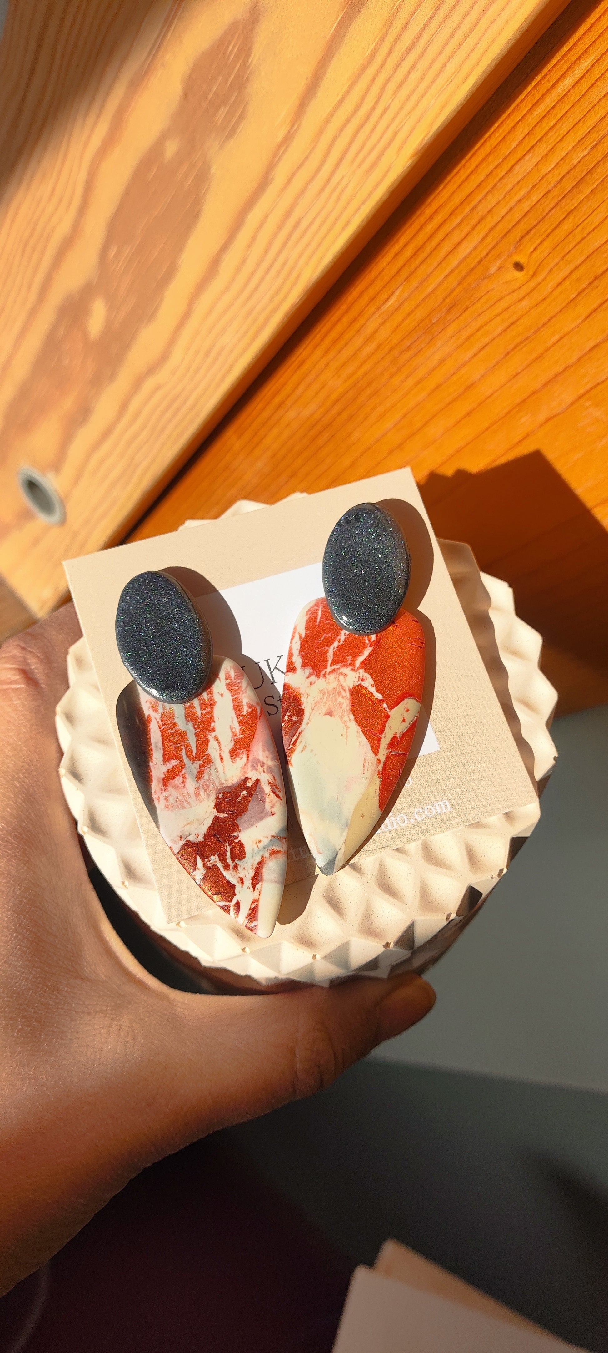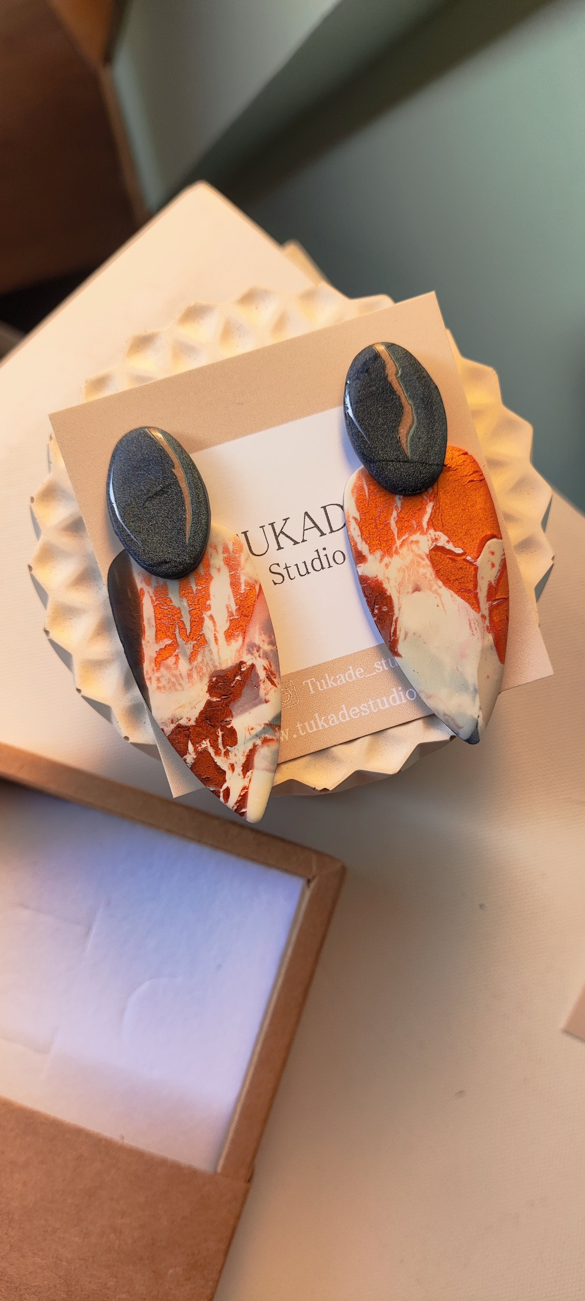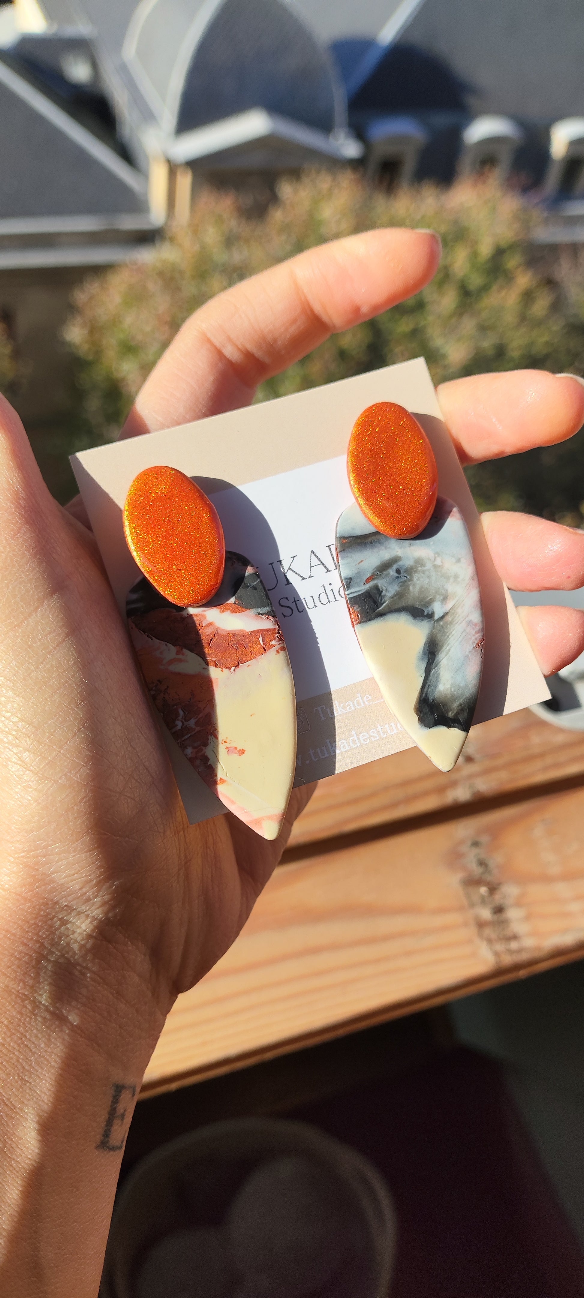 Cada par de pendientes está realizado a mano con mucho cuidado y cariño, con todo su proceso desde el modelado, corte, varios horneados, lijado y pulido.
