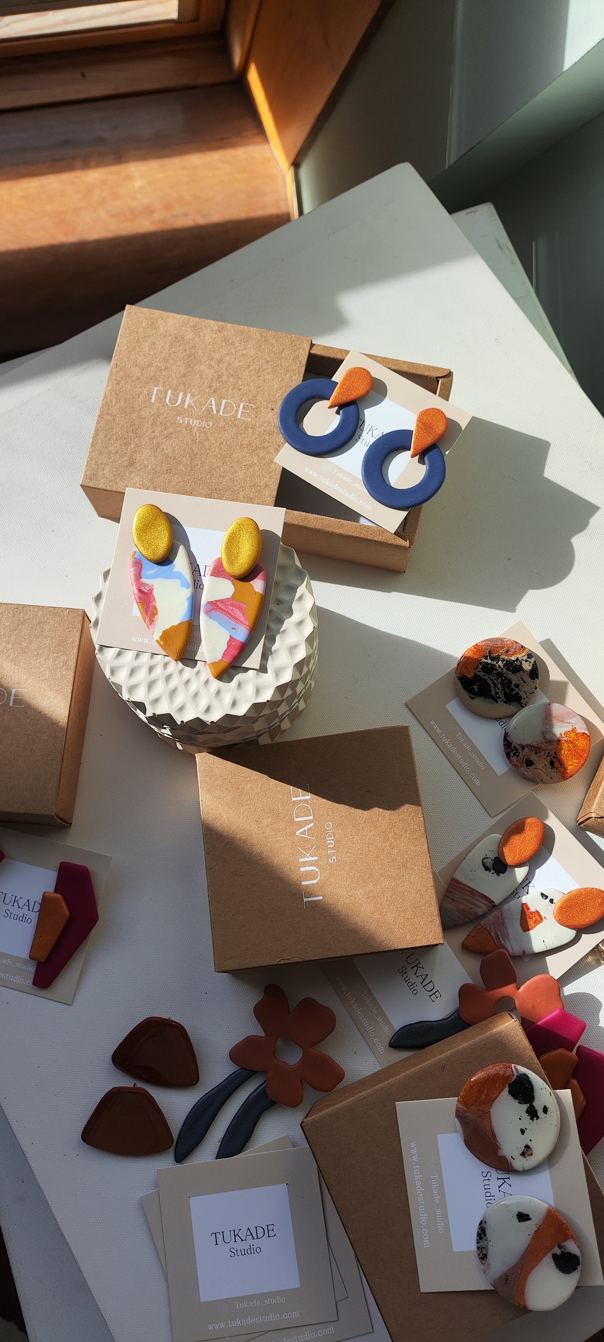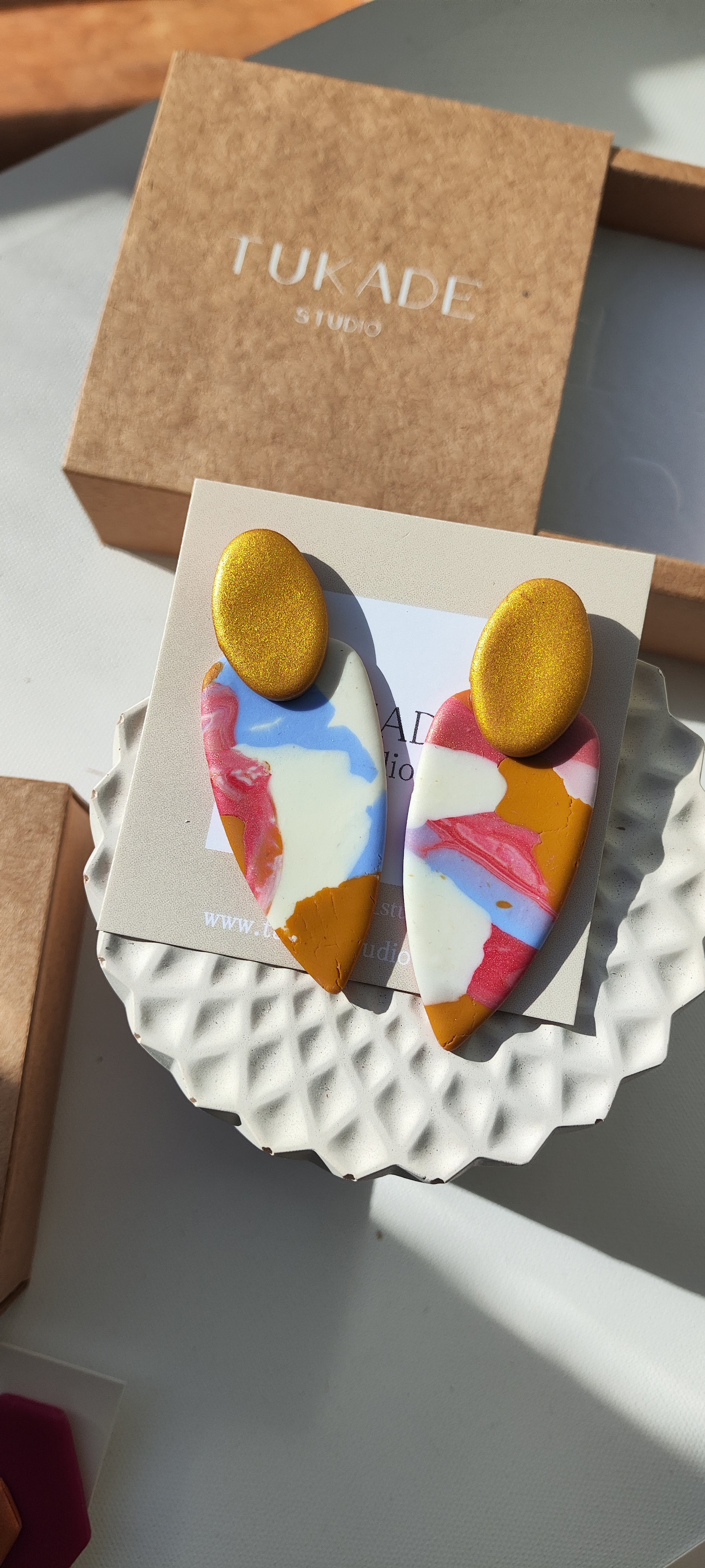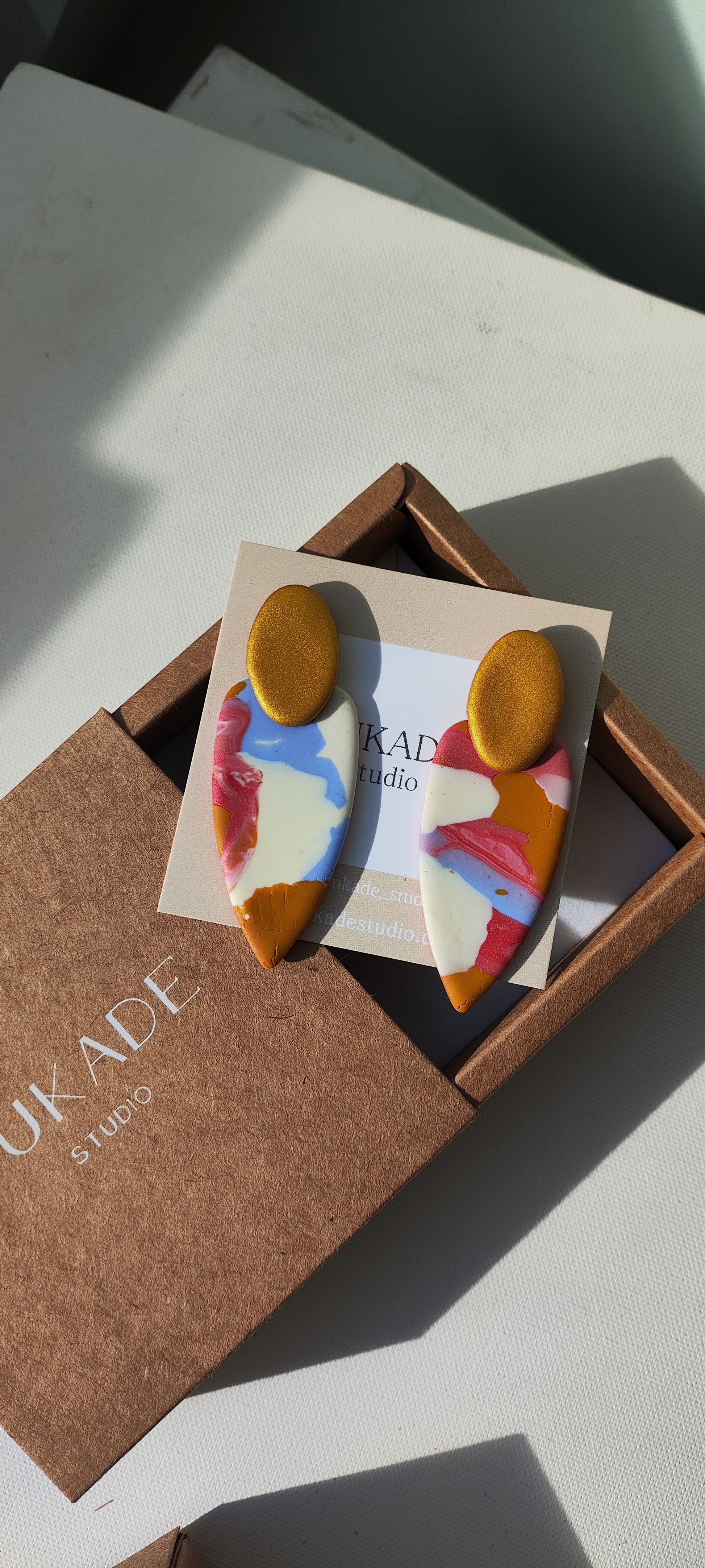 Cada par de pendientes está realizado a mano con mucho cuidado y cariño, con todo su proceso desde el modelado, corte, varios horneados, lijado y pulido.