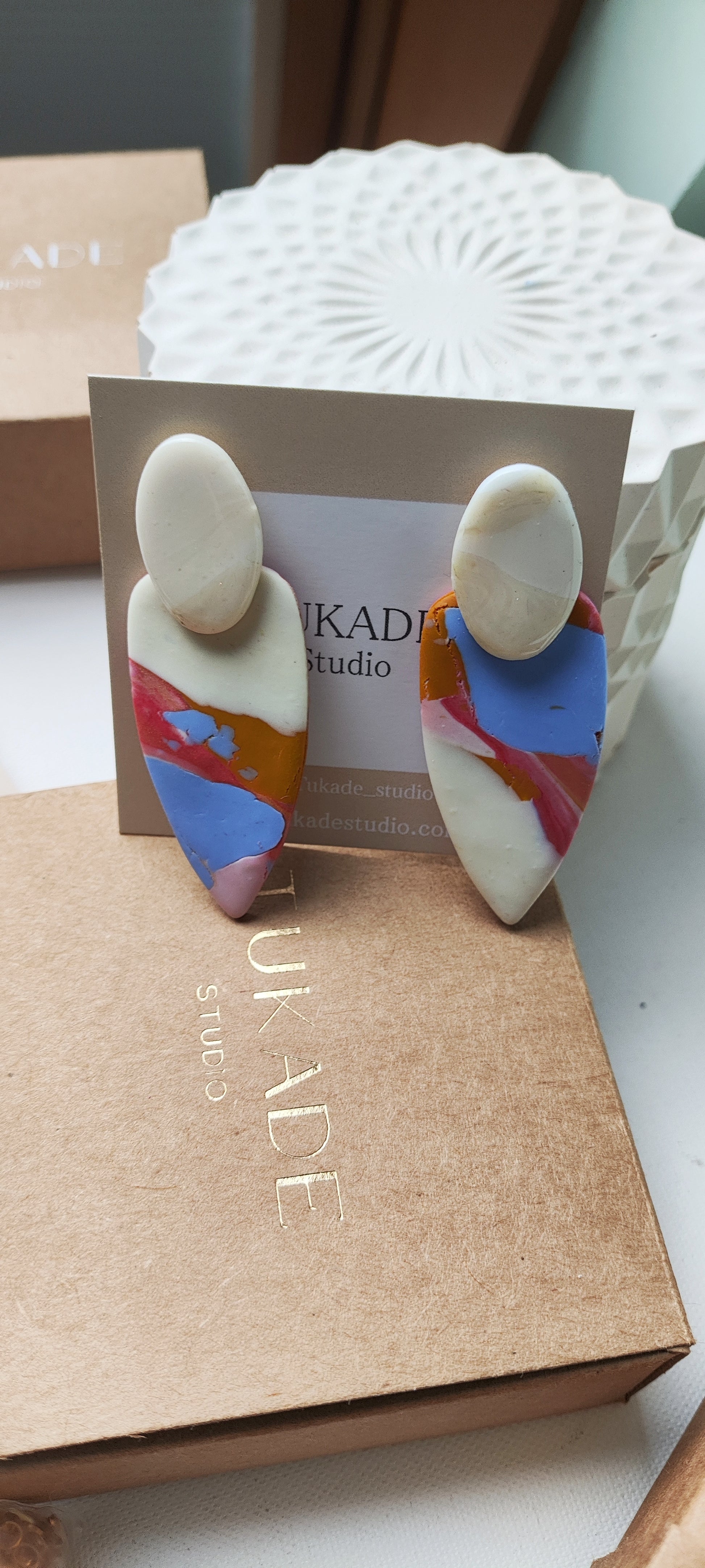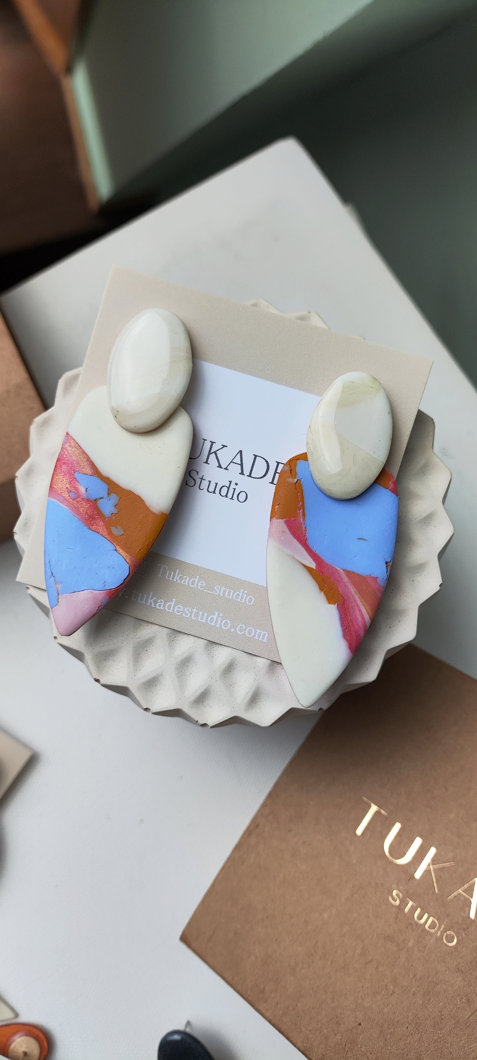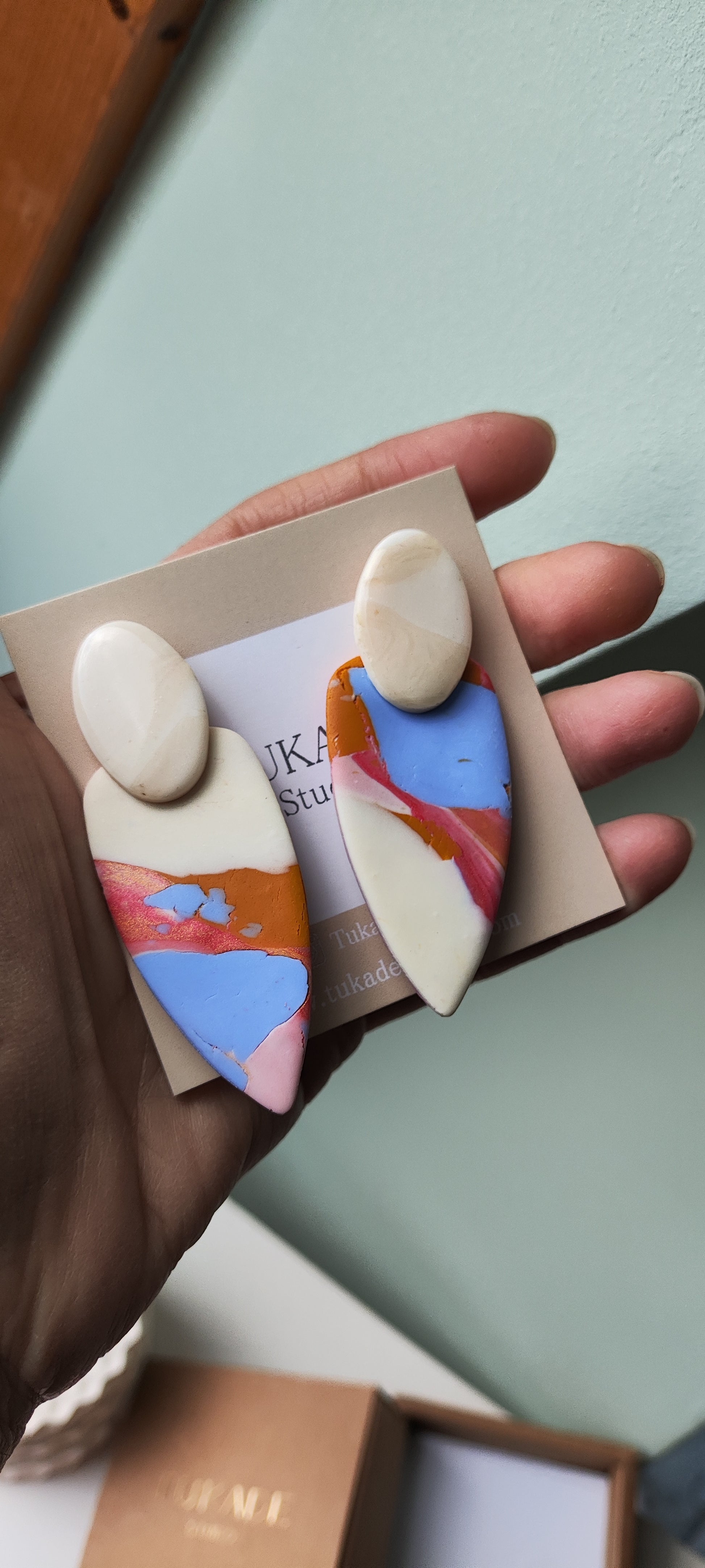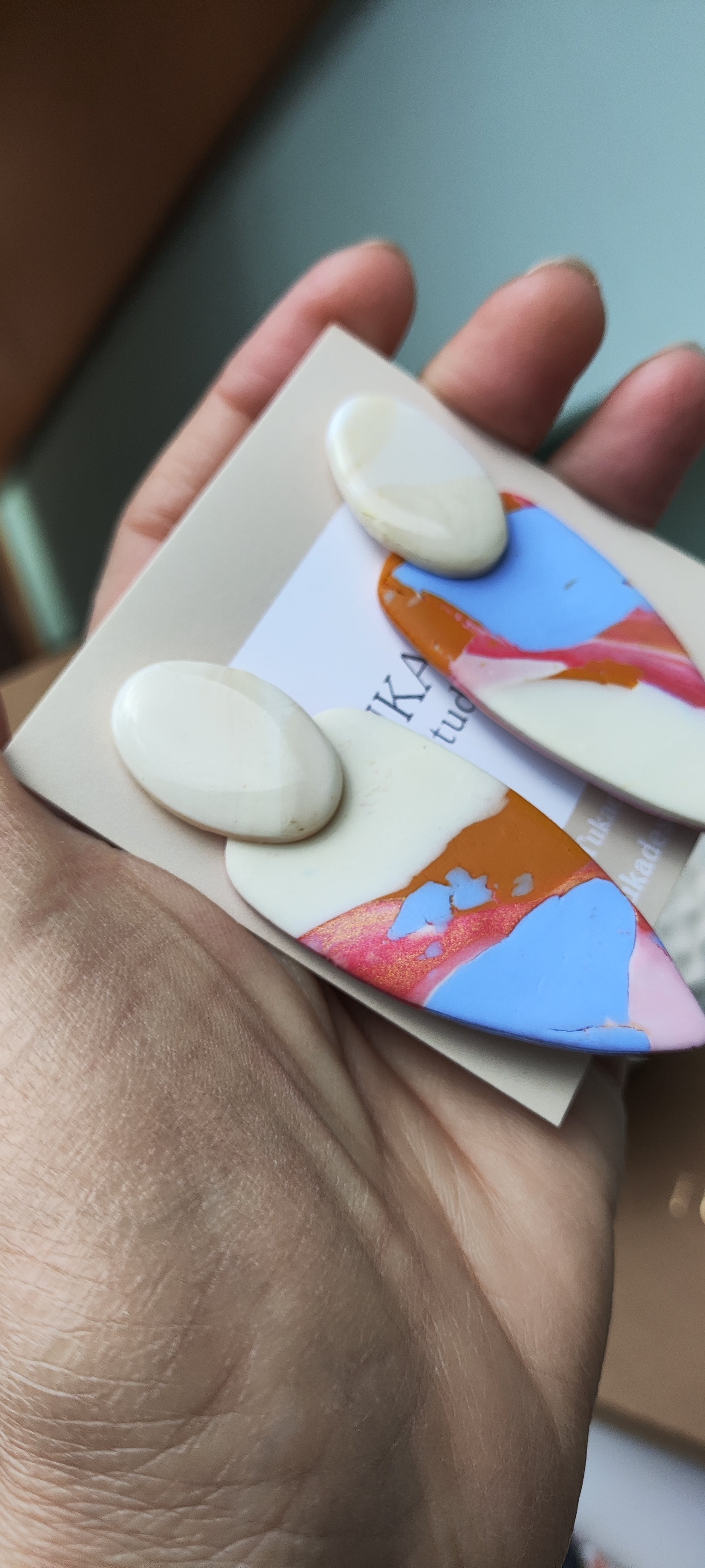 Cada par de pendientes está realizado a mano con mucho cuidado y cariño, con todo su proceso desde el modelado, corte, varios horneados, lijado y pulido.
