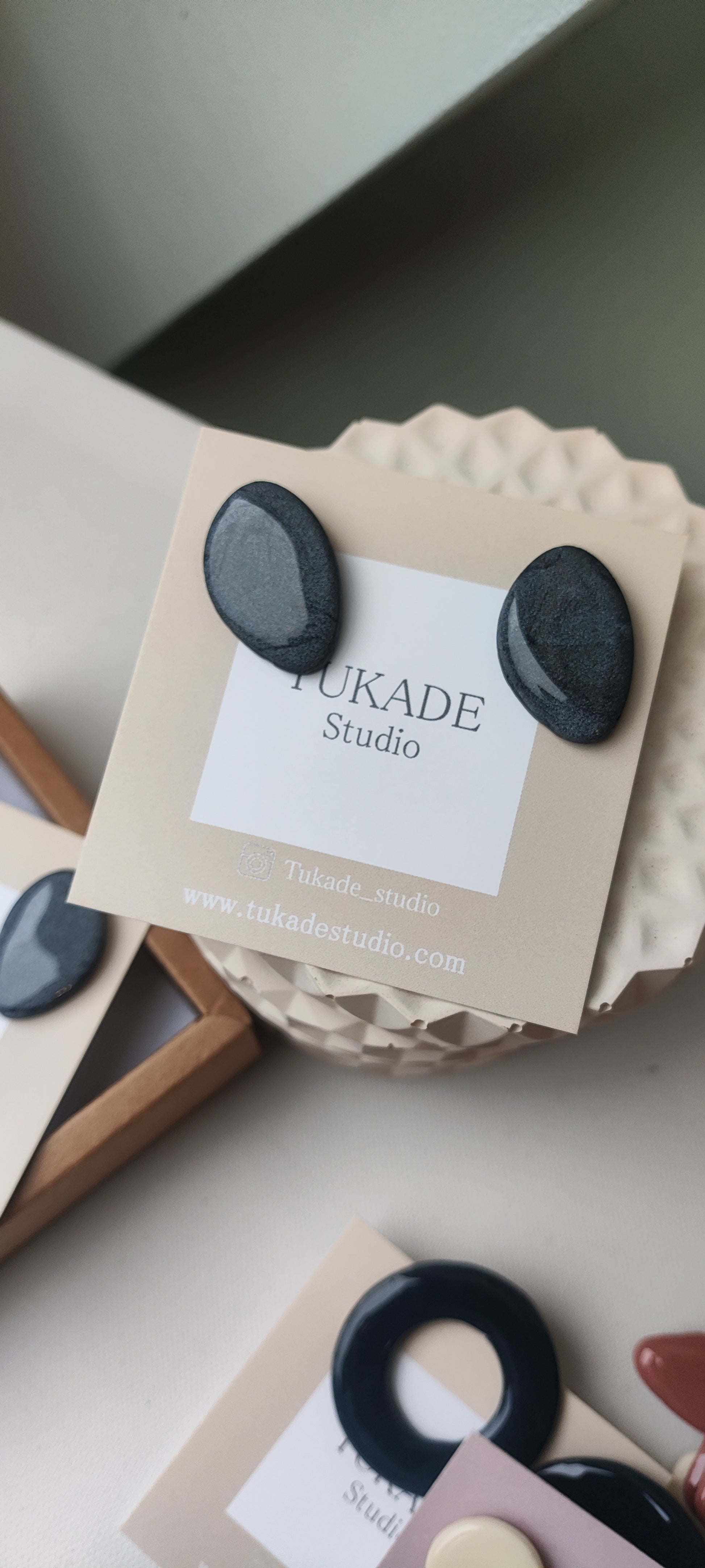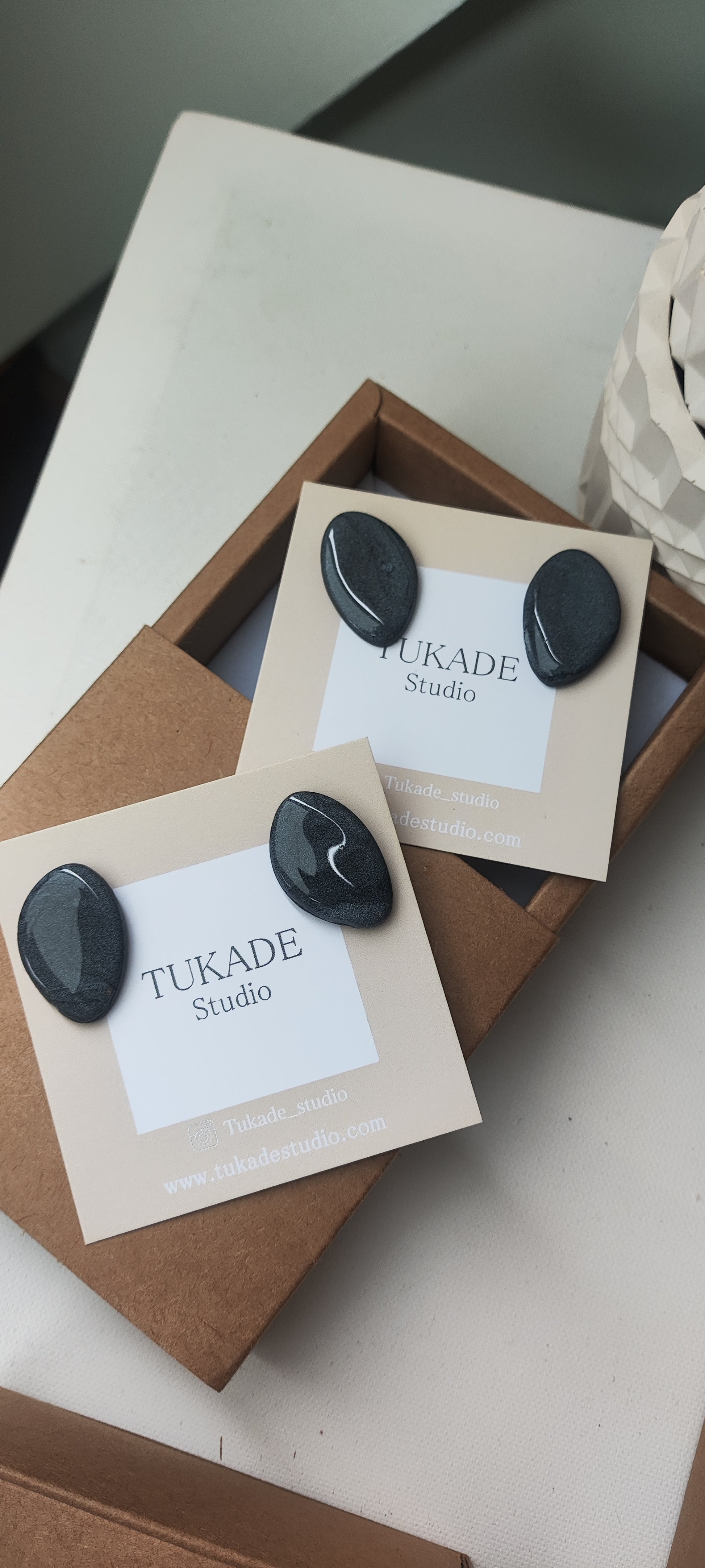 Cada par de pendientes está realizado a mano con mucho cuidado y cariño, con todo su proceso desde el modelado, corte, varios horneados, lijado y pulido.