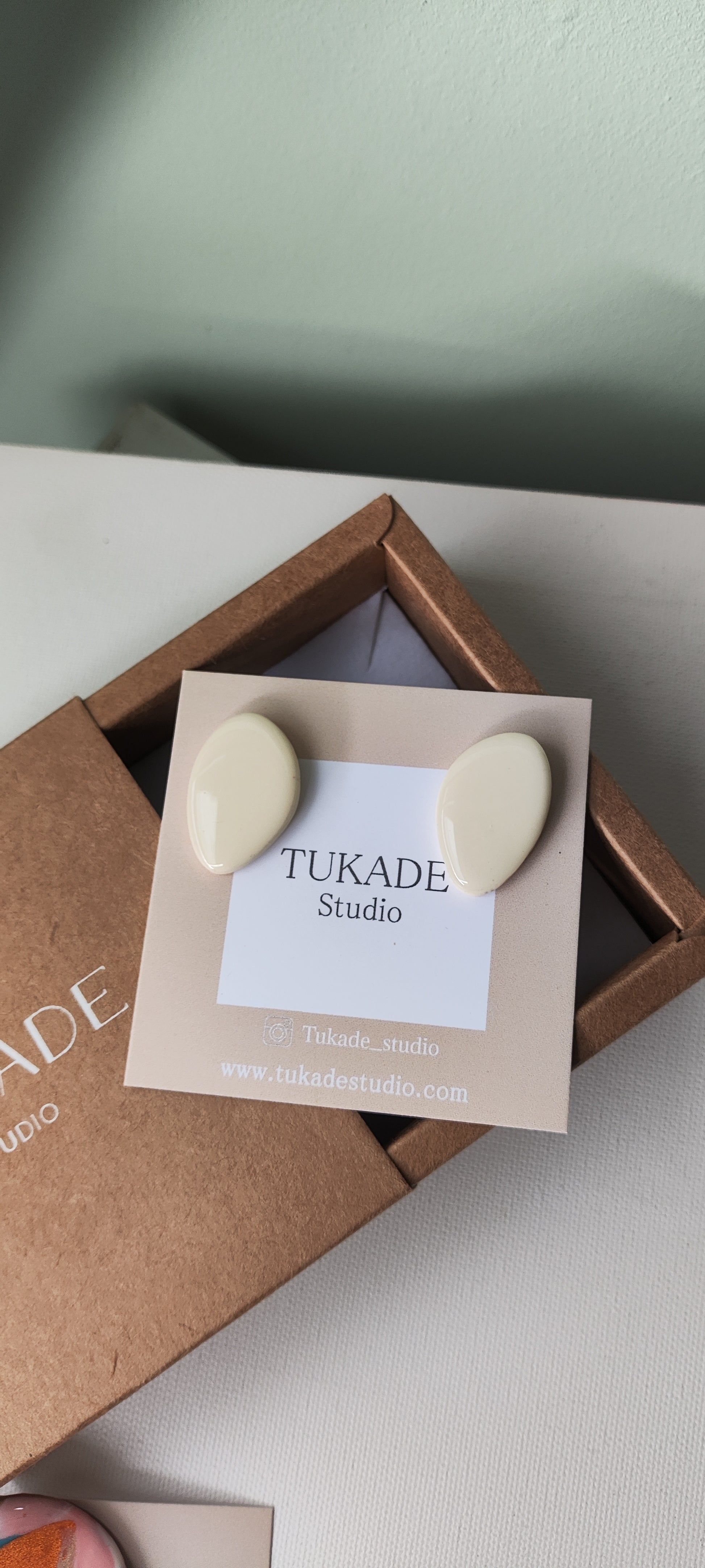 Pendientes minimalistas MARIANA en forma de lágrima y en color crudo y acabado brillo.