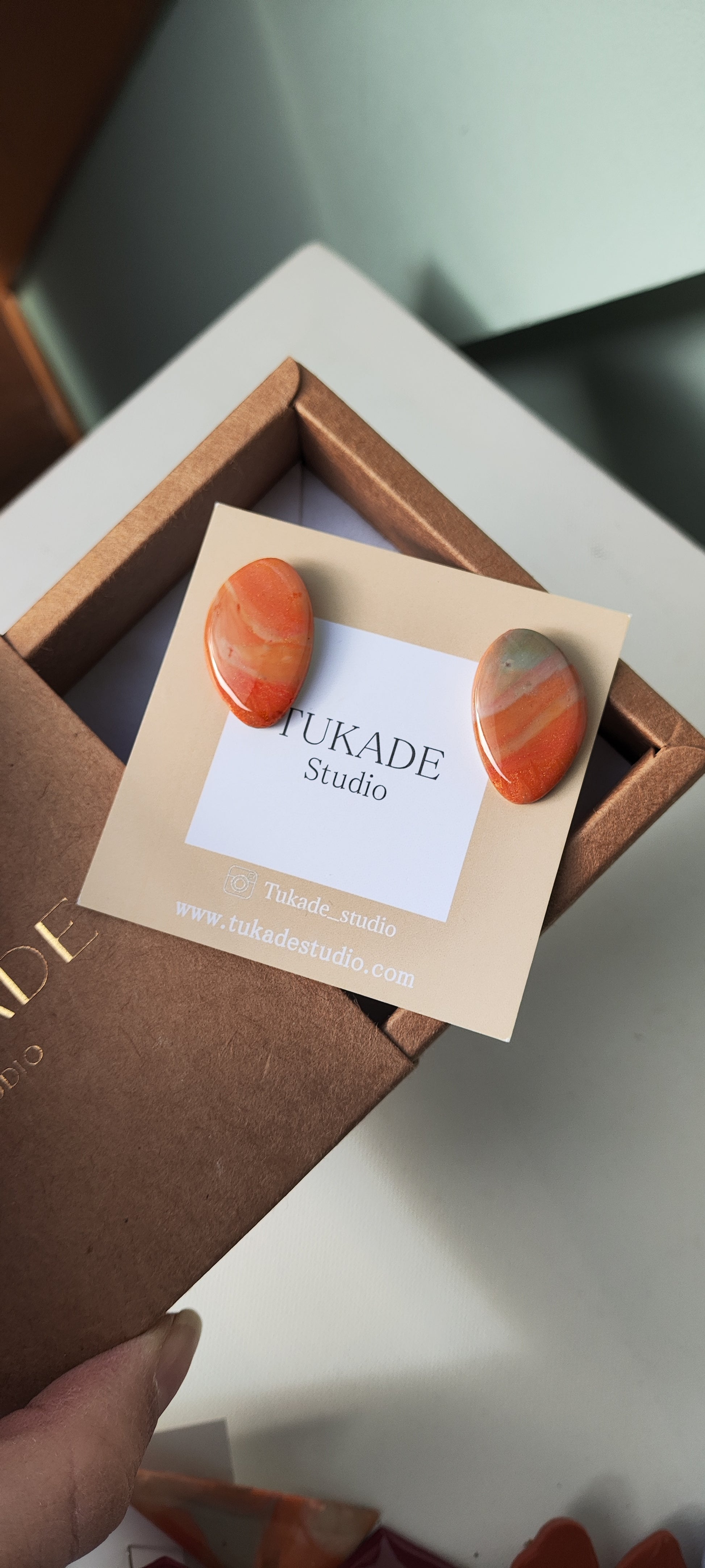 Cada par de pendientes está realizado a mano con mucho cuidado y cariño, con todo su proceso desde el modelado, corte, varios horneados, lijado y pulido.