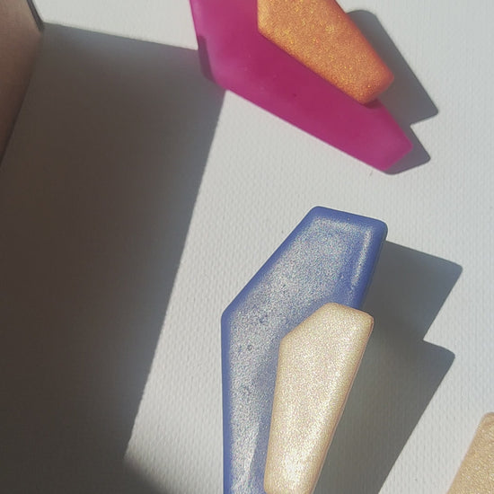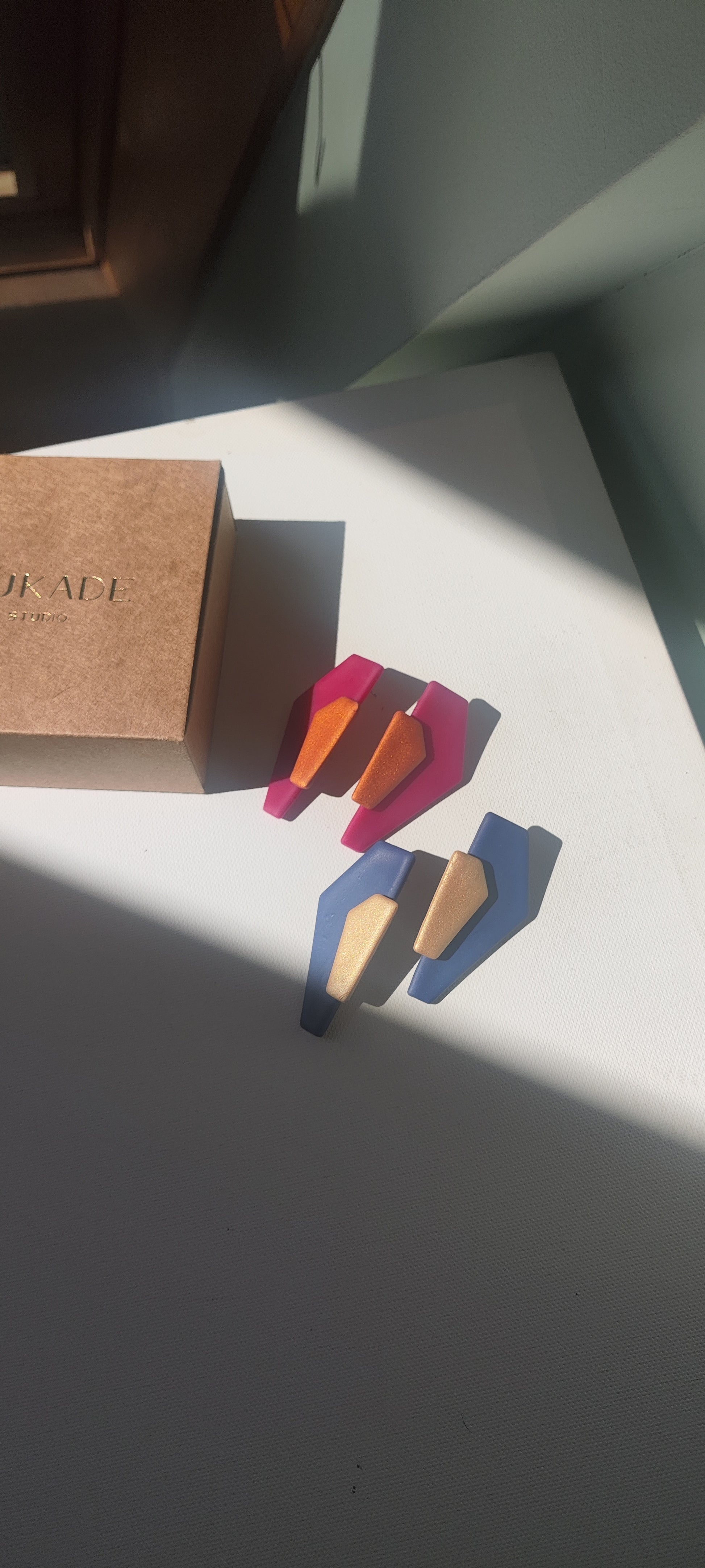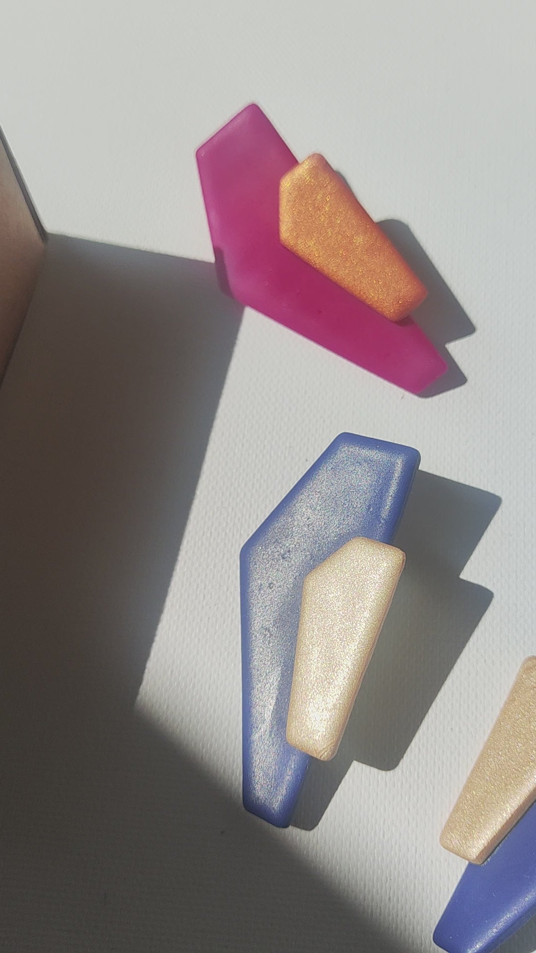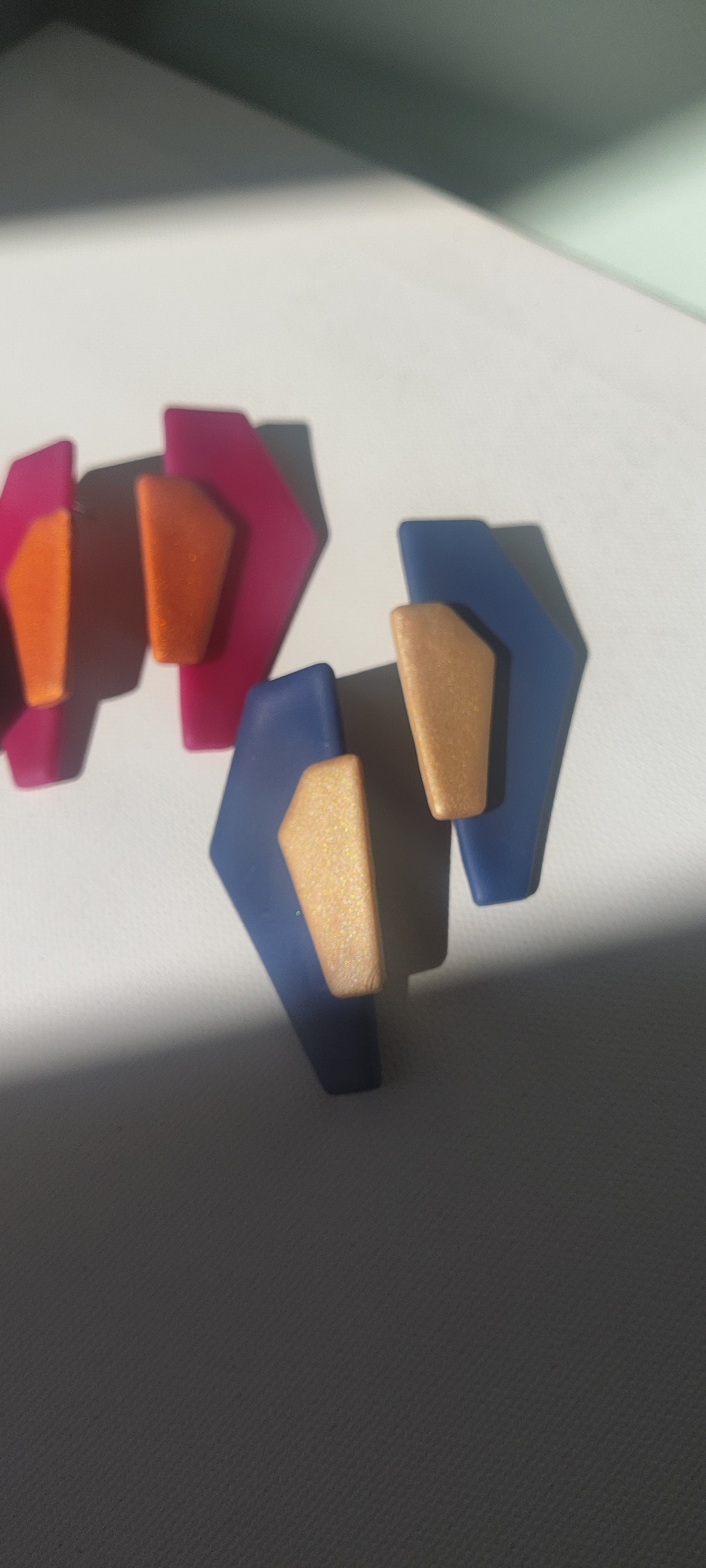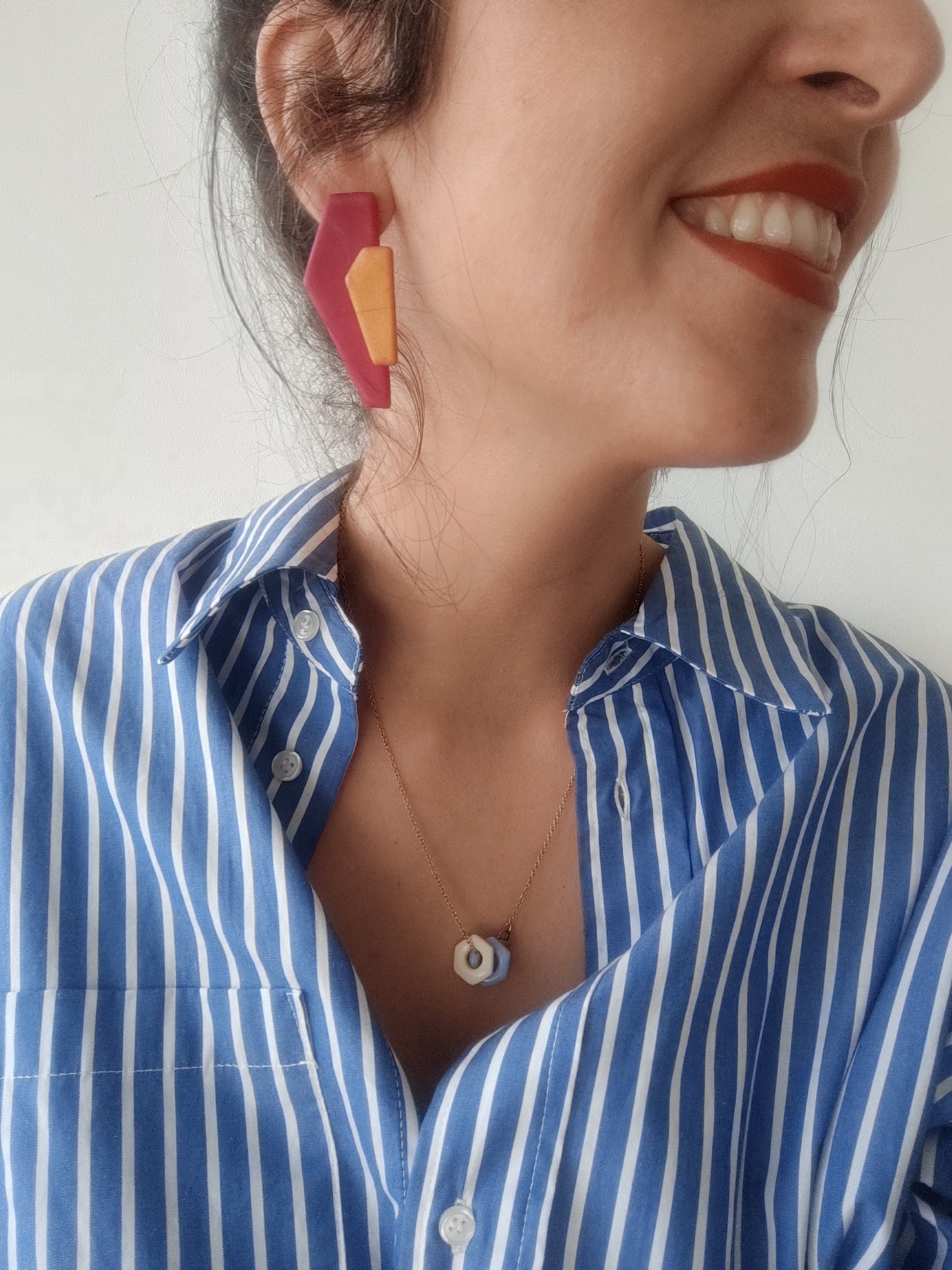 Cada par de pendientes está realizado a mano con mucho cuidado y cariño, con todo su proceso desde el modelado, corte, varios horneados, lijado y pulido.