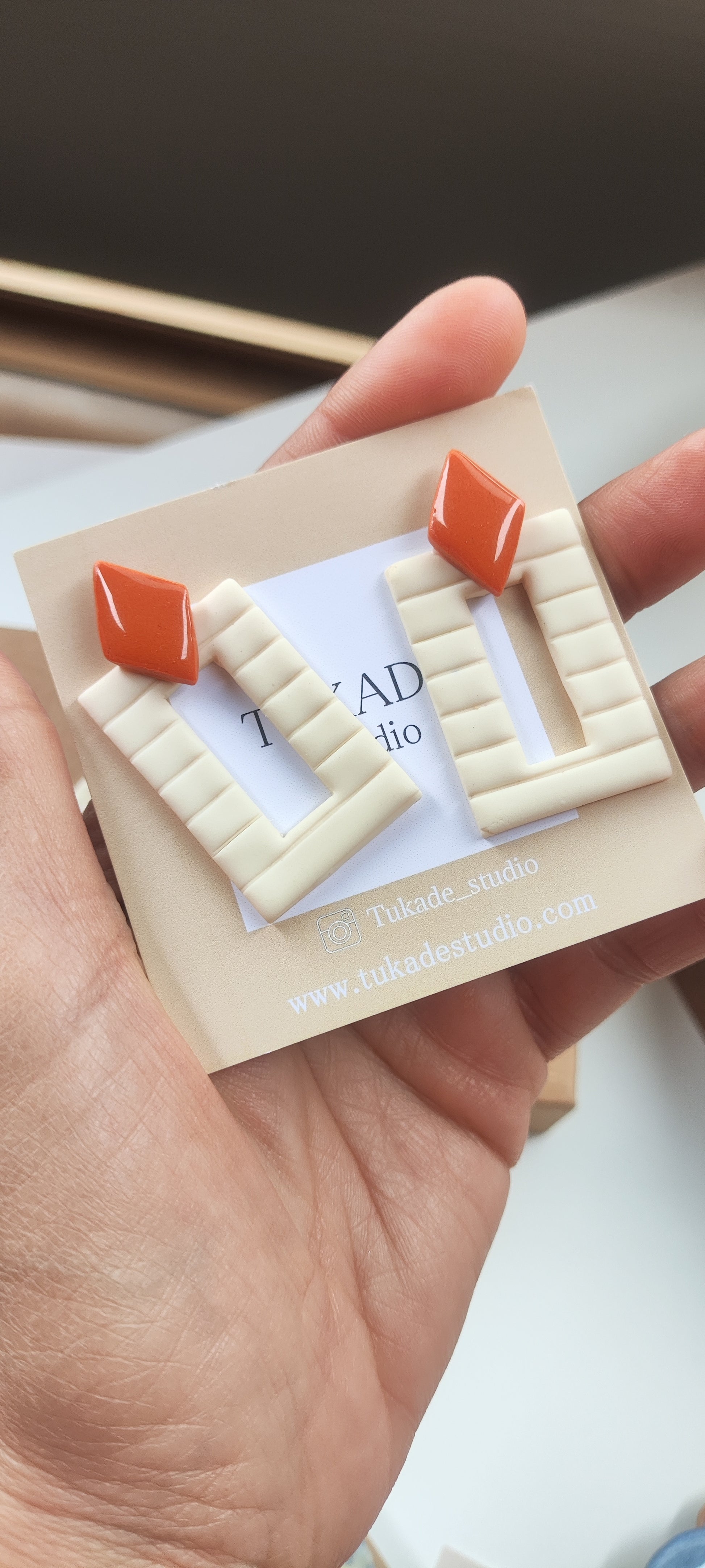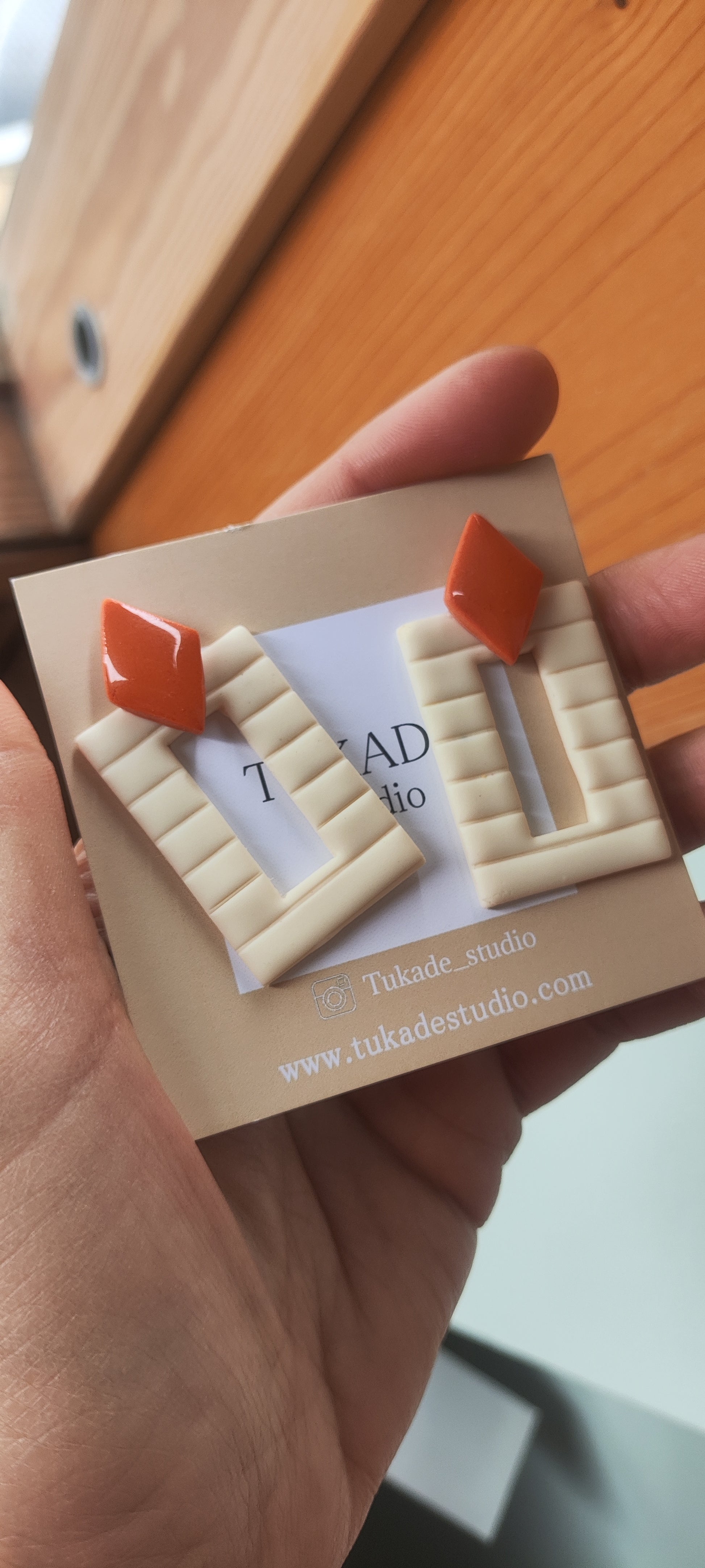Cada par de pendientes está realizado a mano con mucho cuidado y cariño, con todo su proceso desde el modelado, corte, varios horneados, lijado y pulido.