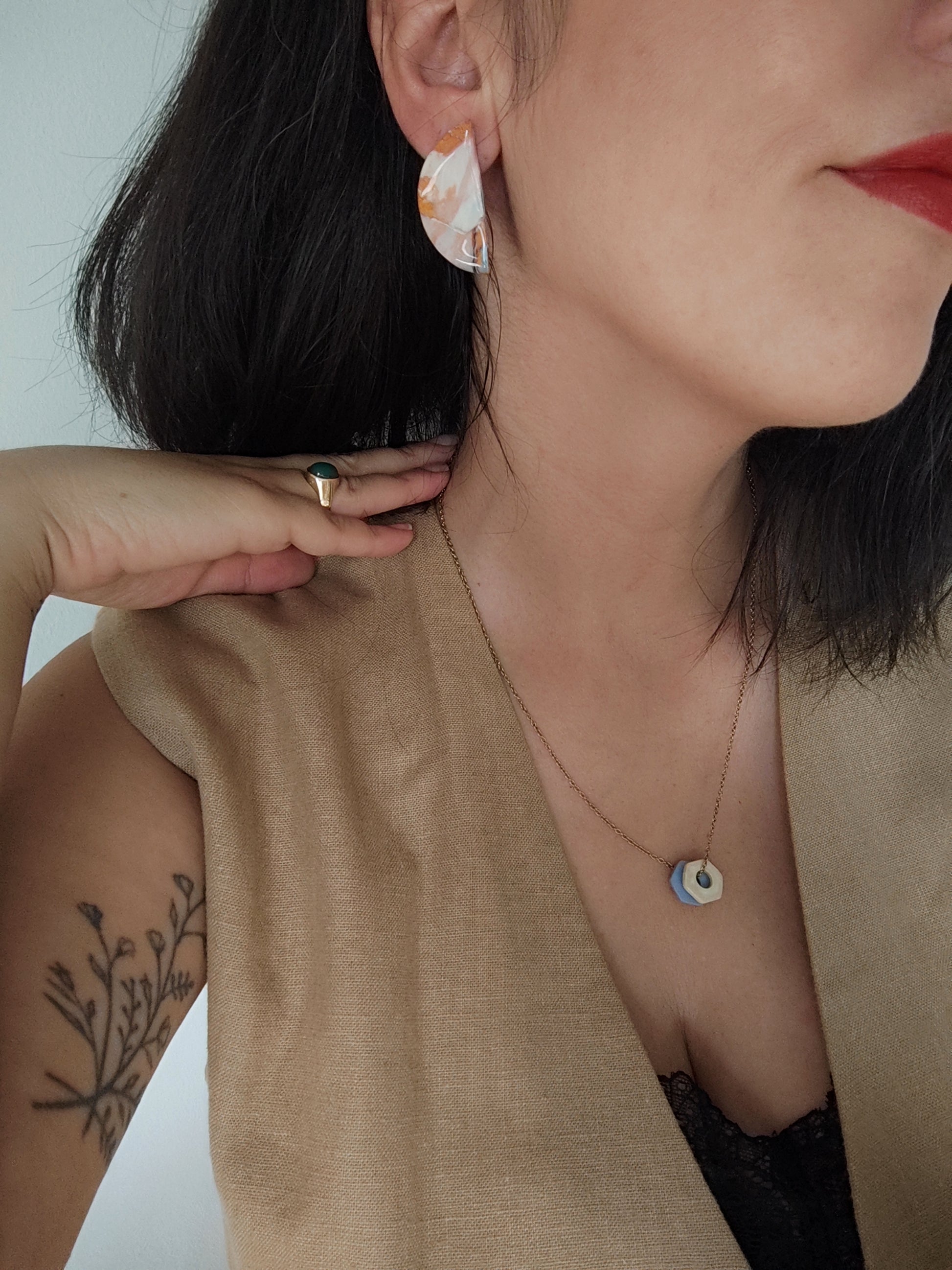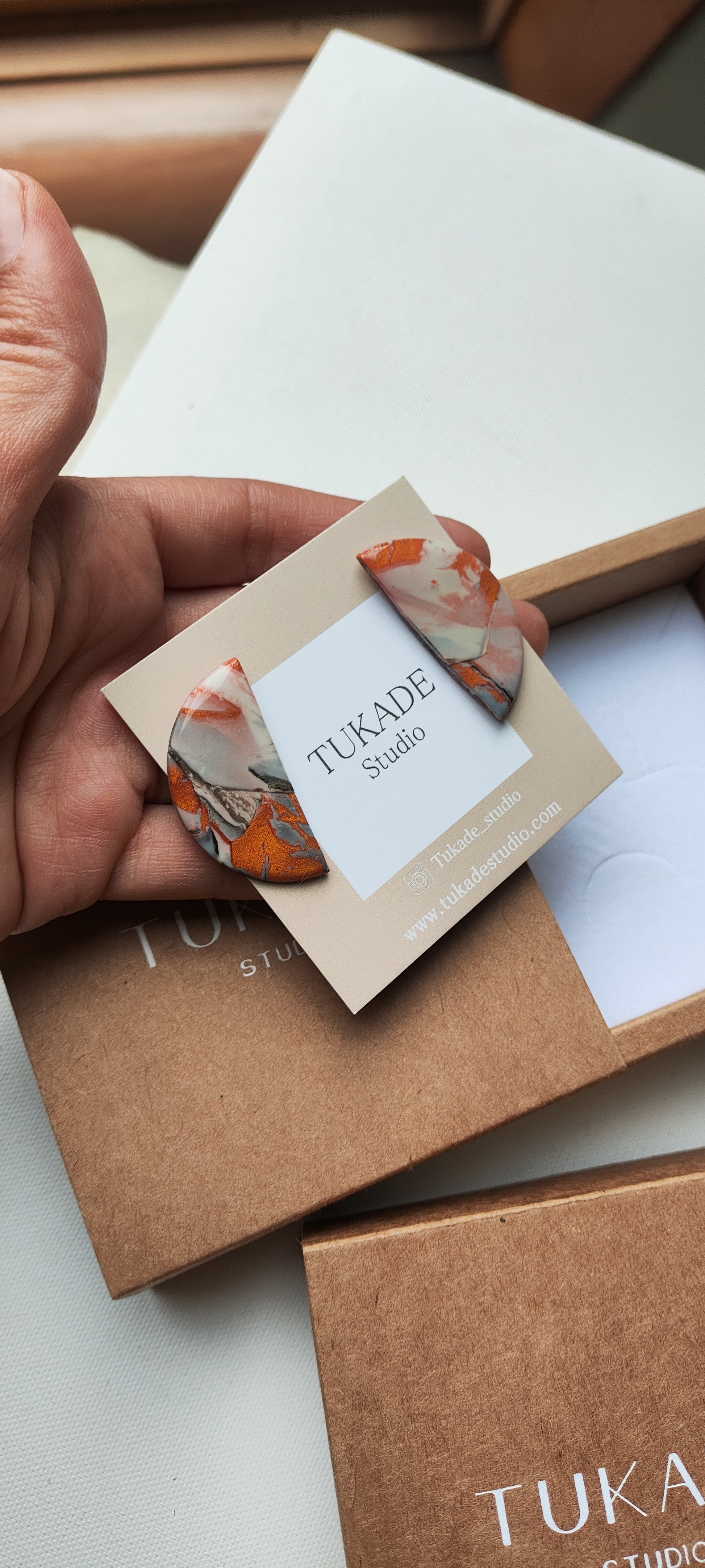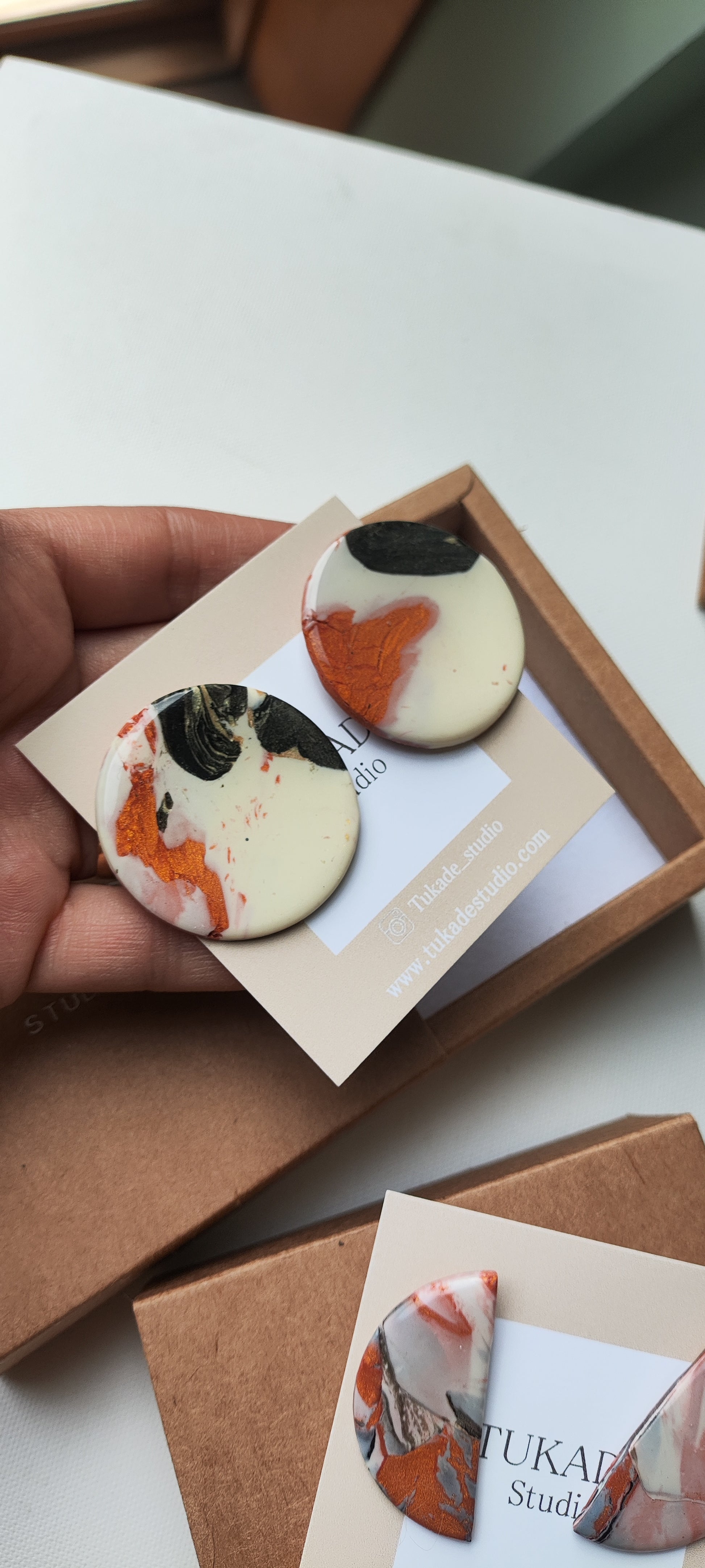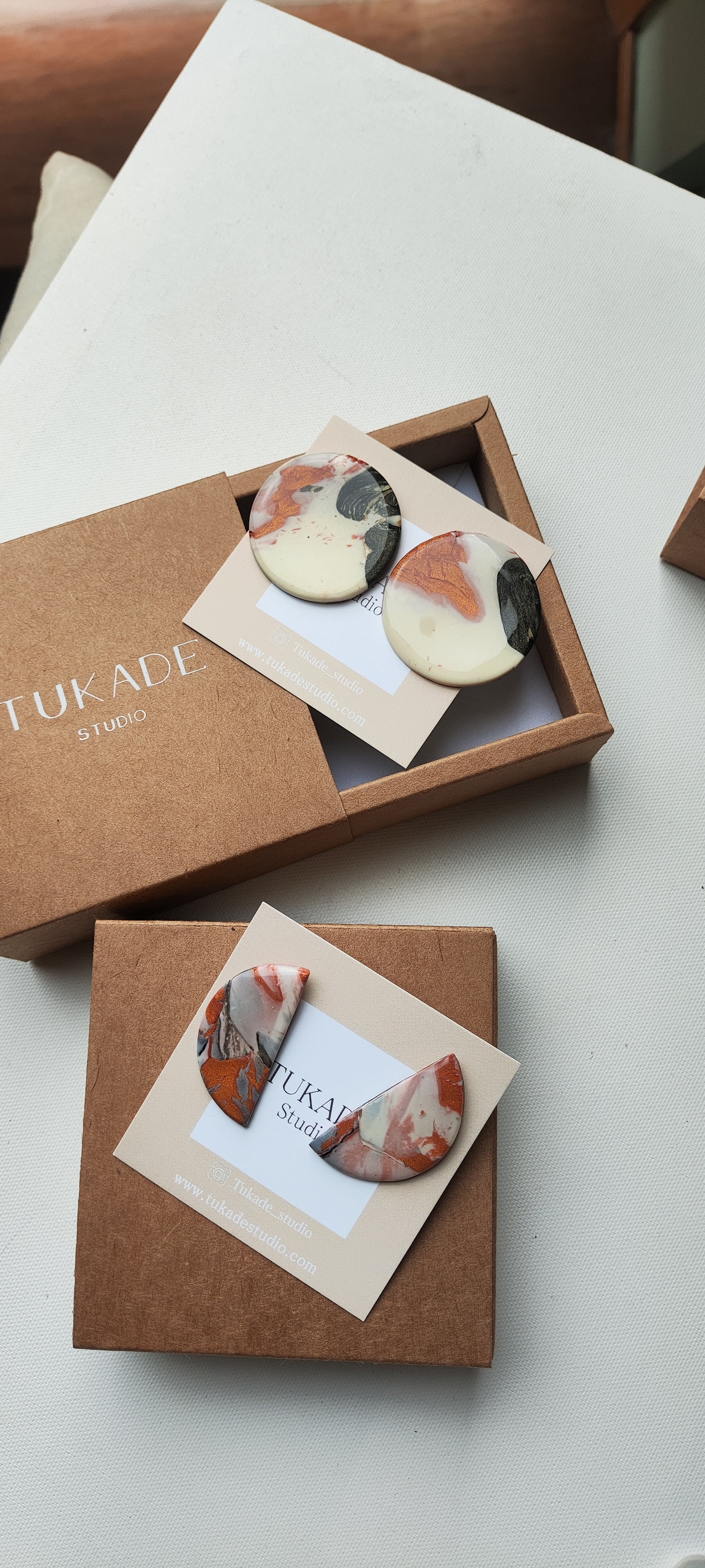 Cada par de pendientes está realizado a mano con mucho cuidado y cariño, con todo su proceso desde el modelado, corte, varios horneados, lijado y pulido.