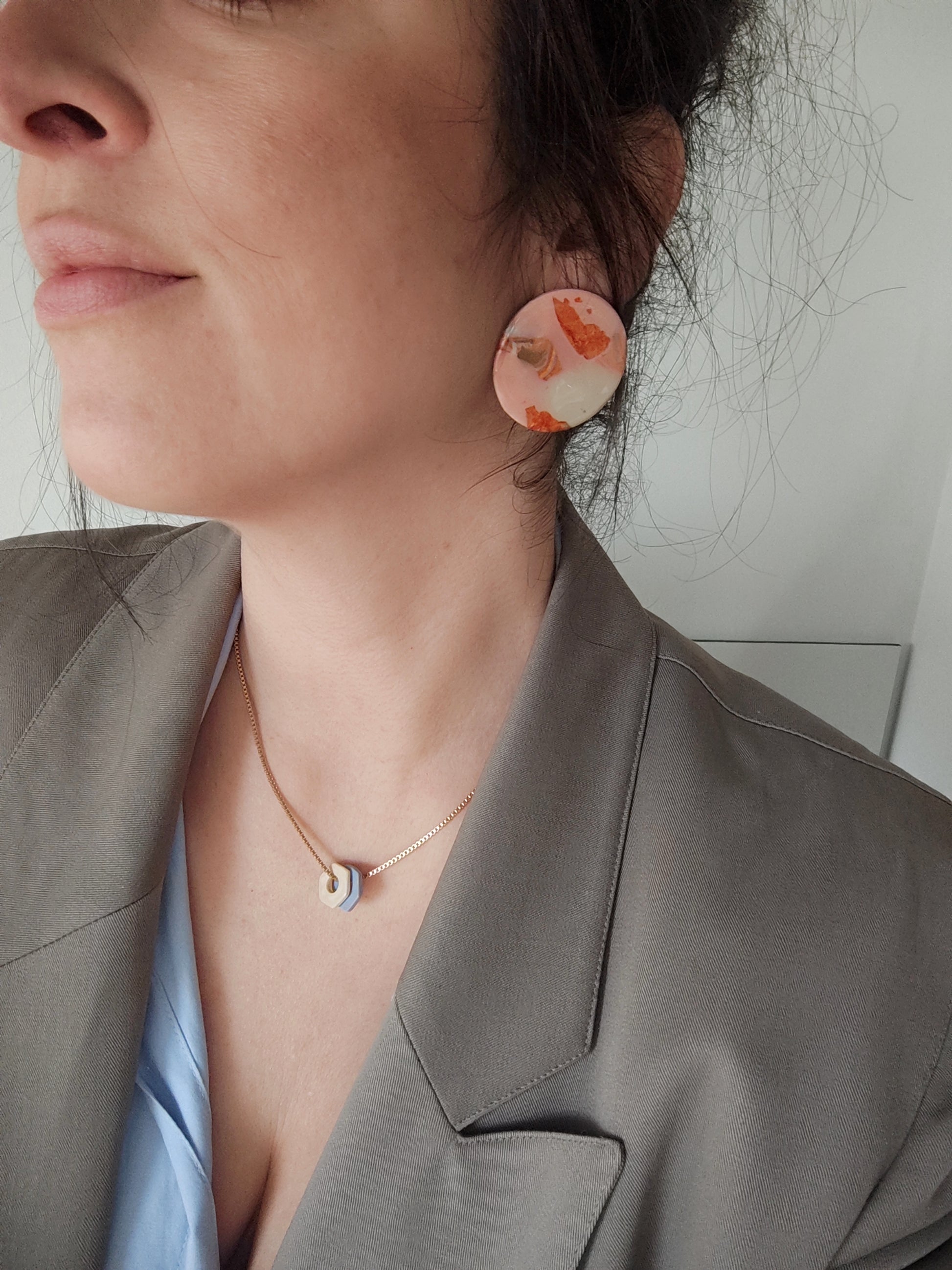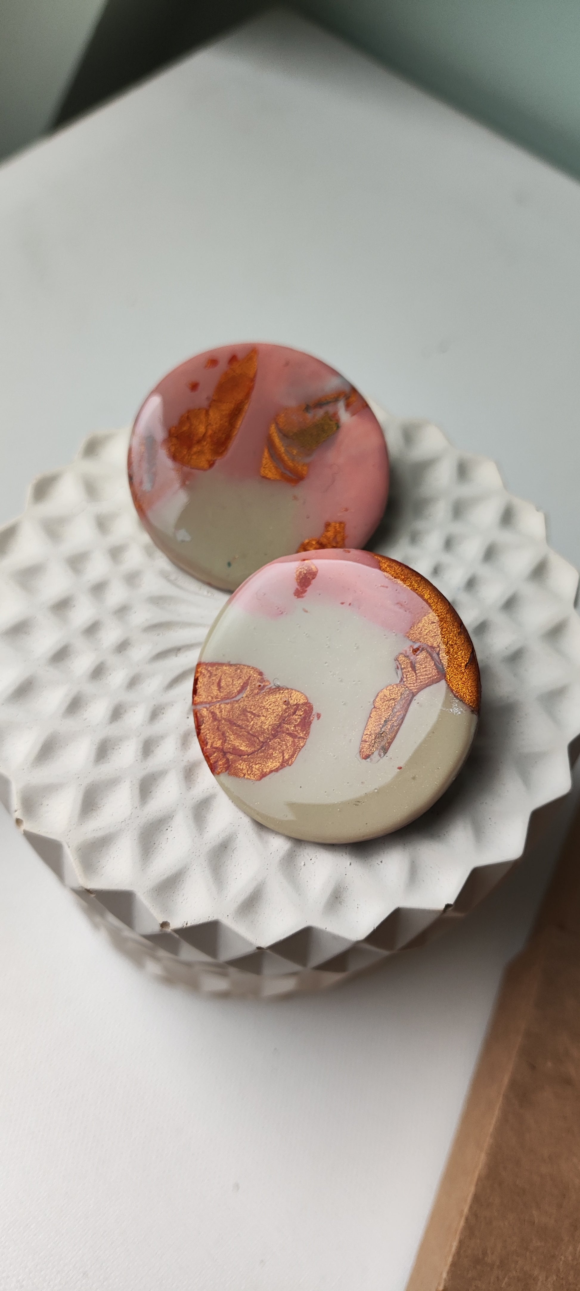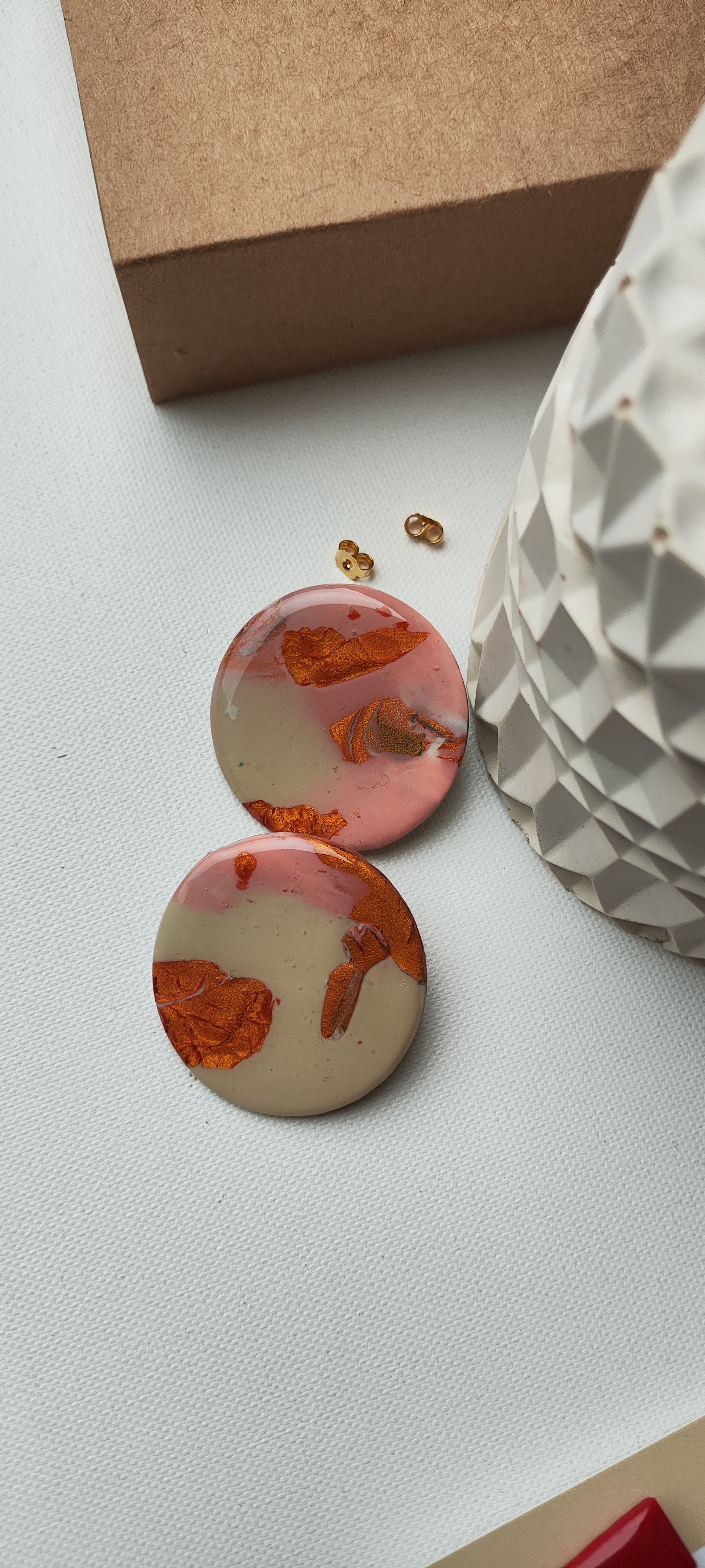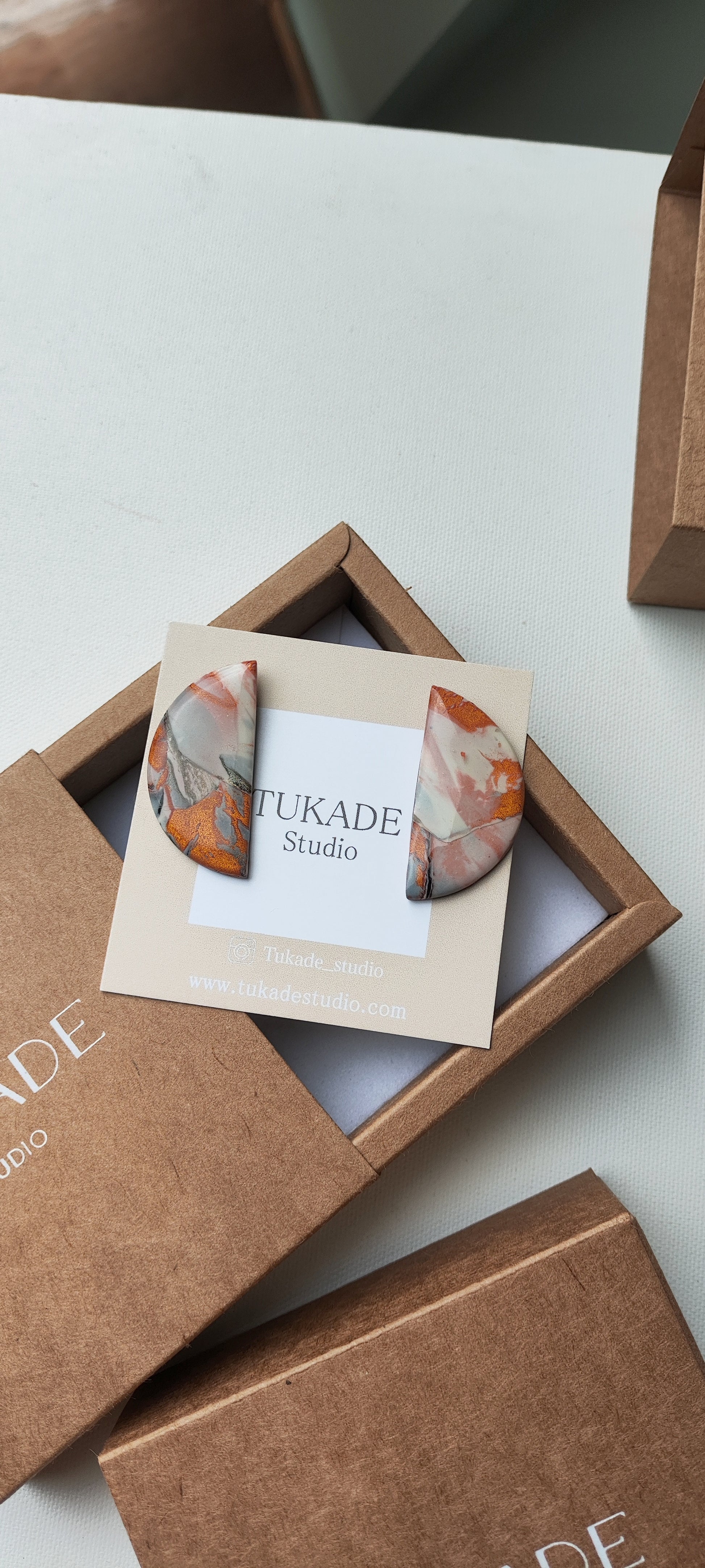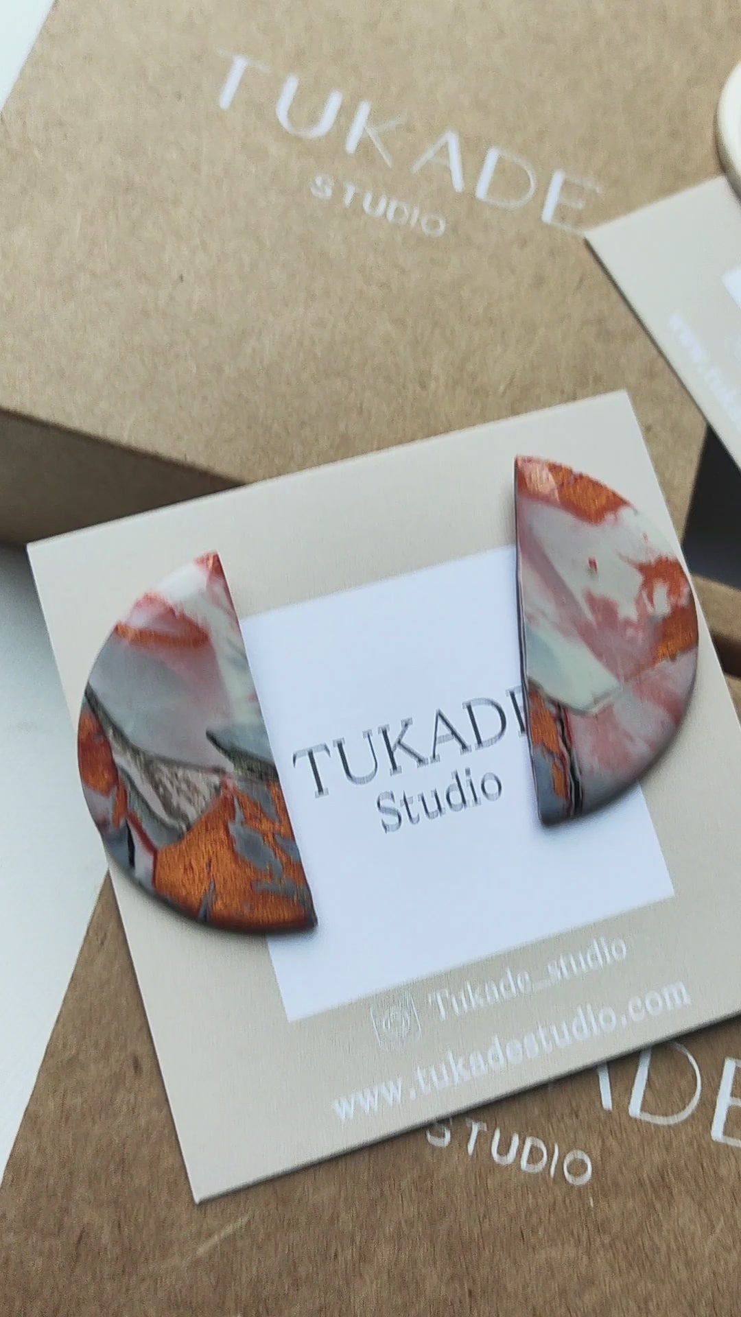 Cada par de pendientes está realizado a mano con mucho cuidado y cariño, con todo su proceso desde el modelado, corte, varios horneados, lijado y pulido.