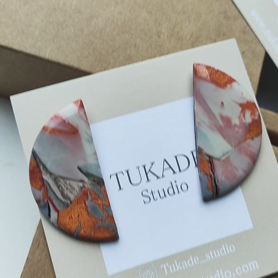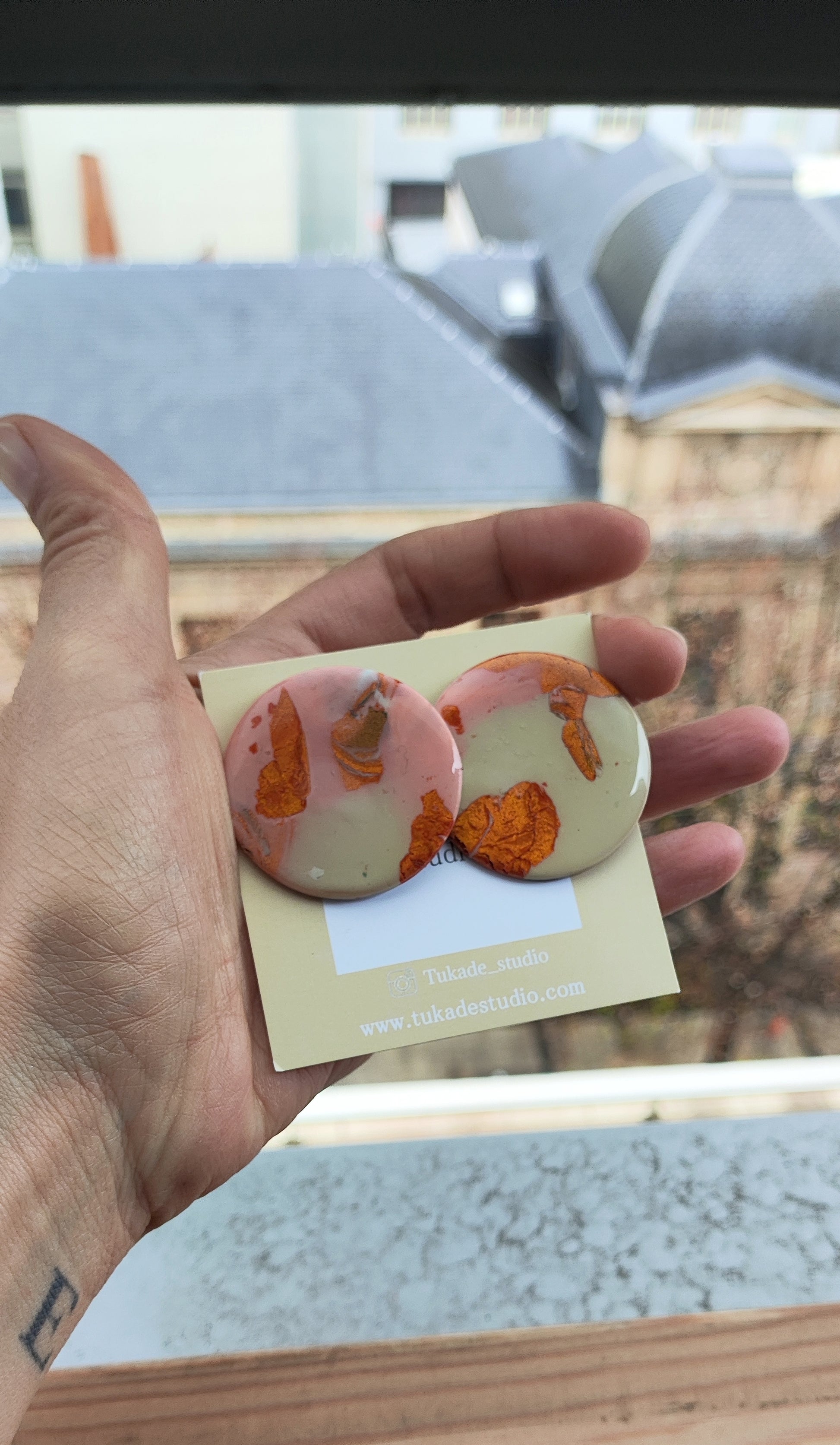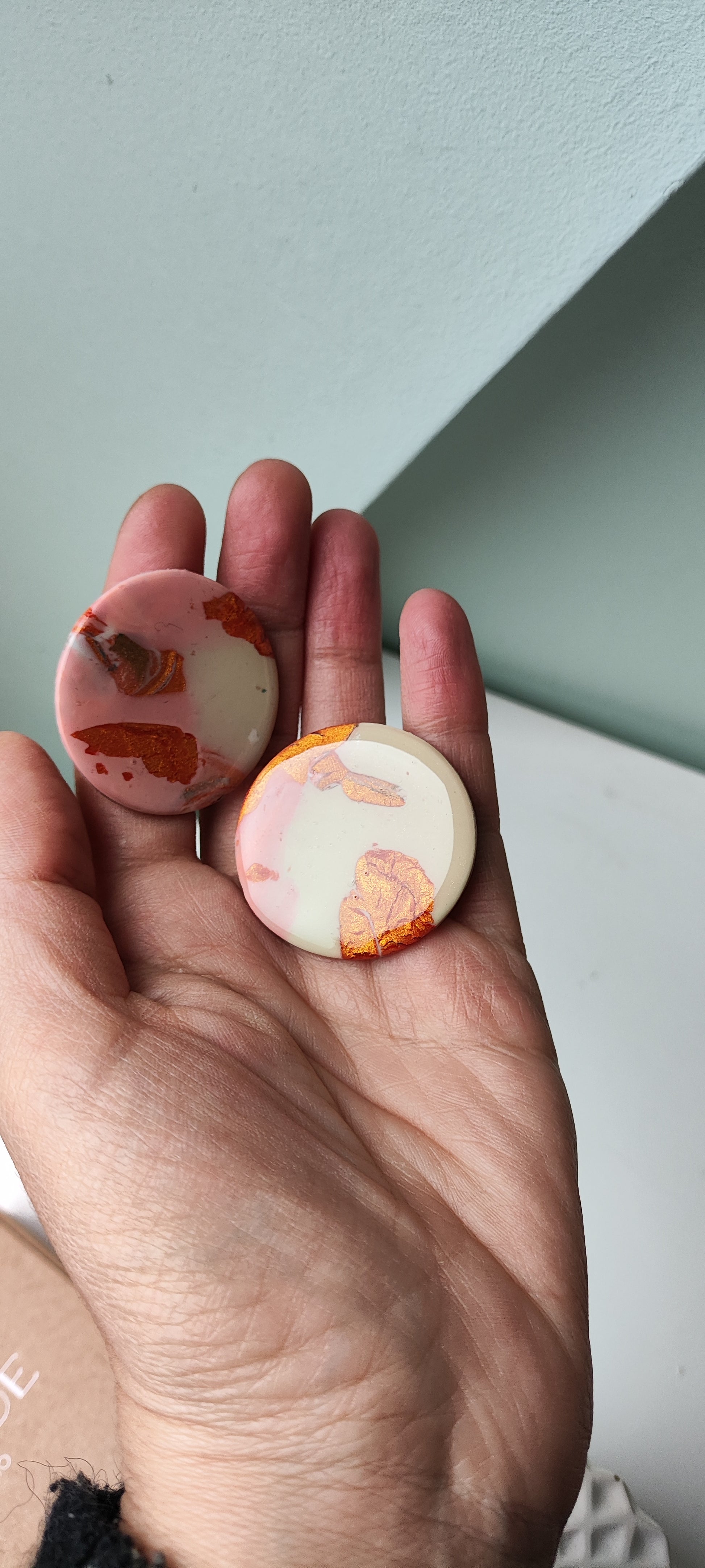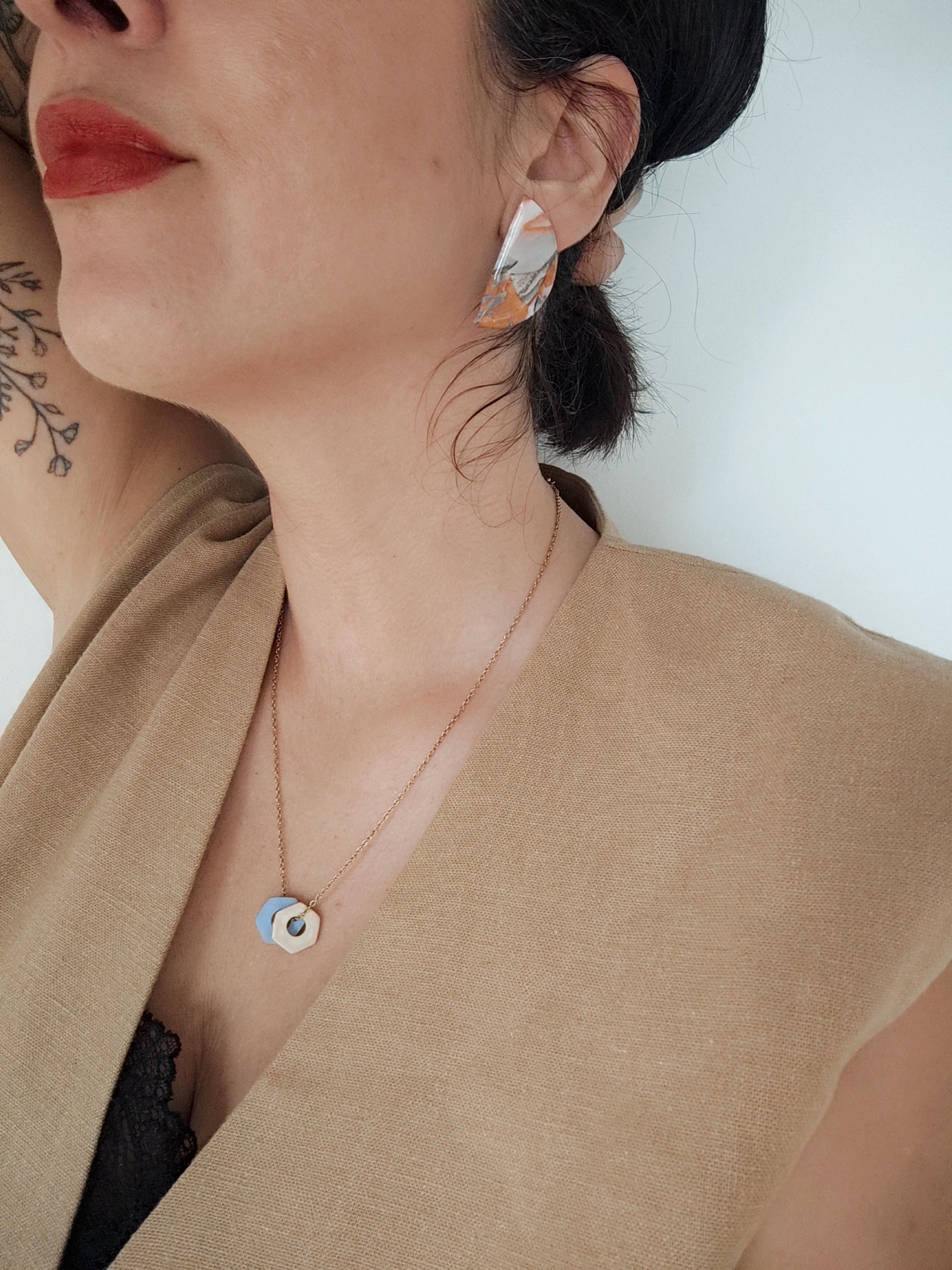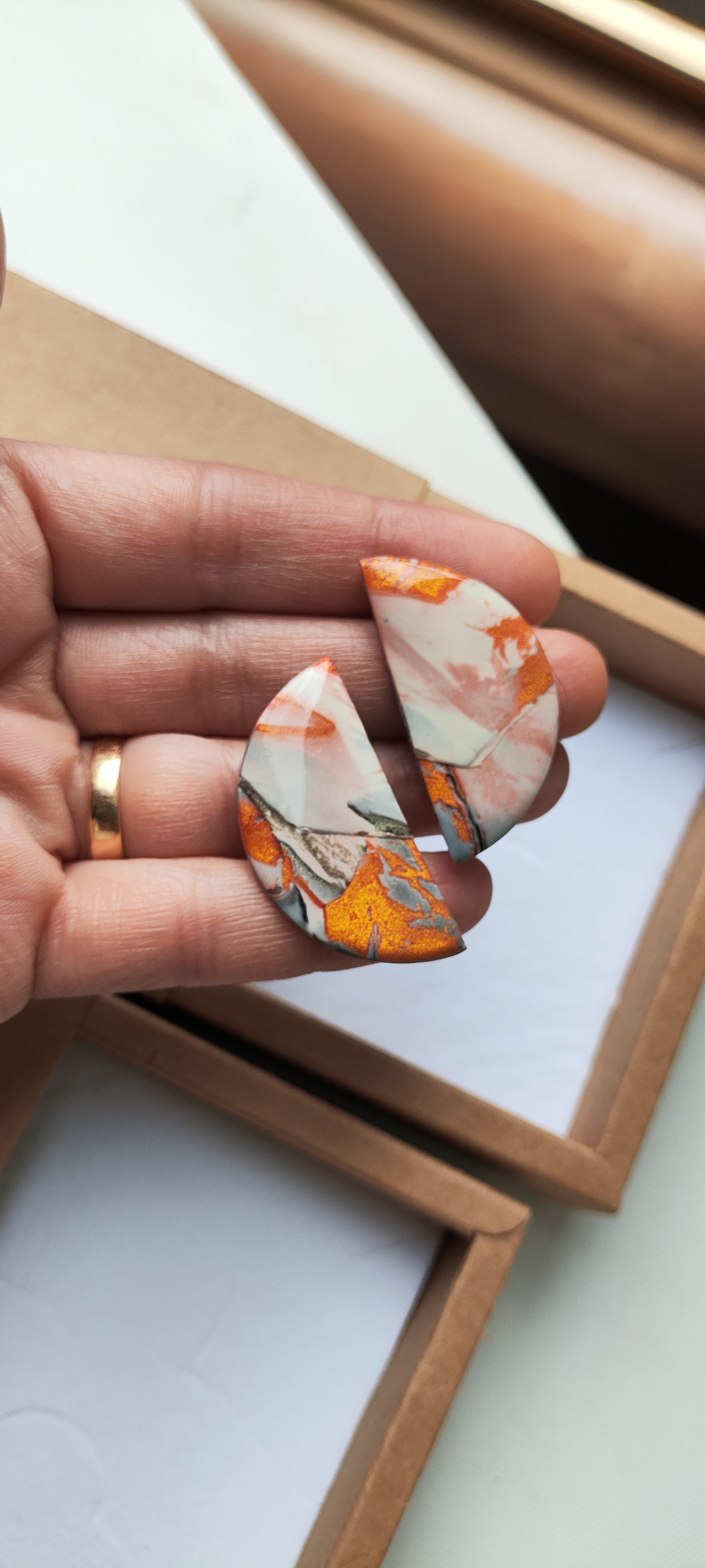 Cada par de pendientes está realizado a mano con mucho cuidado y cariño, con todo su proceso desde el modelado, corte, varios horneados, lijado y pulido.