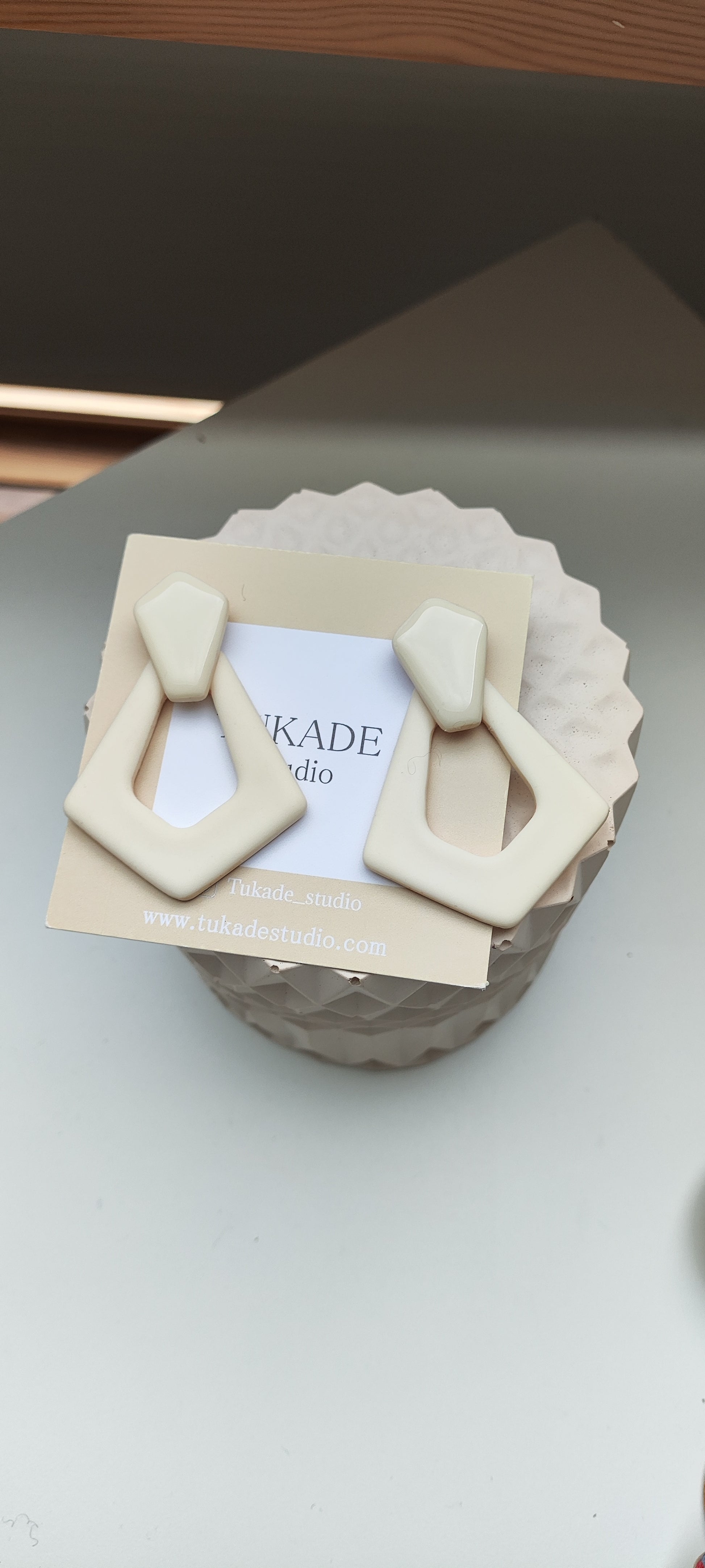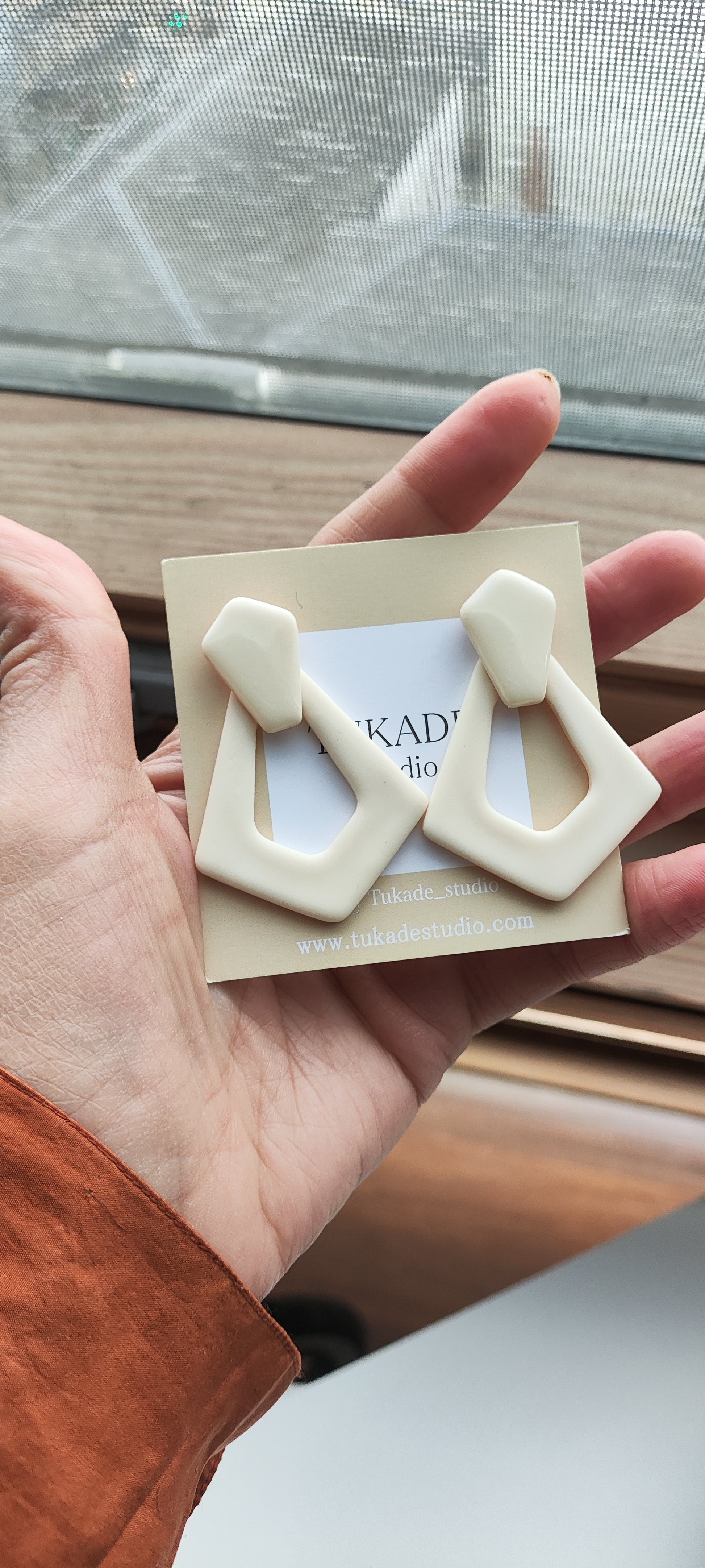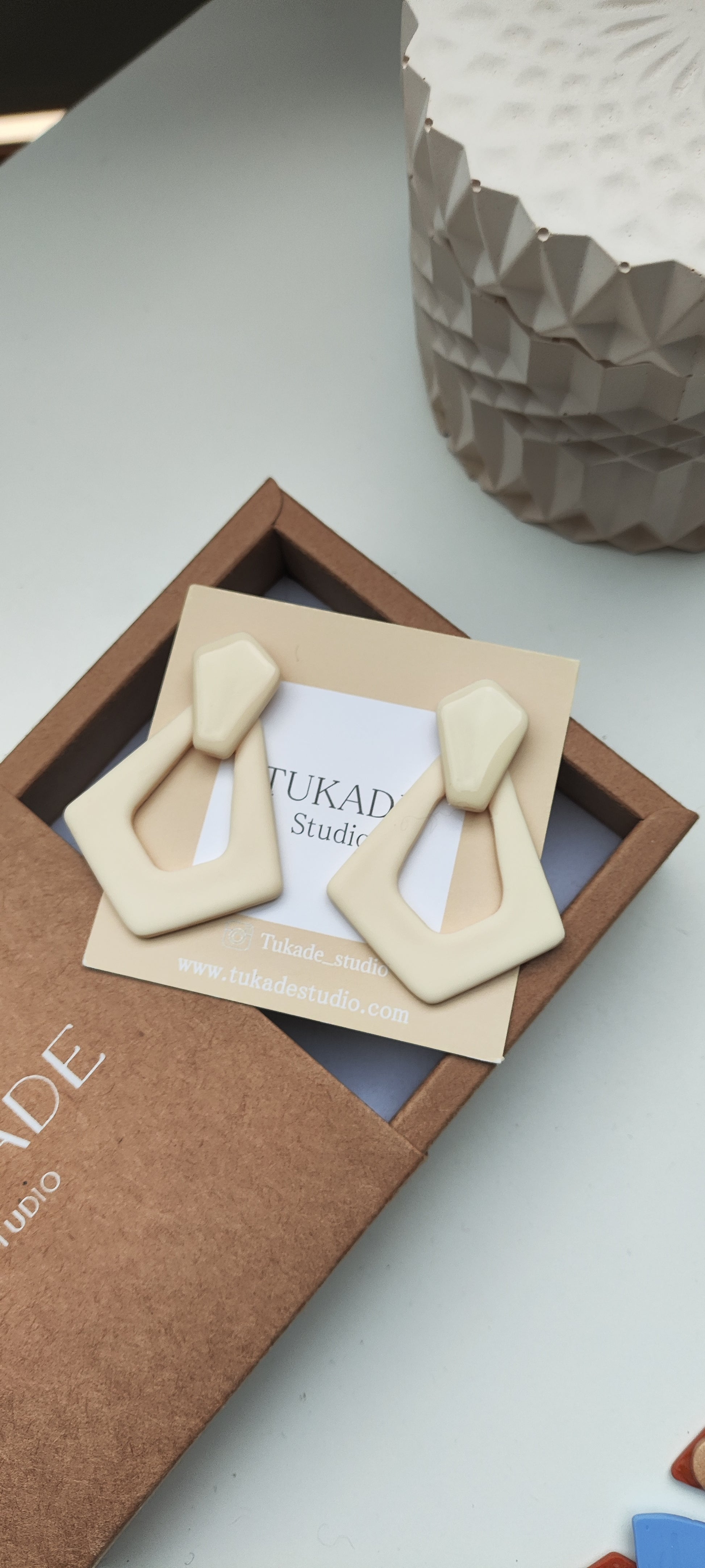 Cada par de pendientes está realizado a mano con mucho cuidado y cariño, con todo su proceso desde el modelado, corte, varios horneados, lijado y pulido.