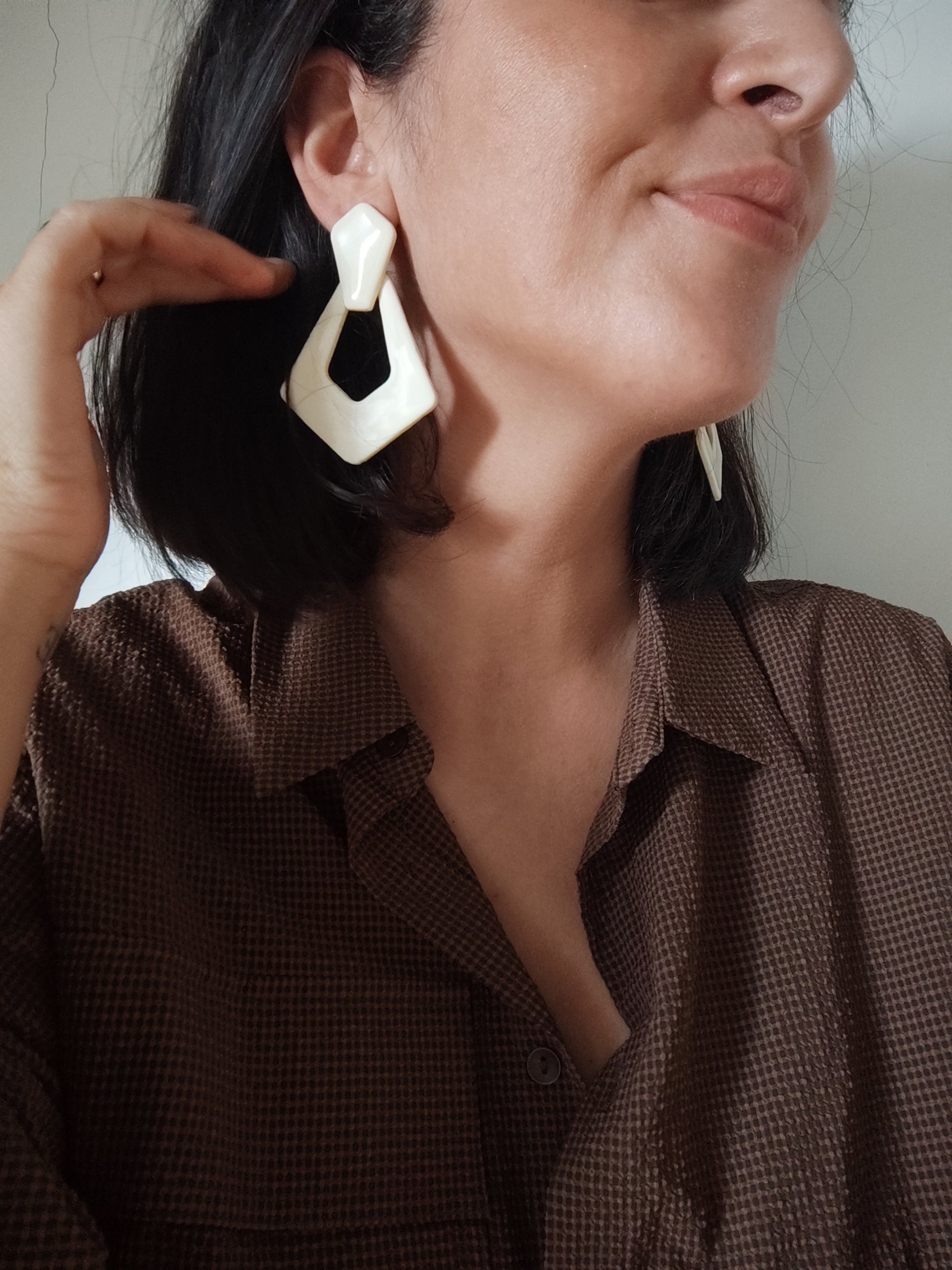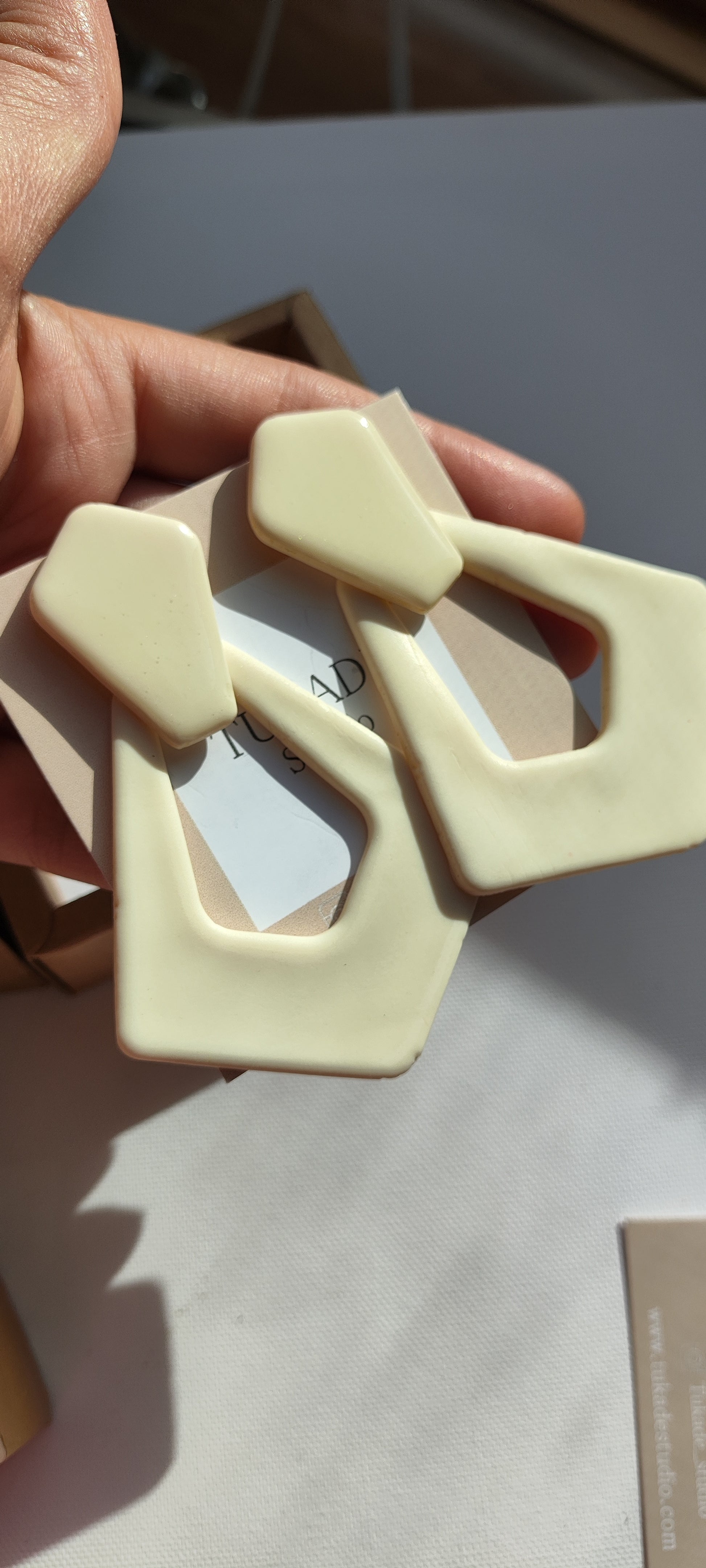 Pendientes OTILIA tamaño XXL, en forma de lágrima color crudo y la parte superior acabada en brillo.