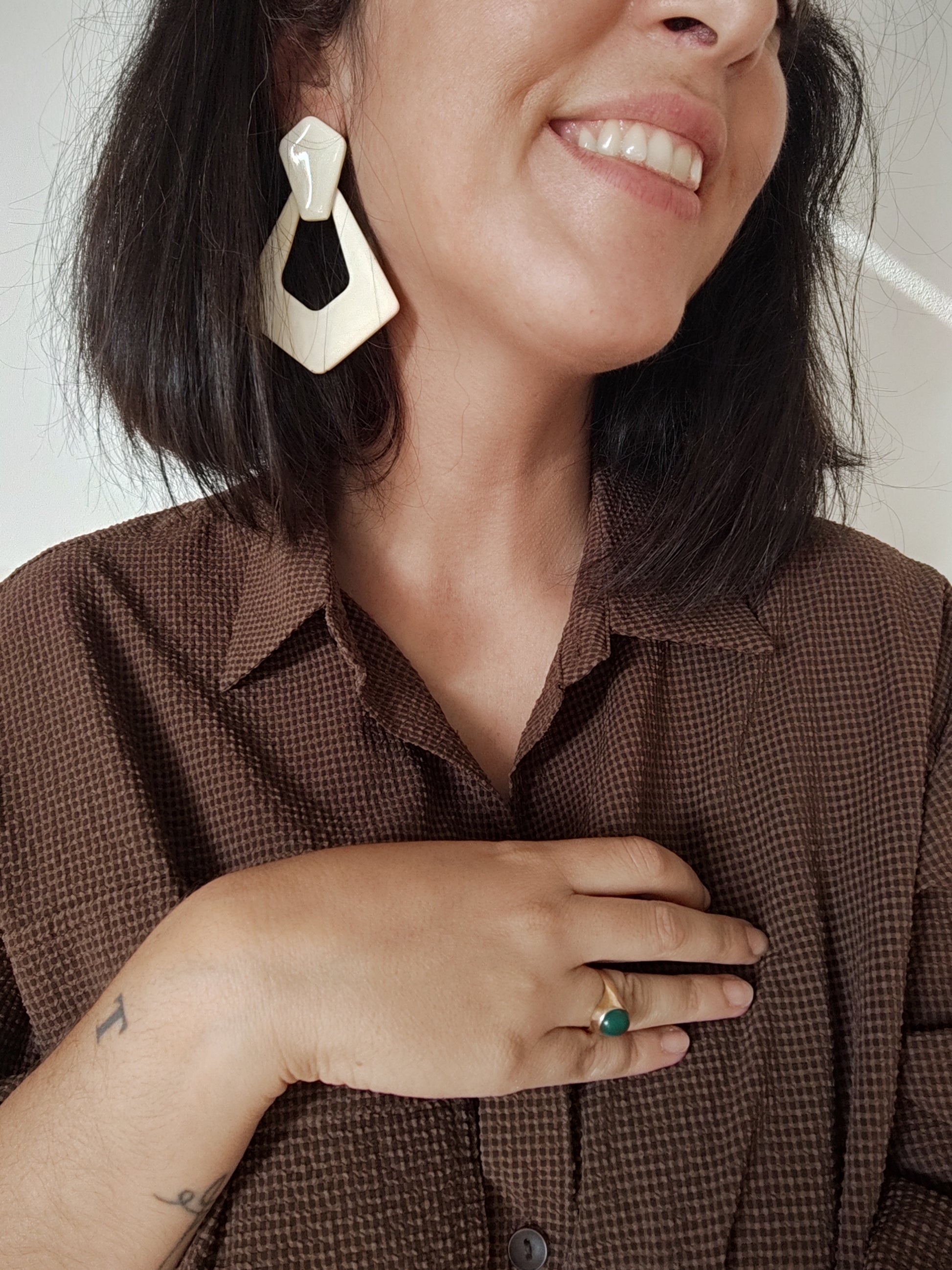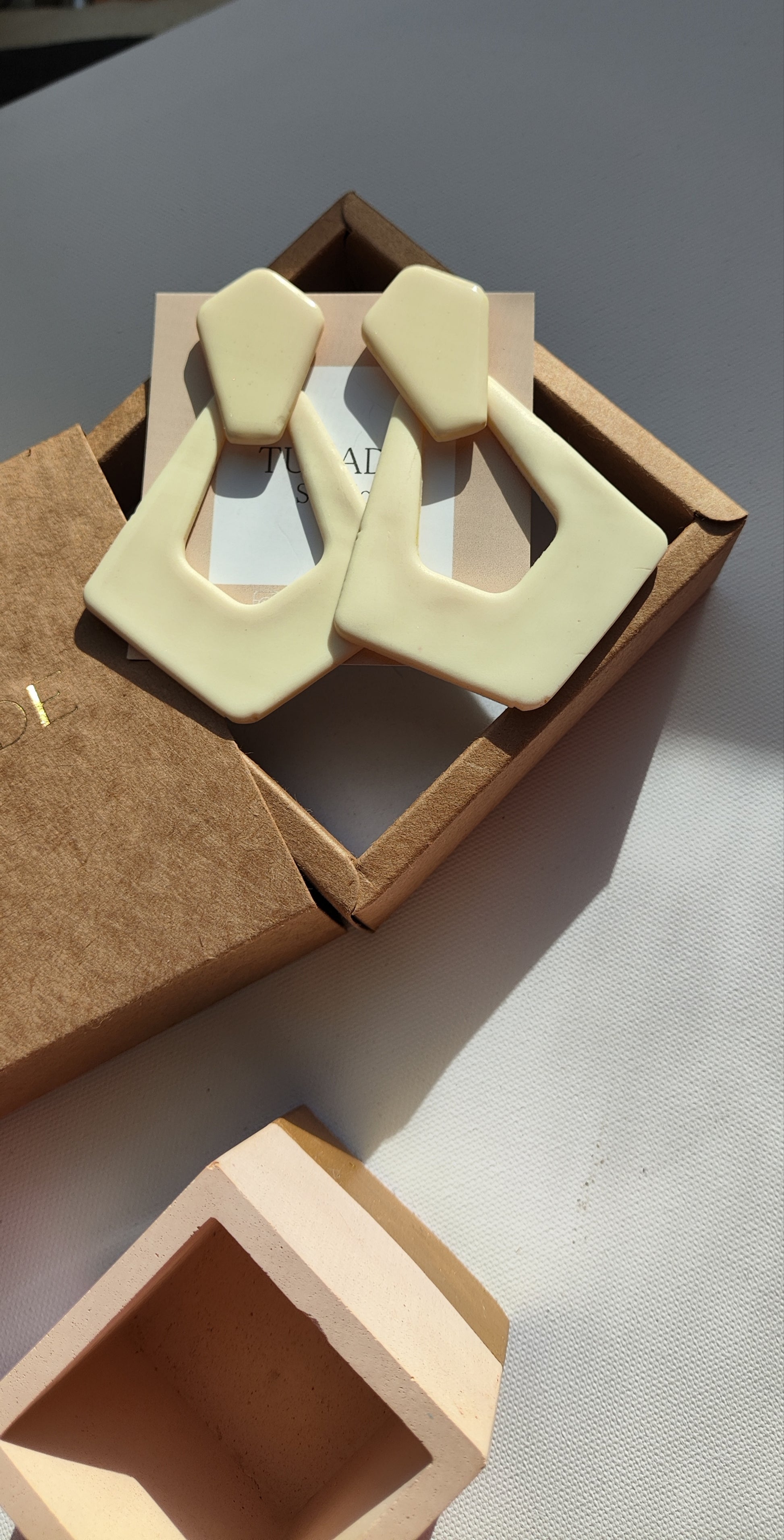 Cada par de pendientes está realizado a mano con mucho cuidado y cariño, con todo su proceso desde el modelado, corte, varios horneados, lijado y pulido.