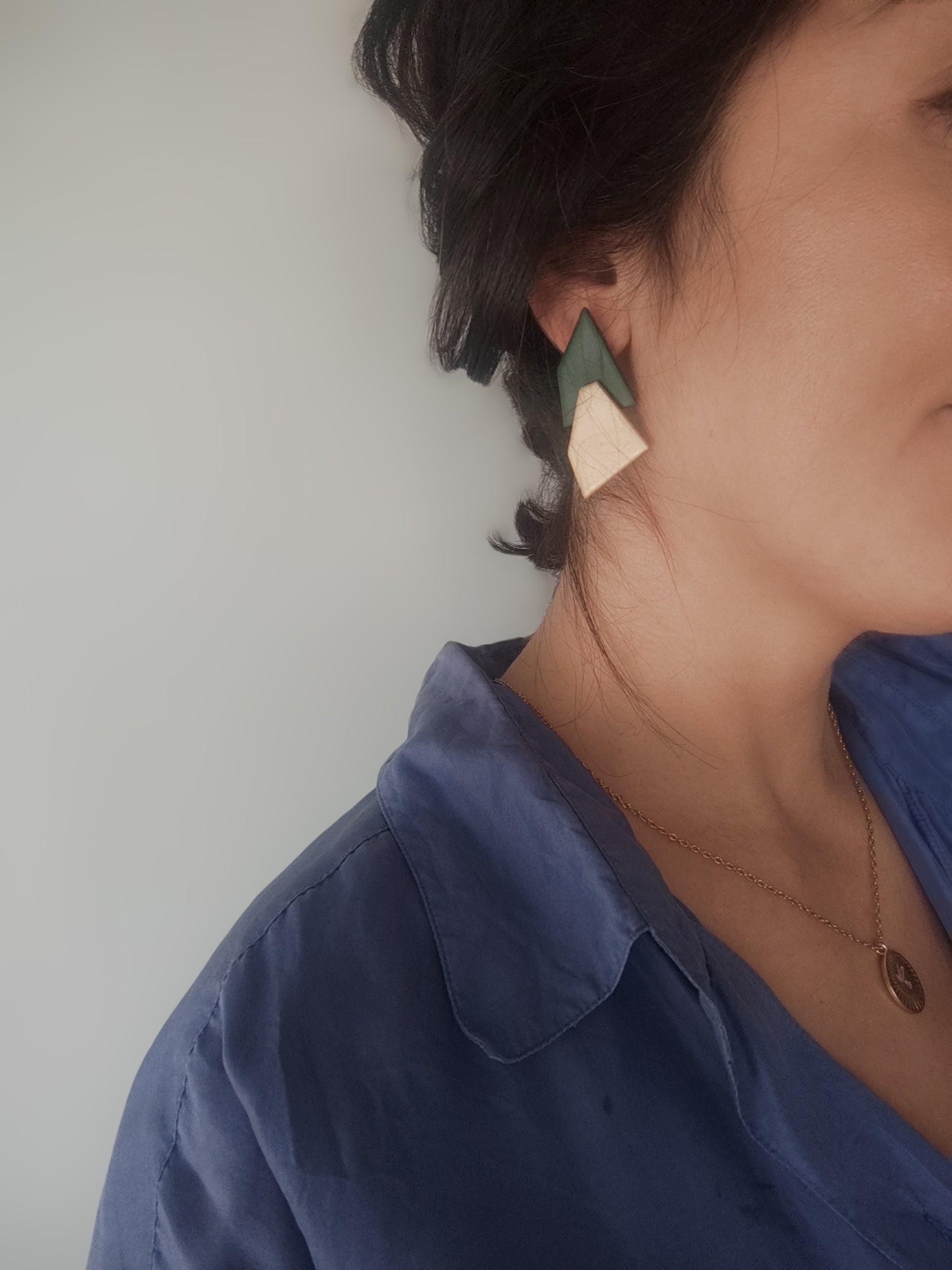 Pendientes minimalistas PACA en forma irregular bicolor.