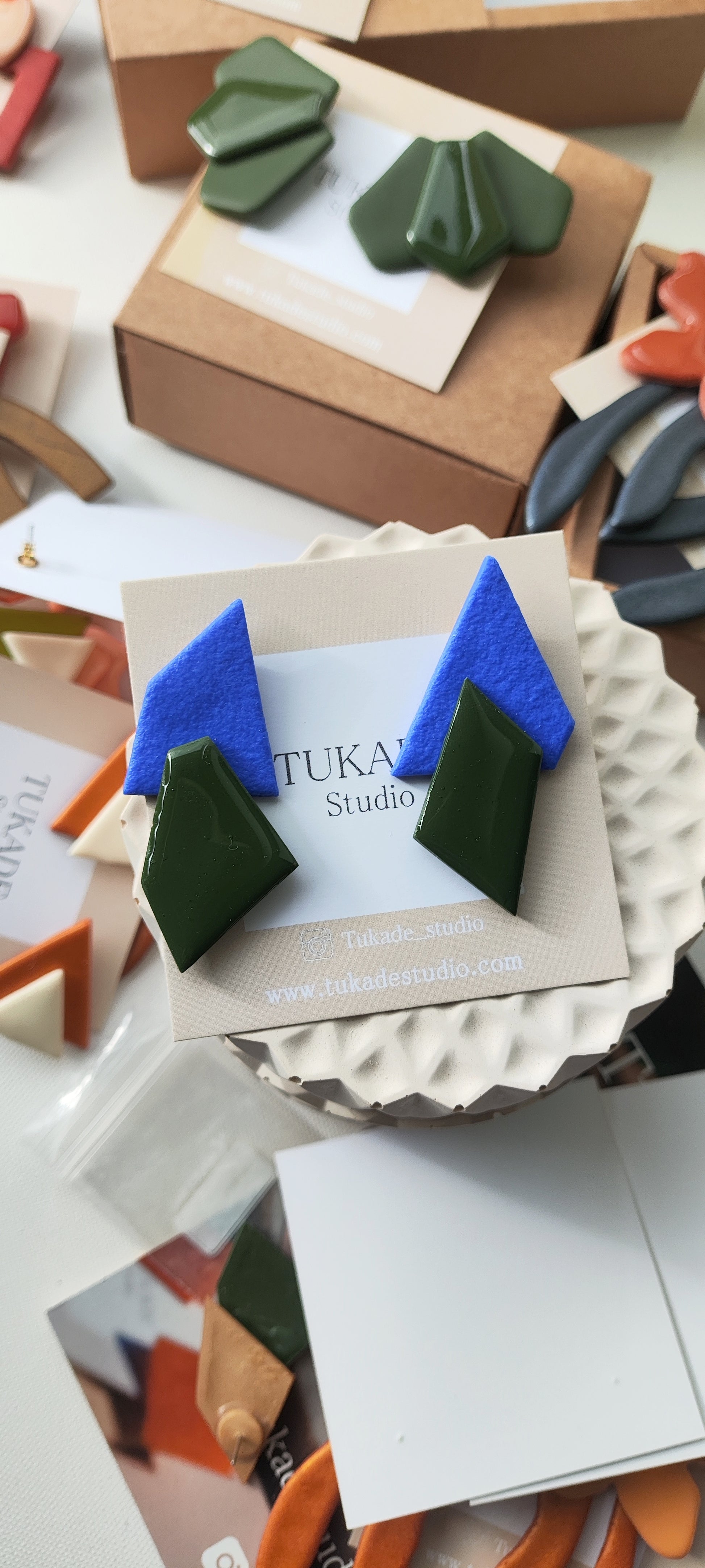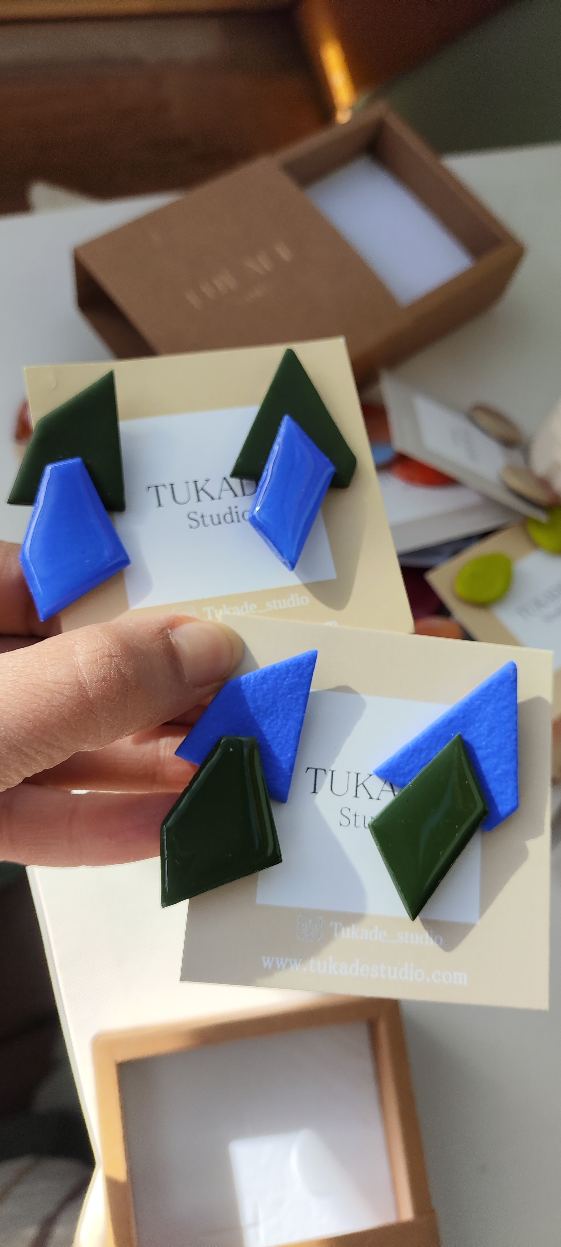Cada par de pendientes está realizado a mano con mucho cuidado y cariño, con todo su proceso desde el modelado, corte, varios horneados, lijado y pulido.