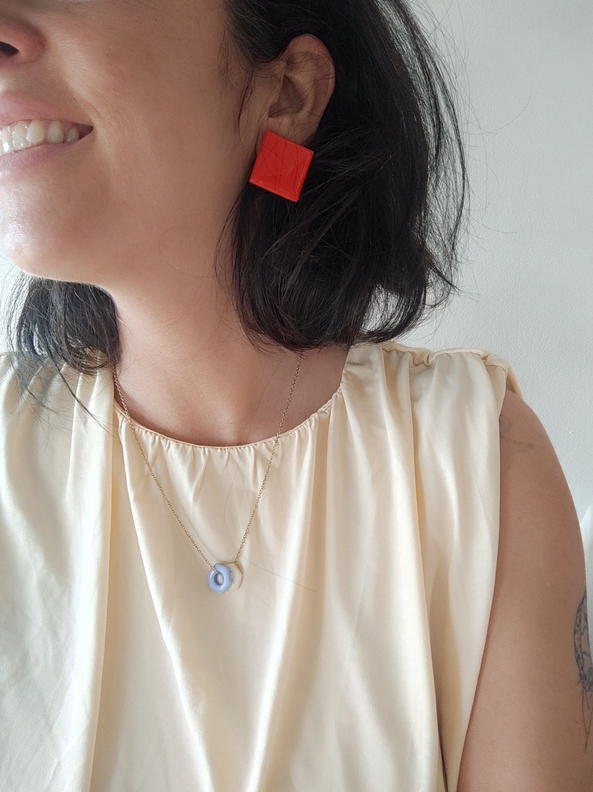 Cada par de pendientes está realizado a mano con mucho cuidado y cariño, con todo su proceso desde el modelado, corte, varios horneados, lijado y pulido.