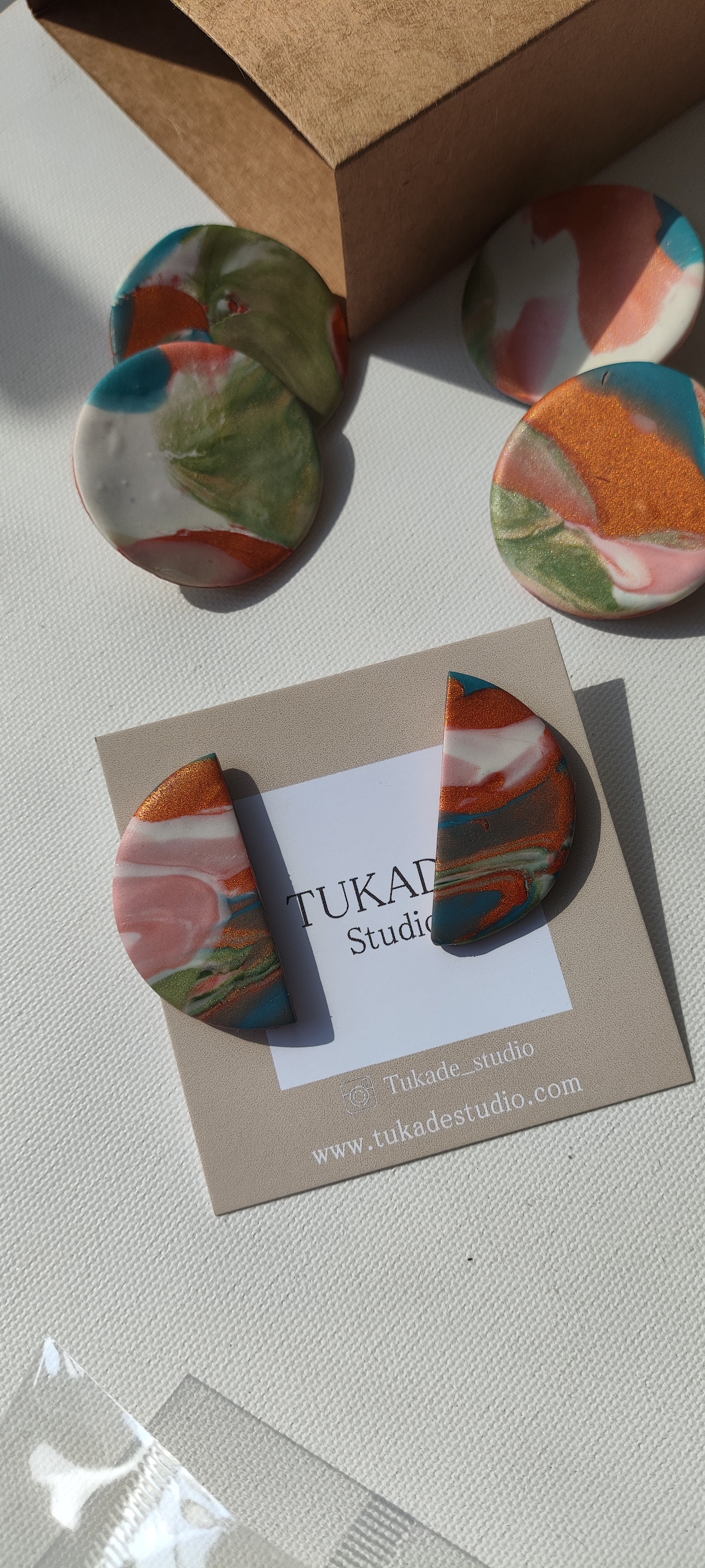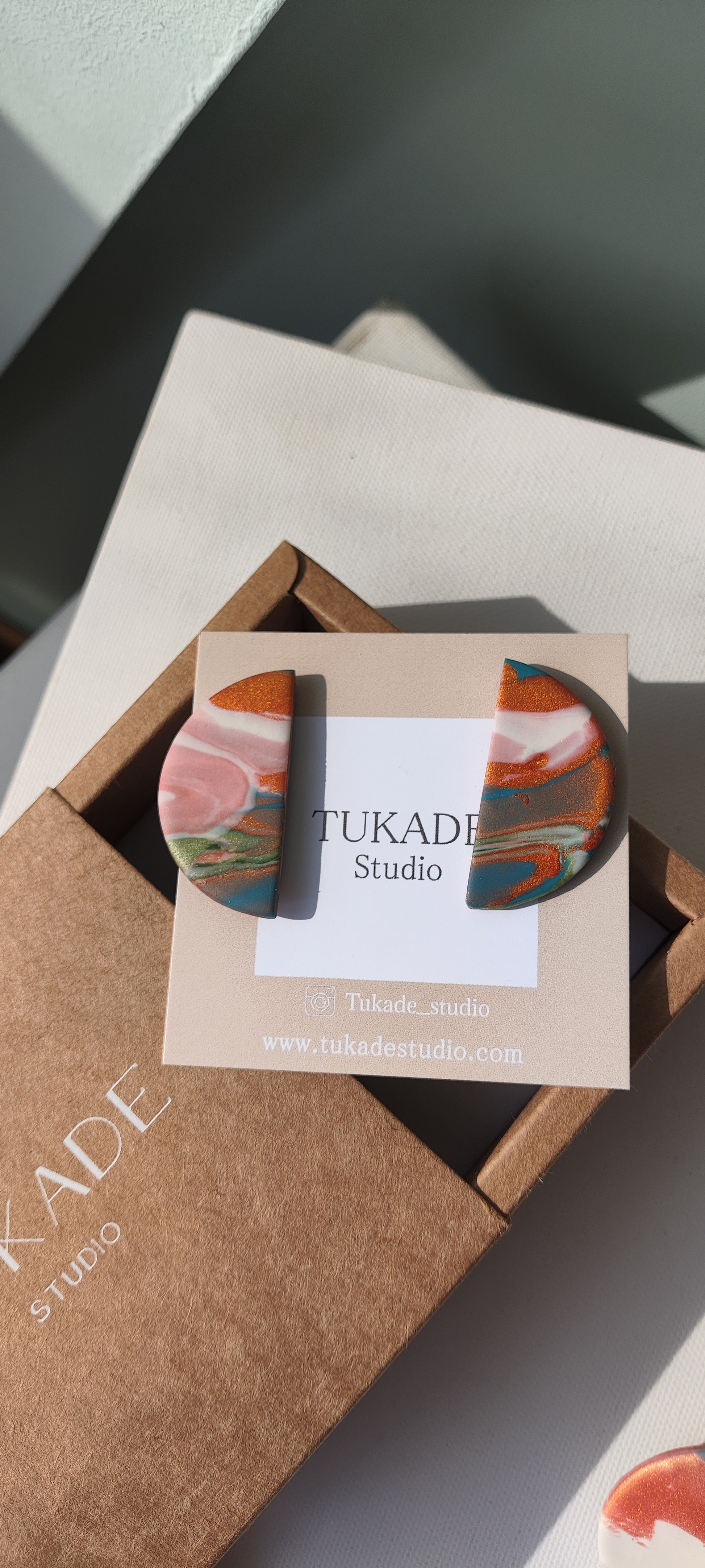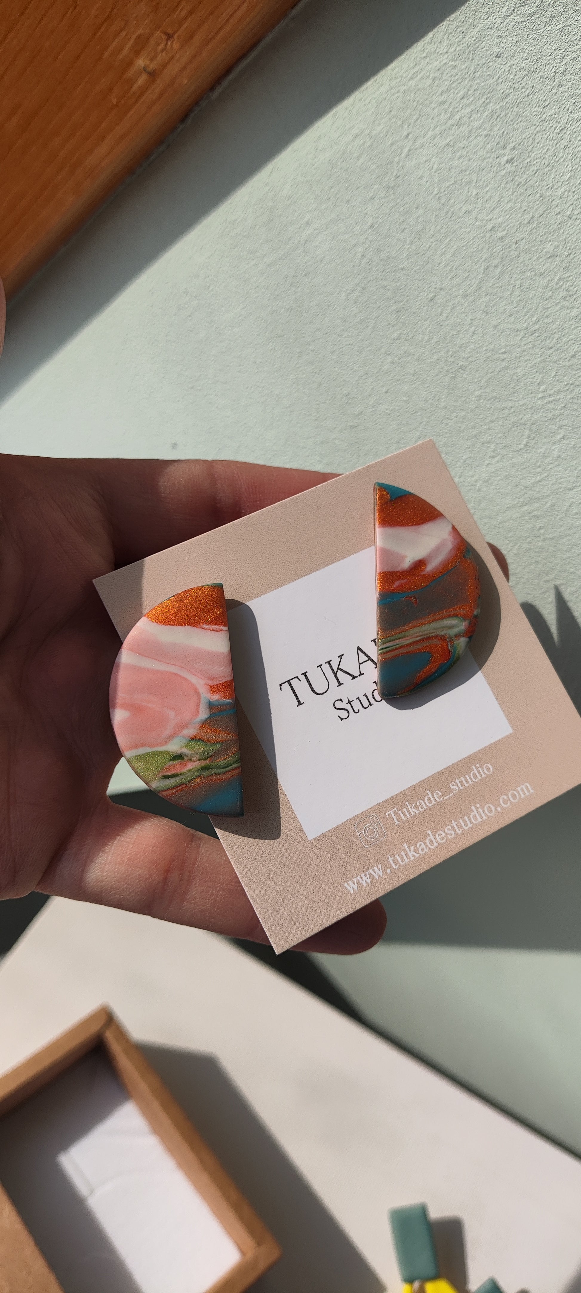 Pendientes minimalistas RENATA en media luna con mezcla de colores. Par único e irrepetible.