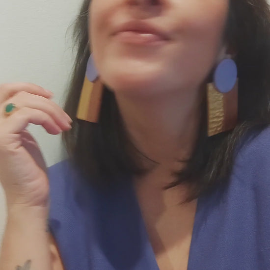 Impresionantes pendientes RUPERTA, en forma circular y dos rectángulos diseñados para la boda de una de mis mejores amigas. Es un par espectacular, muy estiloso perfecto para ocasiones especiales. Este par solamente lleva tuercas de silicona para que sujeten mejor por su gran tamaño.
