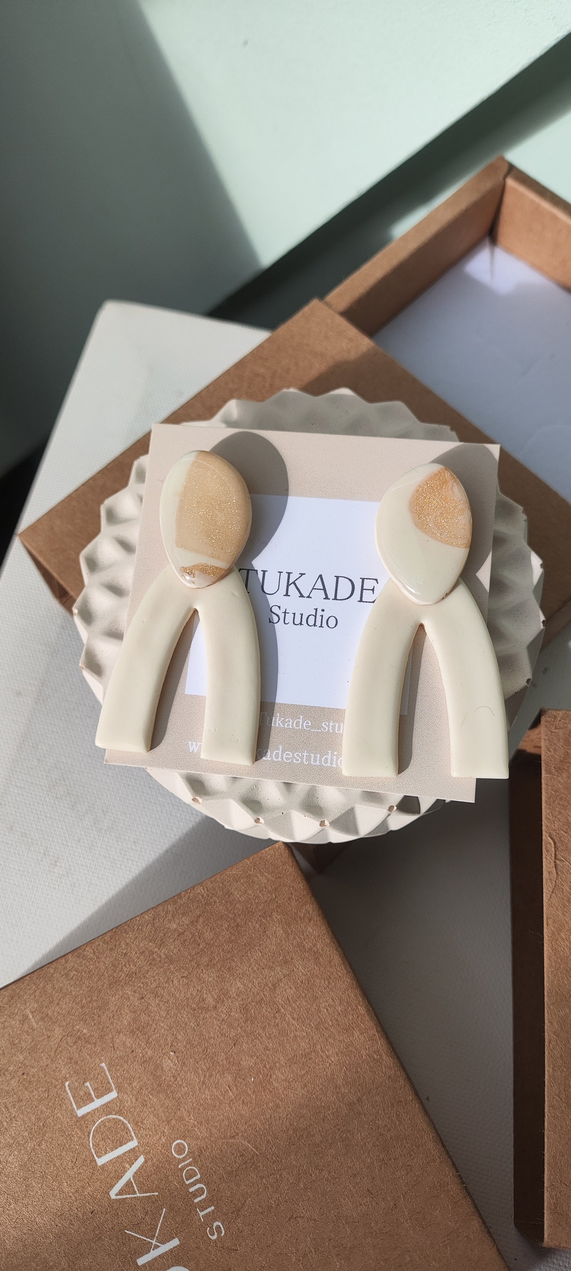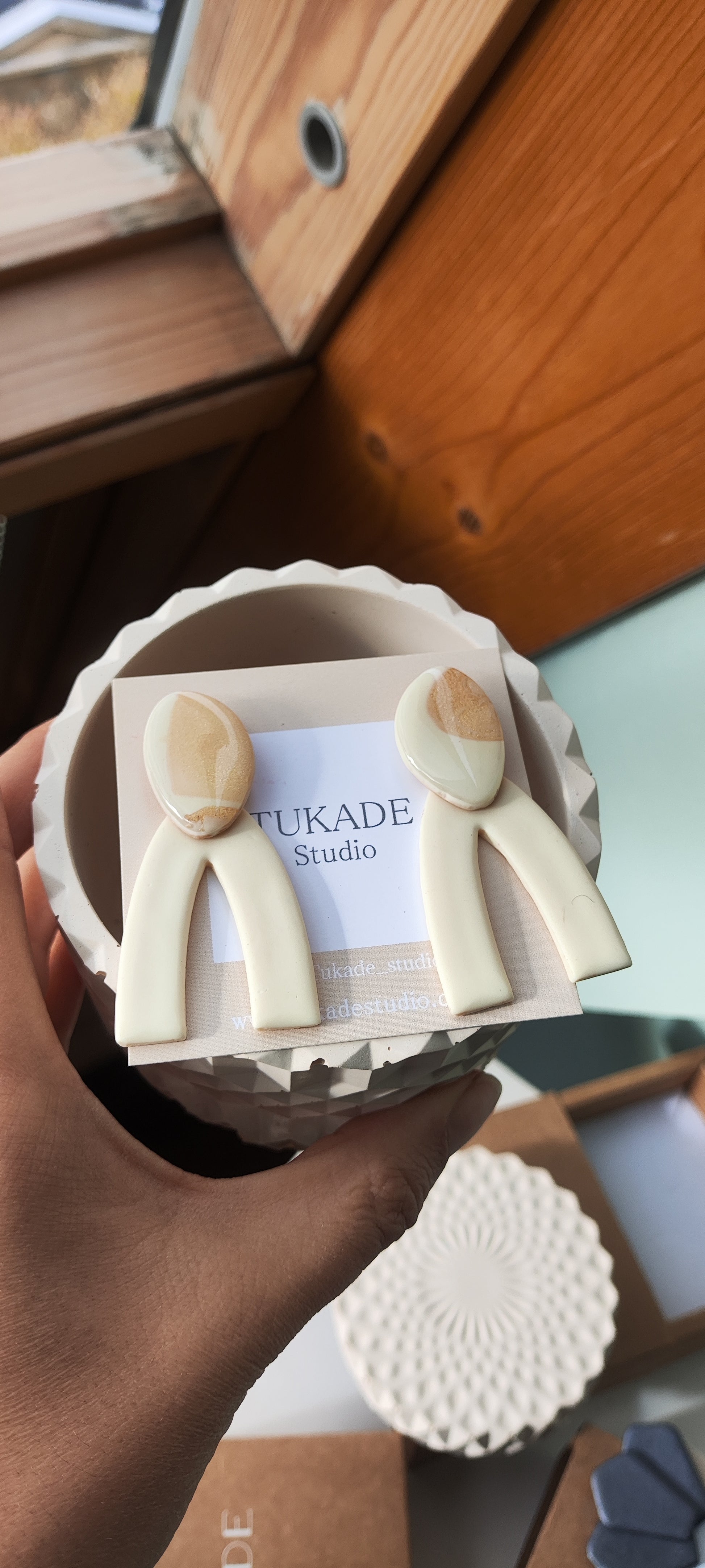 Cada par de pendientes está realizado a mano con mucho cuidado y cariño, con todo su proceso desde el modelado, corte, varios horneados, lijado y pulido.
