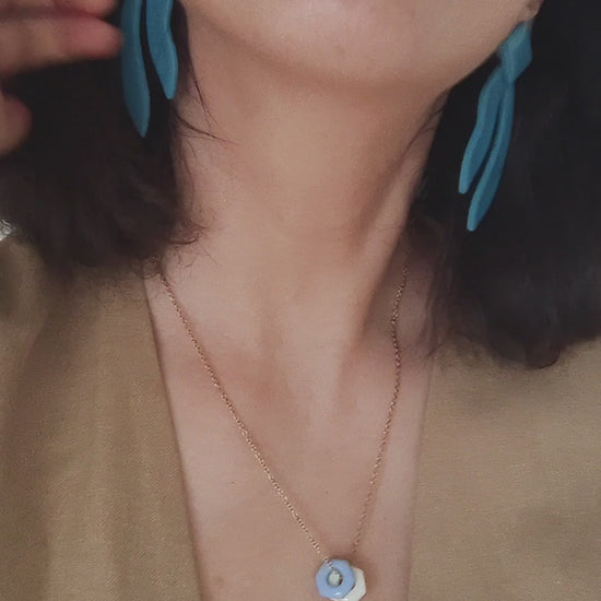 Pendientes TIMOTEA maxi en forma alargada irregular. Disponible en cuatro versiones de color.