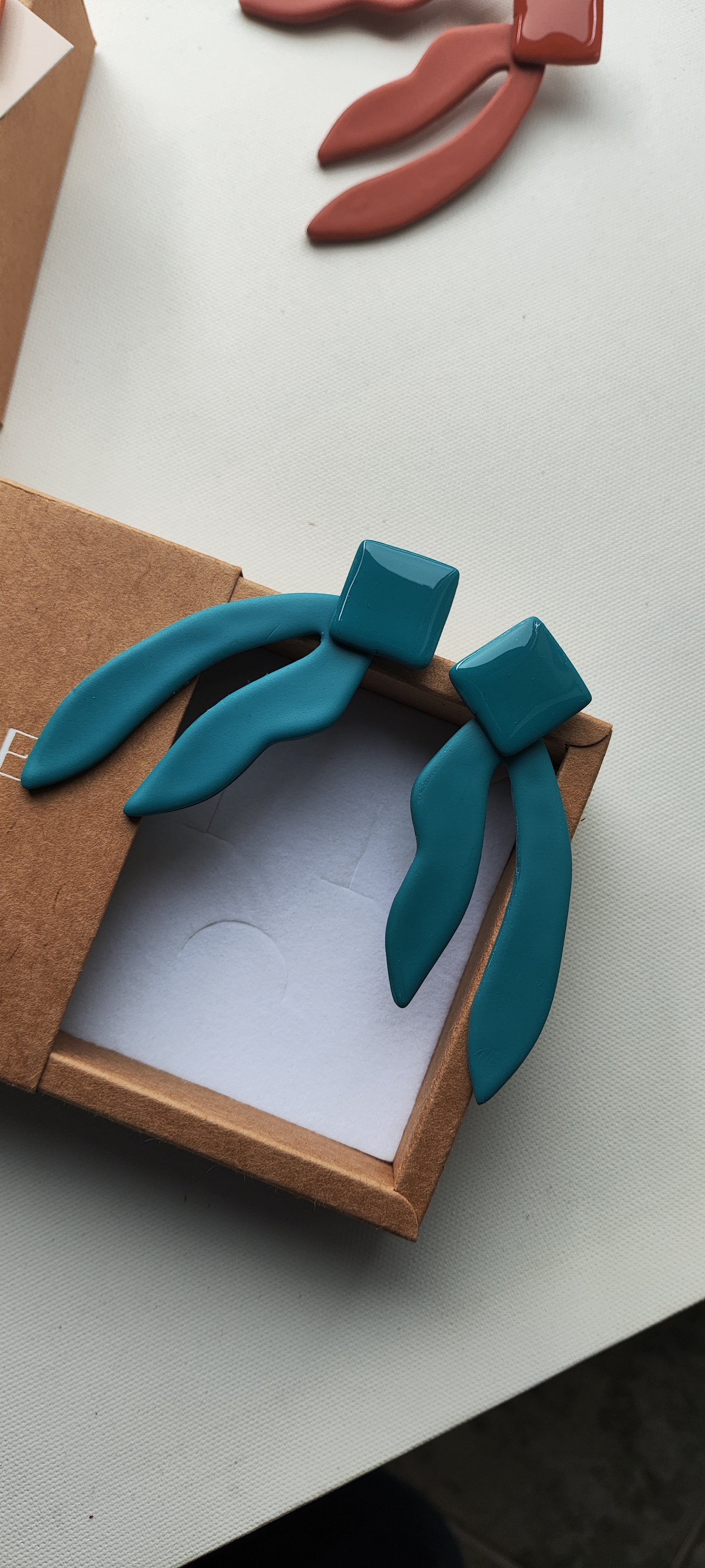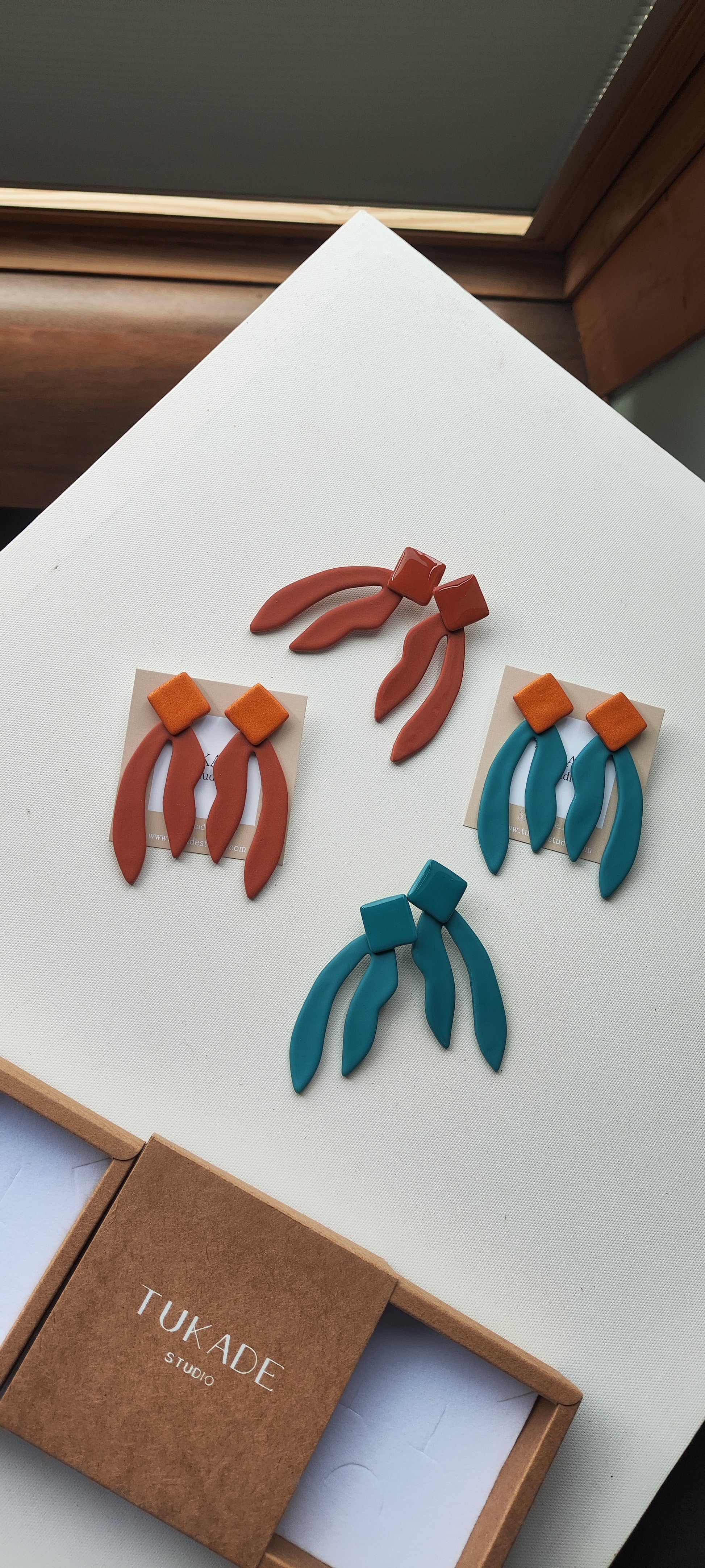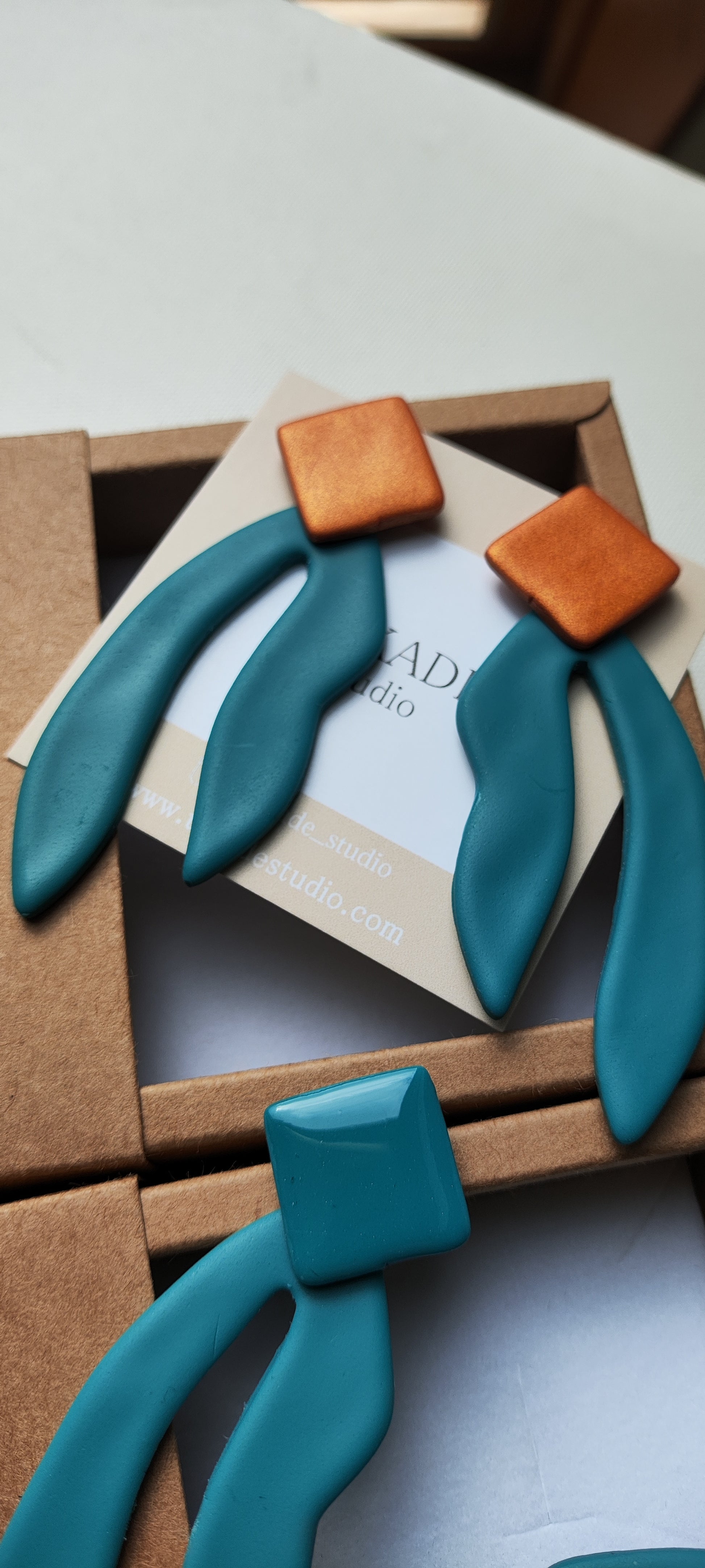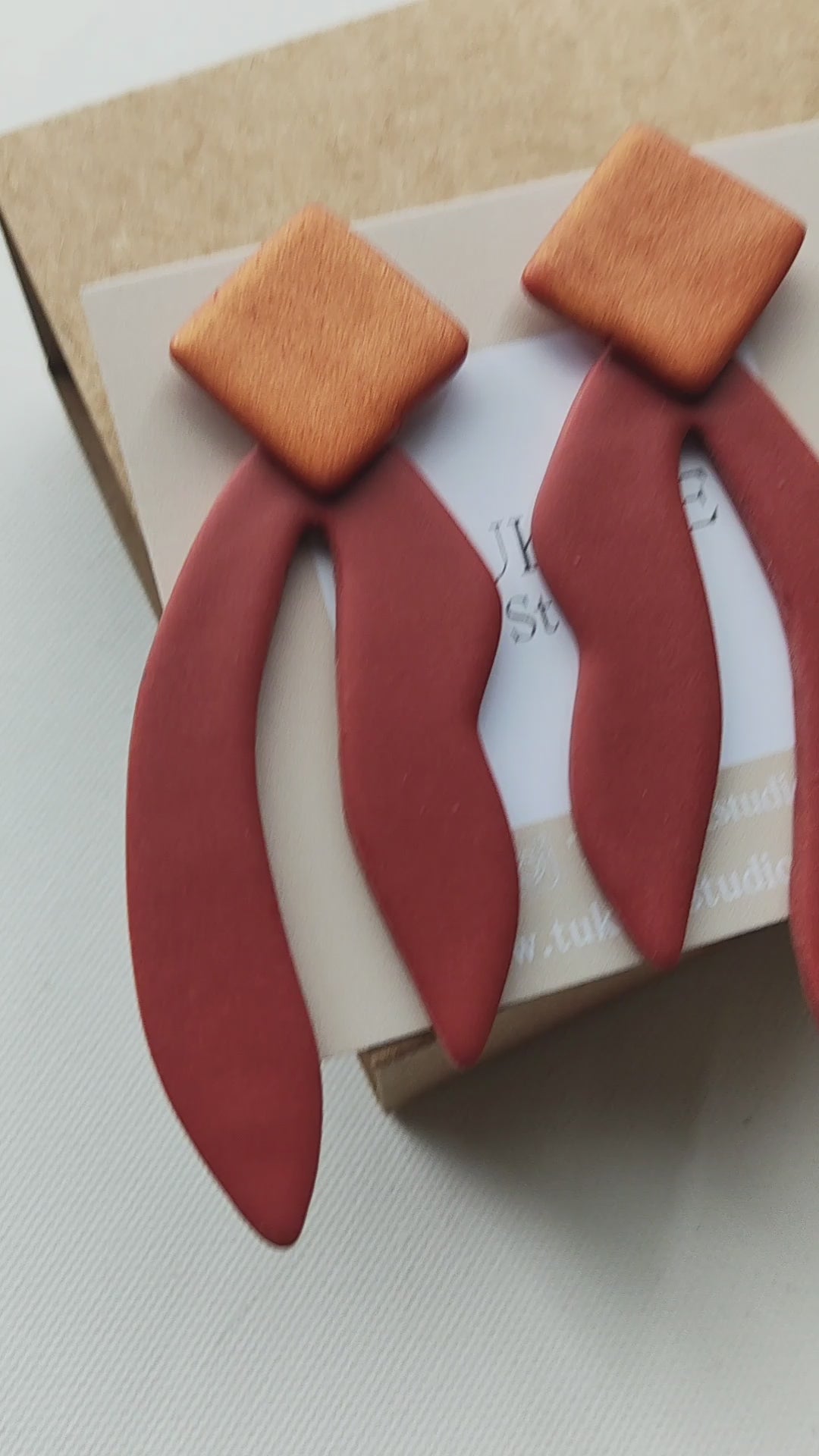 Cada par de pendientes está realizado a mano con mucho cuidado y cariño, con todo su proceso desde el modelado, corte, varios horneados, lijado y pulido.