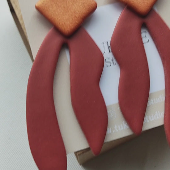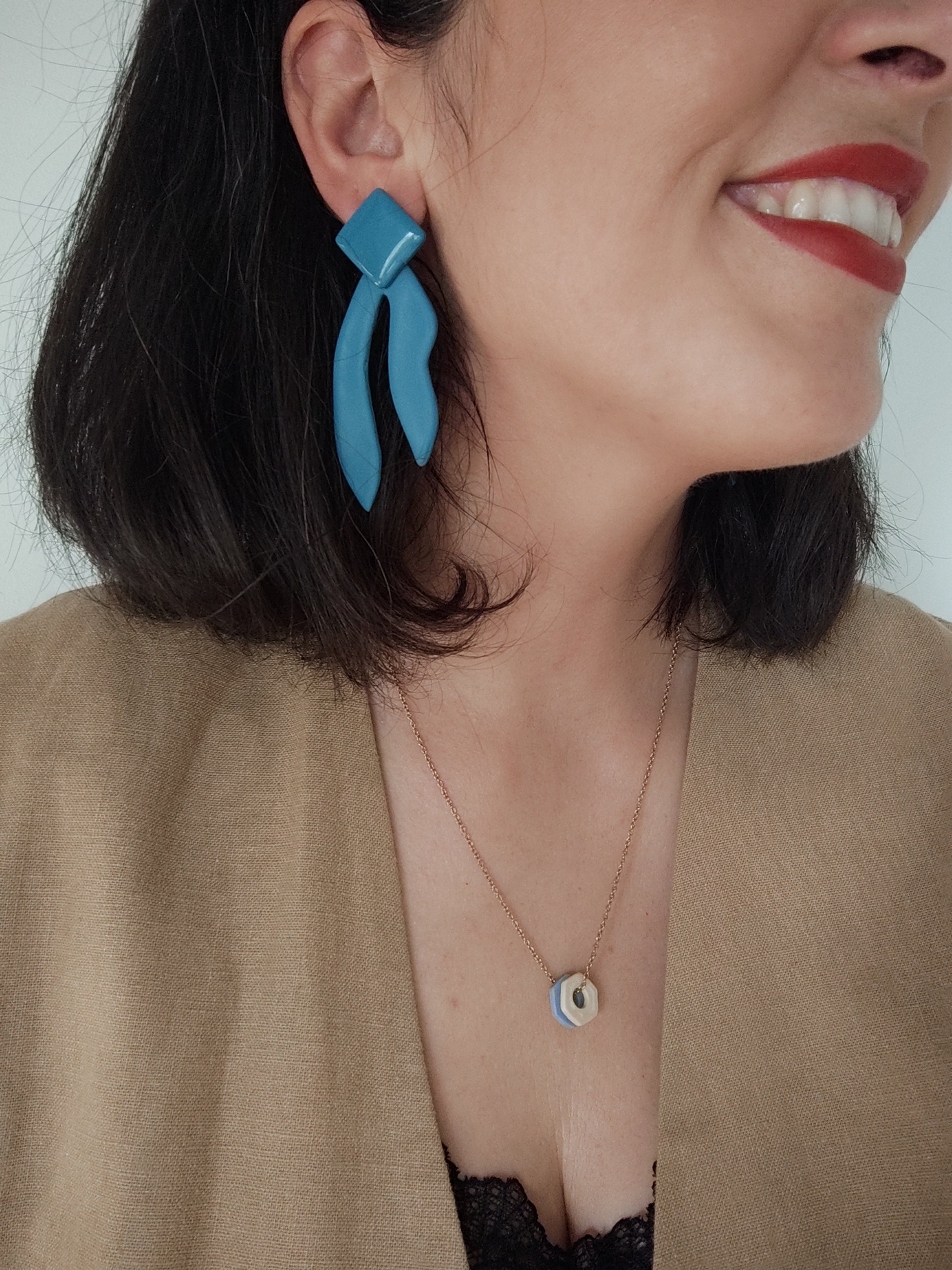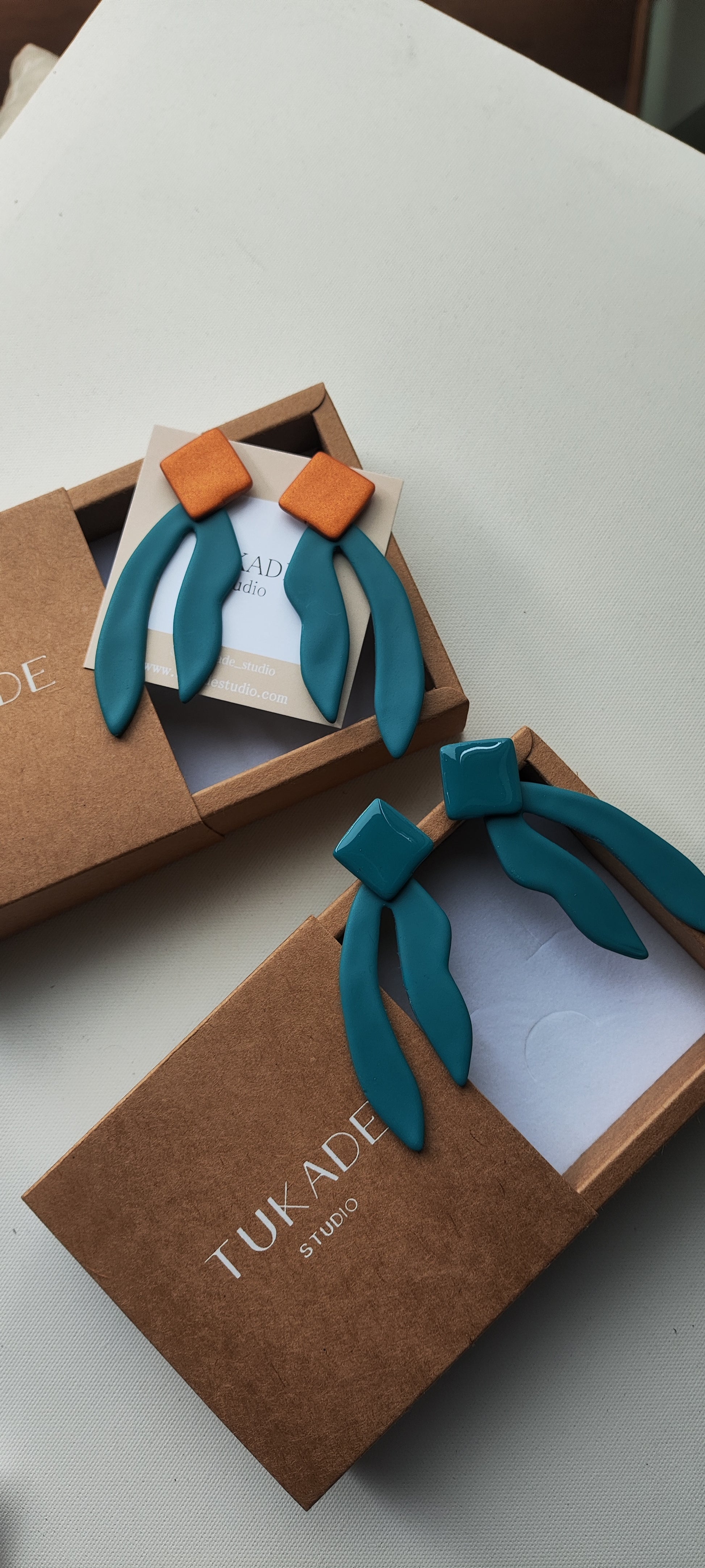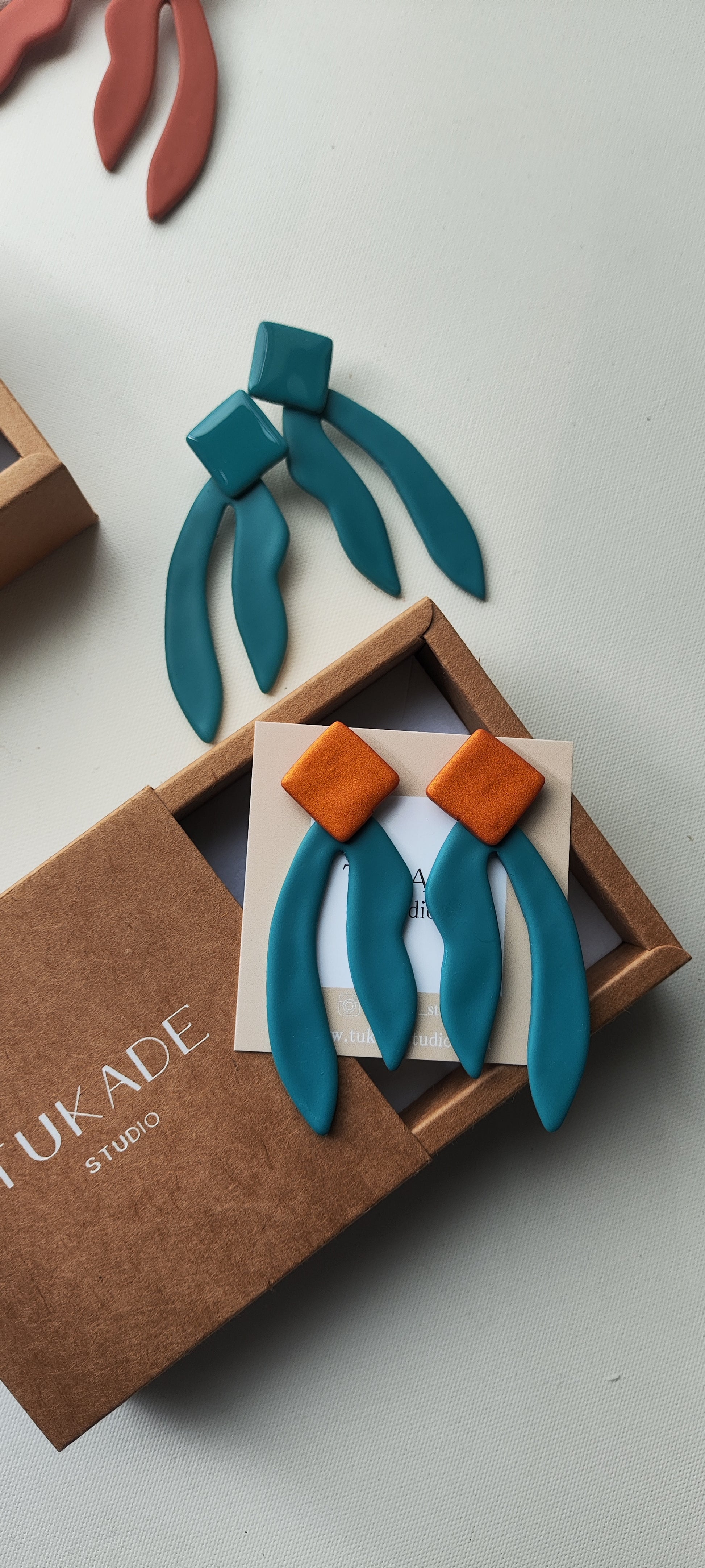 Cada par de pendientes está realizado a mano con mucho cuidado y cariño, con todo su proceso desde el modelado, corte, varios horneados, lijado y pulido.